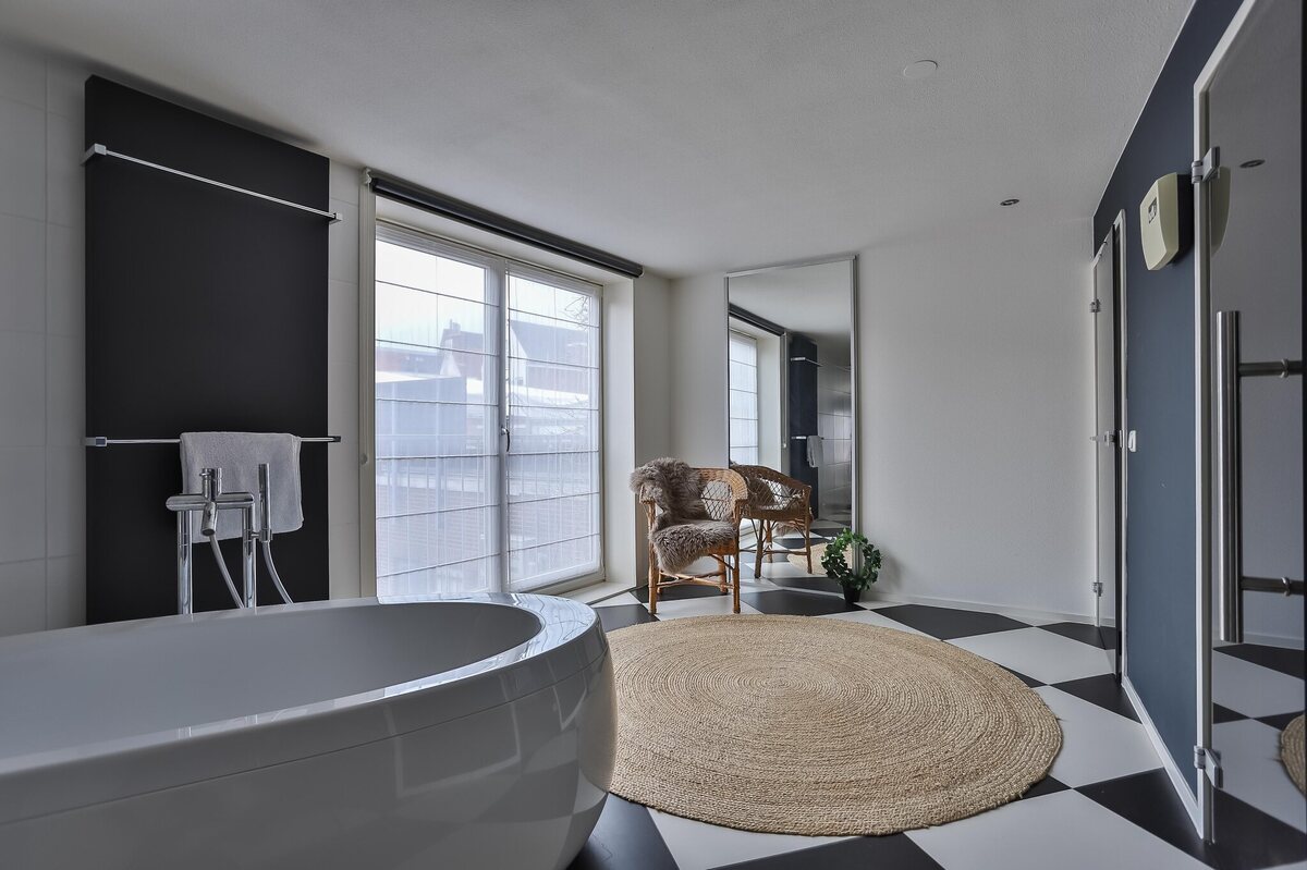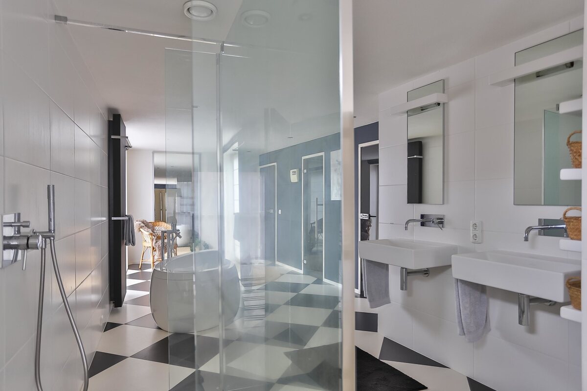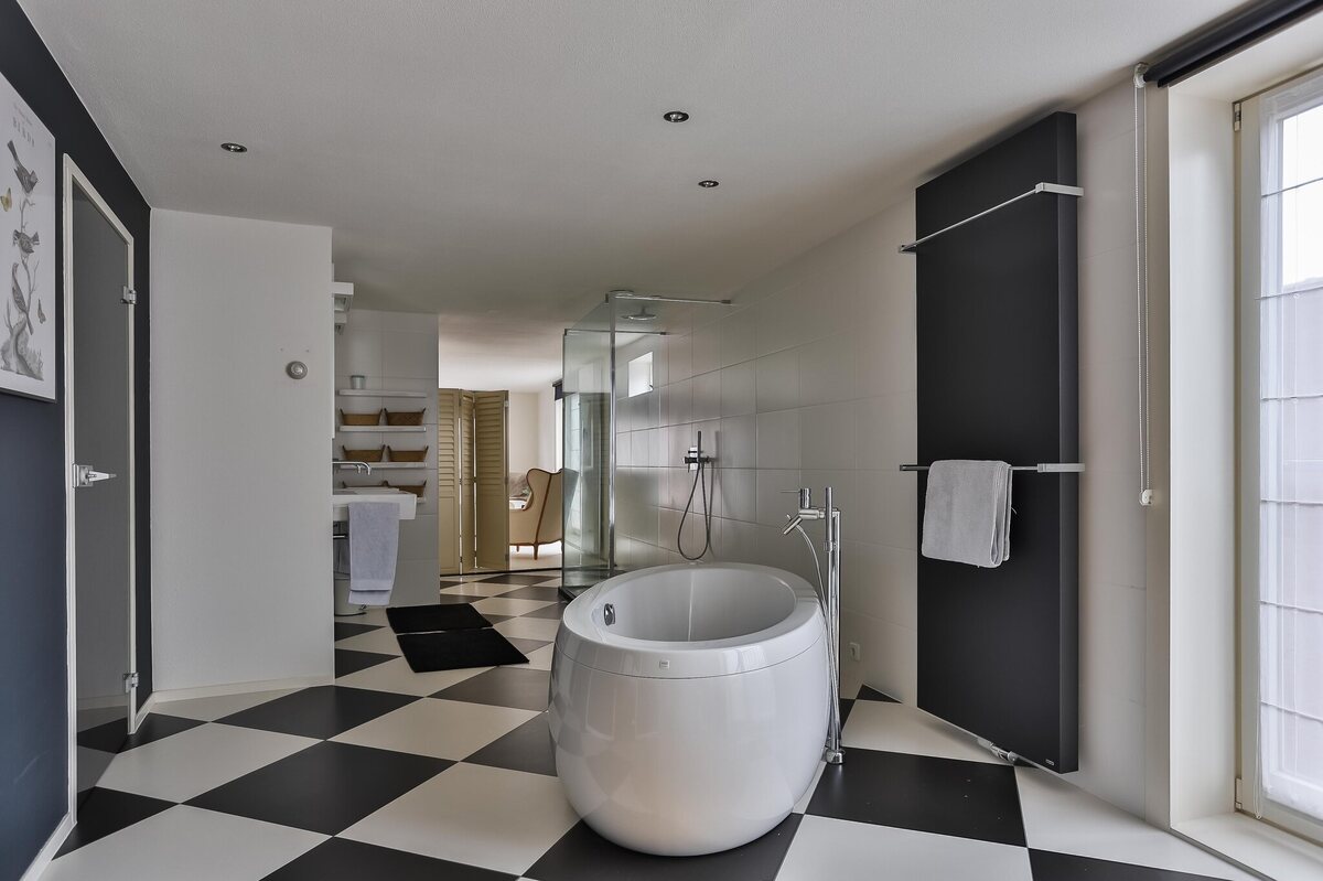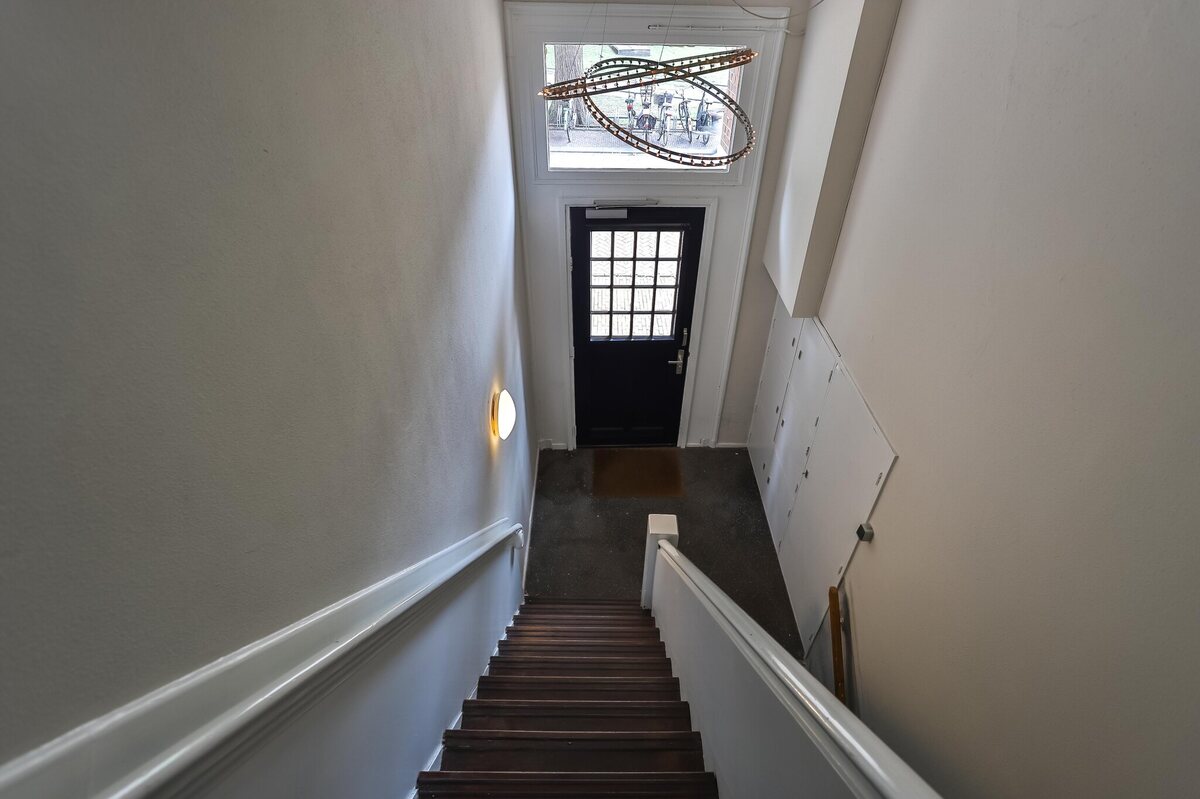 Begane grond: entree met intercomsysteem, trappenhuis naar de bergingen en woonetages.Eerste verdieping: entree met hal, toilet en trapopgang. De prachtige living met zicht op de A-kerk door de grote raampartijen is ruim 50 m2 groot en v.v. een fraaie houten planken vloer. De moderne open keuken is van alle gemakken voorzien (2-pits gaskookplaat; wokbrander; bakplaat; afzuigkap; combimagnetron; stoomoven; koelkast; vriezer en vaatwasser) met een mooie opstelling door het kookeiland.Tweede verdieping: overloop met toegang tot de twee slaapkamers van ca. 12 m2 en 24 m2 (v.v. Frans balkon) en de tweede badkamer (v.v. wastafel en inloopdouche). De meest ruime slaapkamer heeft een open verbinding naar de majestueuze badkamer wat werkelijk een uniek beeld geeft met alle luxe en comfort inbegrepen. De badkamer/wellnessruimte is circa 42 m2 groot en voorzien van een inloop regendouche, dubbele wastafel, vrijstaand ligbad, sauna, toilet, inloopkast en doorgang naar de tweede badkamer.