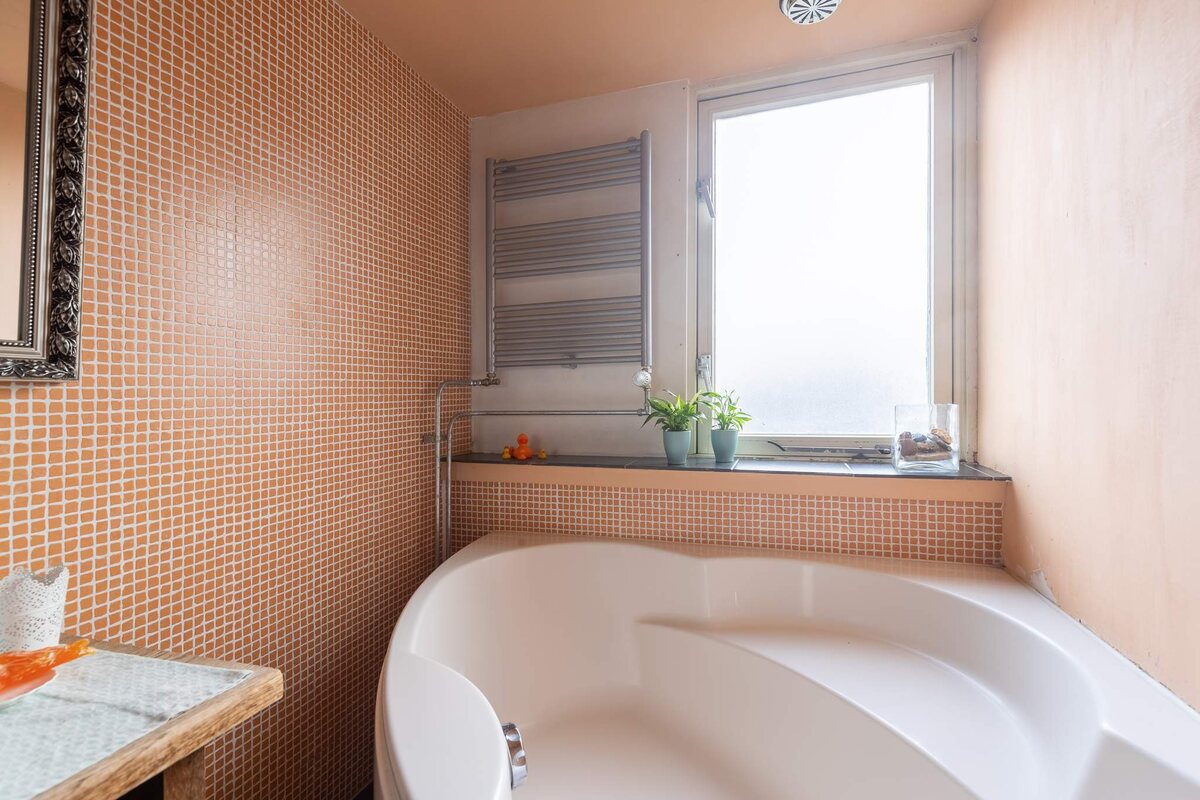 Begane grond: hal met toilet, trapkast en trapopgang. Sfeervolle woonkamer (ca. 30 m2) met open keuken v.v. inbouwapparatuur en aansluitend de bijkeuken met aansluiting voor de wasmachine. Eerste verdieping: overloop en tweede toilet, multifunctionele ruimte/woonkamertje (12 m2, eventueel te vergroten) en 2 slaapkamers waarvan de kleine tevens de cv-opstelling heeft en een balkon.Tweede verdieping: overloop, 1 slaapkamer (14 m2, zeer eenvoudig te splitsen) en een leuke badkamer (6 m2) met groot hoekbad, douche en wastafel.Tevens zolderruimte.