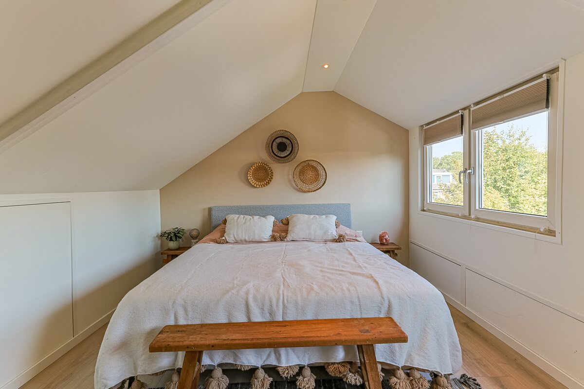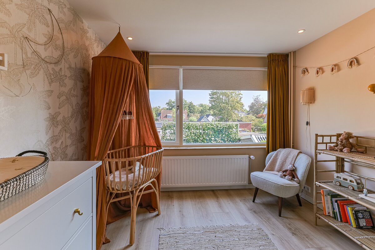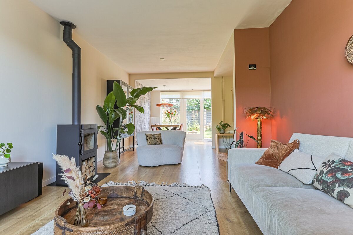 Begane grond: leuke hal/entree met erker, modern toilet en trapkast. Heerlijk lichte en sfeervolle living met houtkachel (47 m2) met open tuingerichte strakke keuken (2 blokken v.v. inbouwapparatuur en lichtkoepel). De openslaande deuren geven toegang tot de fraai aangelegde achtertuin. Verder een bijkeuken (ca. 6 m2) met wasmachineopstelling, wasbak en tuindeur. Eerste verdieping: overloop, 2 slaapkamers van 12, 10 m2. Derde kamer (6 m2) in dienst als kleedkamer met vaste trap naar boven. Moderne (2020) en zeer fraaie badkamer (7 m2, vloerverwarmd) met wastafelmeubel, 2e toilet, ligbad en ruime inloopdouche. Tweede verdieping: Prachtige vierde slaapkamer (bruto 17 m2) met vaste kastruimte. Deze verdieping beschikt over kunststof kozijnen.