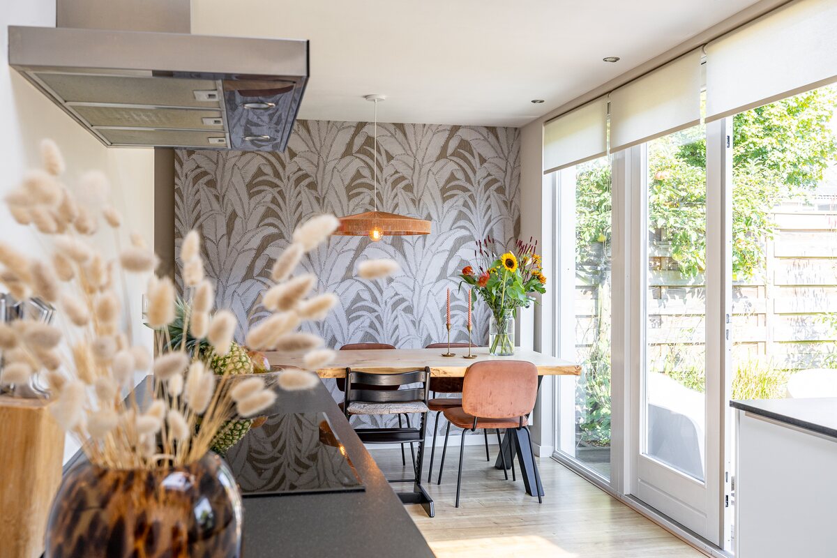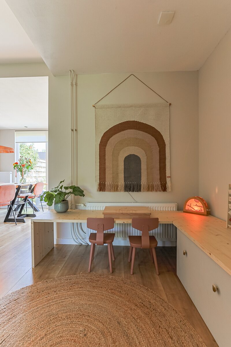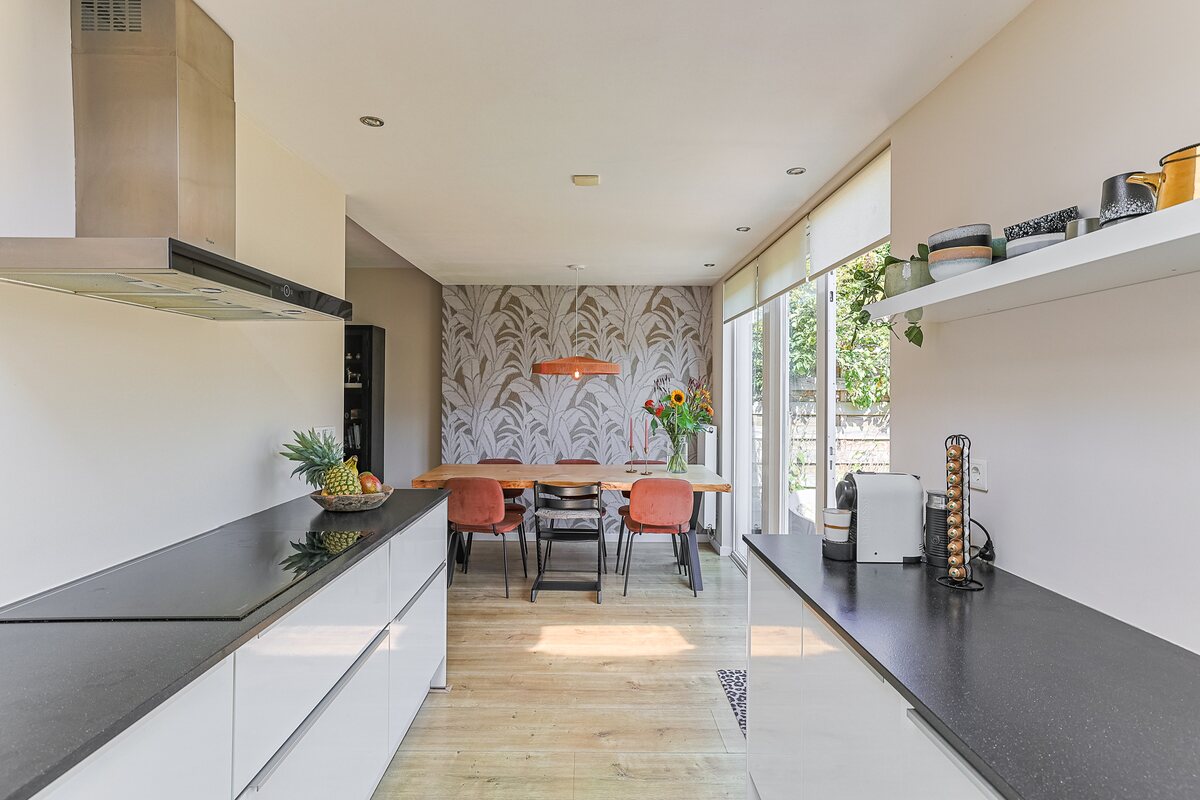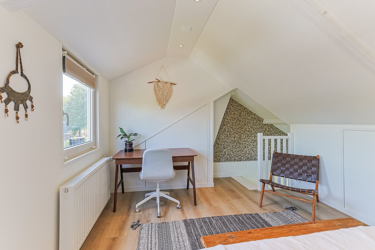 Begane grond: leuke hal/entree met erker, modern toilet en trapkast. Heerlijk lichte en sfeervolle living met houtkachel (47 m2) met open tuingerichte strakke keuken (2 blokken v.v. inbouwapparatuur en lichtkoepel). De openslaande deuren geven toegang tot de fraai aangelegde achtertuin. Verder een bijkeuken (ca. 6 m2) met wasmachineopstelling, wasbak en tuindeur. Eerste verdieping: overloop, 2 slaapkamers van 12, 10 m2. Derde kamer (6 m2) in dienst als kleedkamer met vaste trap naar boven. Moderne (2020) en zeer fraaie badkamer (7 m2, vloerverwarmd) met wastafelmeubel, 2e toilet, ligbad en ruime inloopdouche. Tweede verdieping: Prachtige vierde slaapkamer (bruto 17 m2) met vaste kastruimte. Deze verdieping beschikt over kunststof kozijnen.