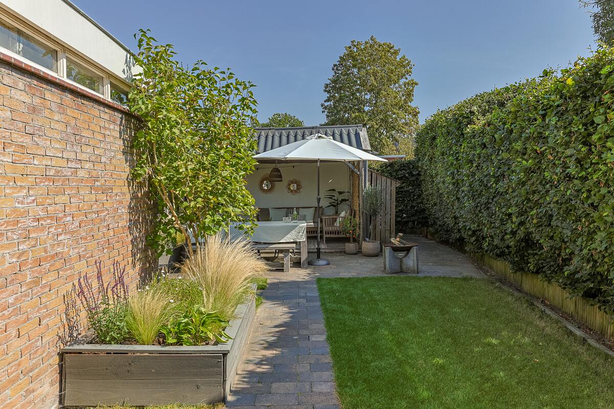 De tuin is in 2019 aangelegd en aan de voorzijde voorzien van een grote oprit, geschikt voor het parkeren van meerdere auto's. De achtertuin is op het oosten georiënteerd en toch lekker zonnig. De tuin is ook voorzien van vaste tuinverlichting (grondspots).Onder de overkapping en op het zonneterras is het in de schaduw en in de zon altijd lekker. Vanuit de tuin is de garage (12 m2) middels een loopdeur bereikbaar. De garage grenst aan de achterzijde met de tuin en de voorzijde aan een garageplein, bereikbaar vanaf de openbare weg (Pinksterbloemweg).