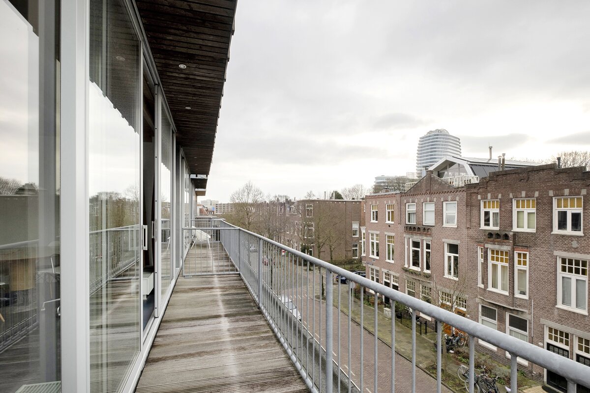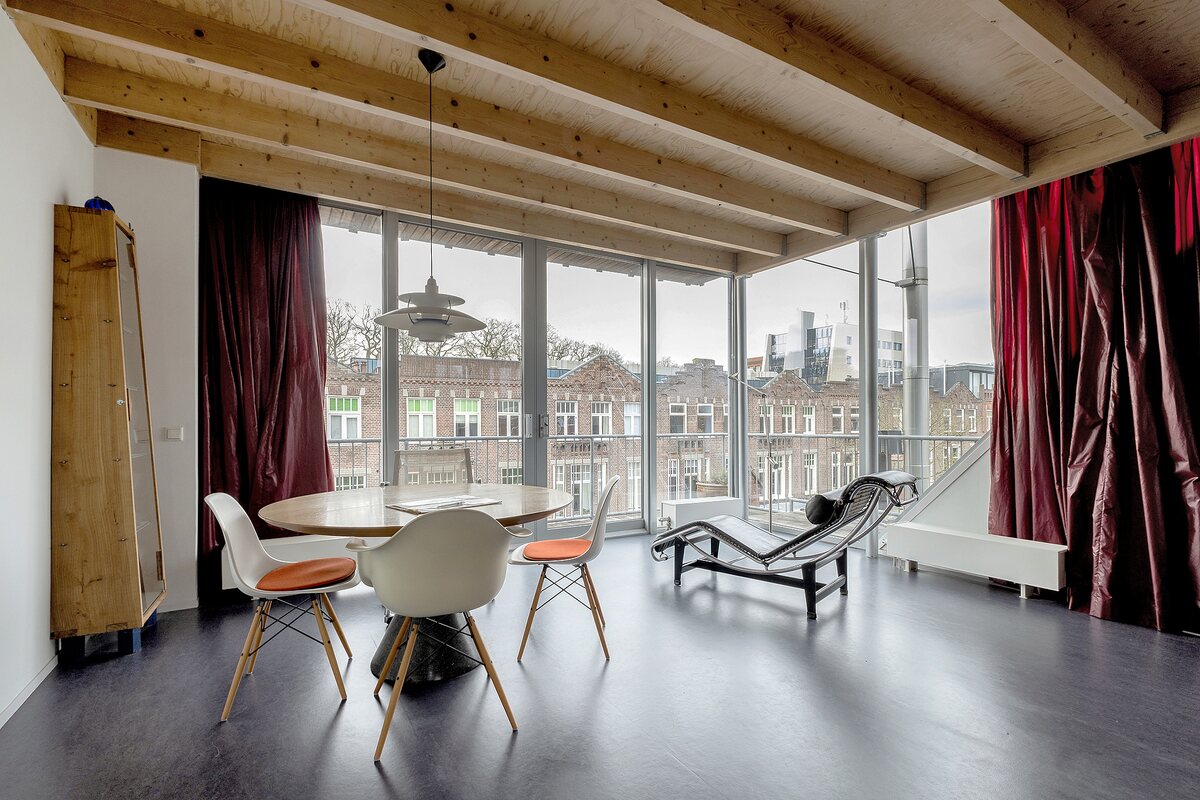 INDELING Begane grond: grandioze entree, fraaie tochtportaal met originele deuren, hal met prachtige granito vloer, modern toilet en garderobe, lichte en heerlijk riante woonkamer (hoogkant eiken vloer, houtkachel en openslaande deuren naar de tuin). Nette dichte keuken (7 m2) met tijdloze uitstraling (inbouwapparatuur grotendeels vernieuwd in 2021), bijkeuken (5 m2) en berging met aansluiting voor wasmachine en praktische bergruimte.Eerste verdieping: ruime overloop en modern tweede toilet, maar liefst 4 slaapkamers (14, 13, 7 en 6 m2). Voorts de badkamer (6m2) met een chique uitstraling.Tweede verdieping: prachtige opbouw (2005) met veel glas en een heerlijke ruimte van maar liefst 40 m2! Tevens met derde toilet en wastafel.