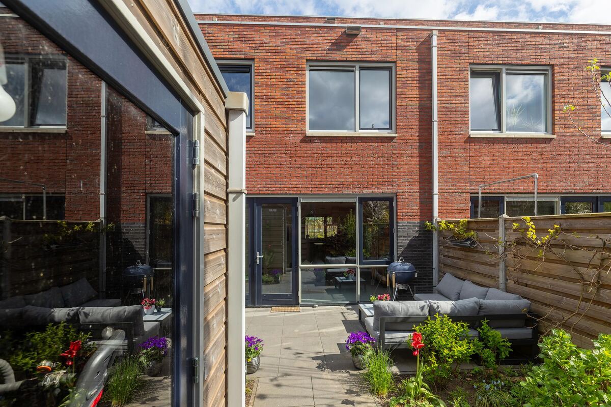 Moderne, energiezuinige en comfortabele eengezinstussenwoning (bouwjaar 2016) met eigen parkeerplaats, vrijstaande houten berging en een leuke zonnige stadstuin met achterom. Drie slaapkamers op de verdieping, prachtige lichte en royale studio op de tweede verdieping. Moderne keuken en badkamer. Nabij alle basisvoorzieningen van de stad, dus heerlijk wonen op 5 minuten fietsen van het centrum en UMCG, in de autoluwe, moderne en kindvriendelijke wijk Berlagehof. CV verwarmd, volledig geïsoleerd en 8 zonnepanelen. Mogelijkheid voor een dakterras op de tweede verdieping.Indeling: