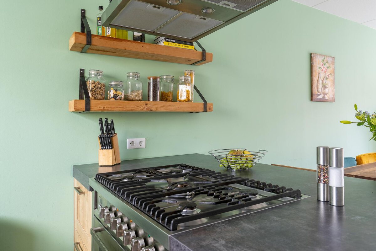 Entree, hal (ca. 7 m2), met toilet, trap, meterkast en doorloop naar de woonkamer.De woonkamer met open keuken (totaal ca. 41 m2) is op de tuinzijde georiënteerd en voorzien van mooie gietvloer, openslaande deuren naar de tuin en een handige (uitschuifbare) trapkast. De gehele begane grond is voorzien van vloerverwarming.De open keuken is compleet met kookeiland voorzien van Boretti gasfornuis + oven en een vaatwasser. Verder een wandmeubel met: koel-vriescombinatie en veel bergruimte in de onderkastjes.