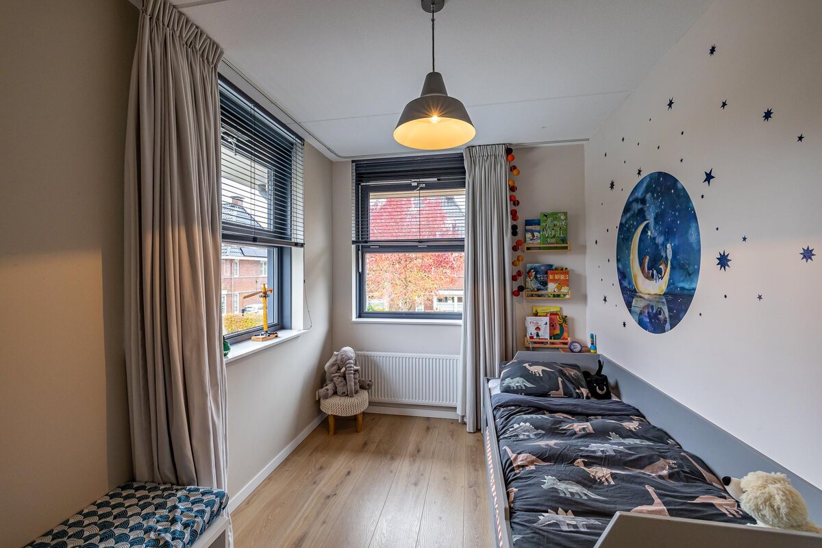 Begane grond: hal/entree, meterkast, hangtoilet, bijzonder fijn ingedeelde woonkamer (57 m2) met half open, strakke keuken, trapkast en goede daglichttoetreding. Het zitgedeelte is op een fraaie en speelse manier van de keuken. De open woonkeuken met luxe keukenblok (2021) beschikt over de benodigde inbouwapparatuur. Aan de voorzijde een open speelkamer, kantoorruimte of simpelweg een verlenging van je woonkamer. En...met een handige bijkeuken van 5 m2.!Eerste verdieping: overloop, 3 slaapkamers (6, 10 en 11 m2), waarvan één met grote inbouwkast. Moderne badkamer voorzien van inloopdouche, wastafelmeubel, tweede toilet en ligbad.Tweede verdieping: overloop, vierde slaapkamer (17 m2) voorzien van bergruimte achter de knieschotten, dakkapel en dakraam. Wasruimte (8 m2) met dakraam cv-ketel opstelling. Derde verdieping: vliering bereikbaar middels vlizotrap.