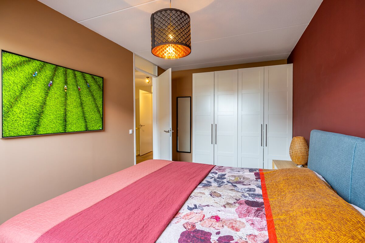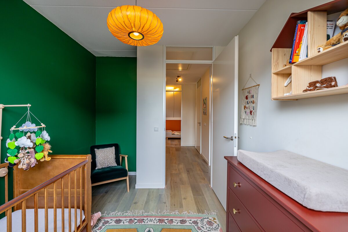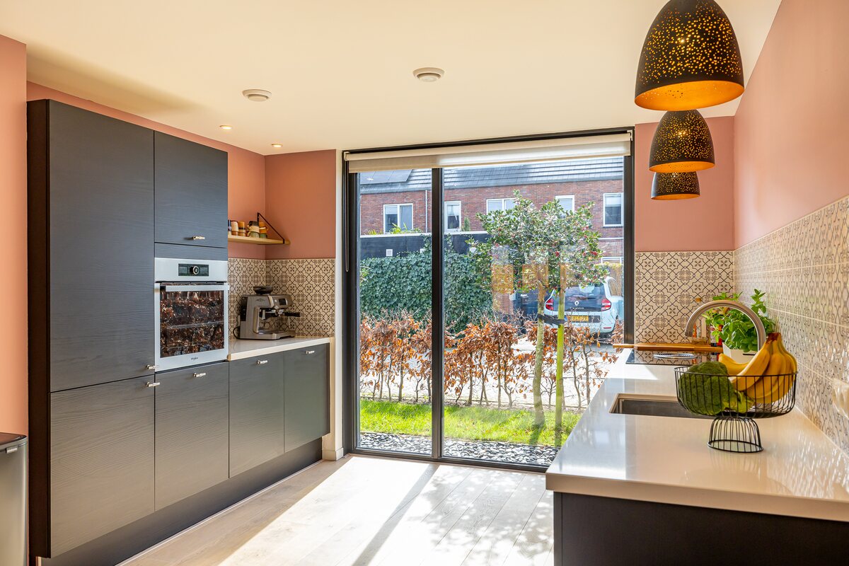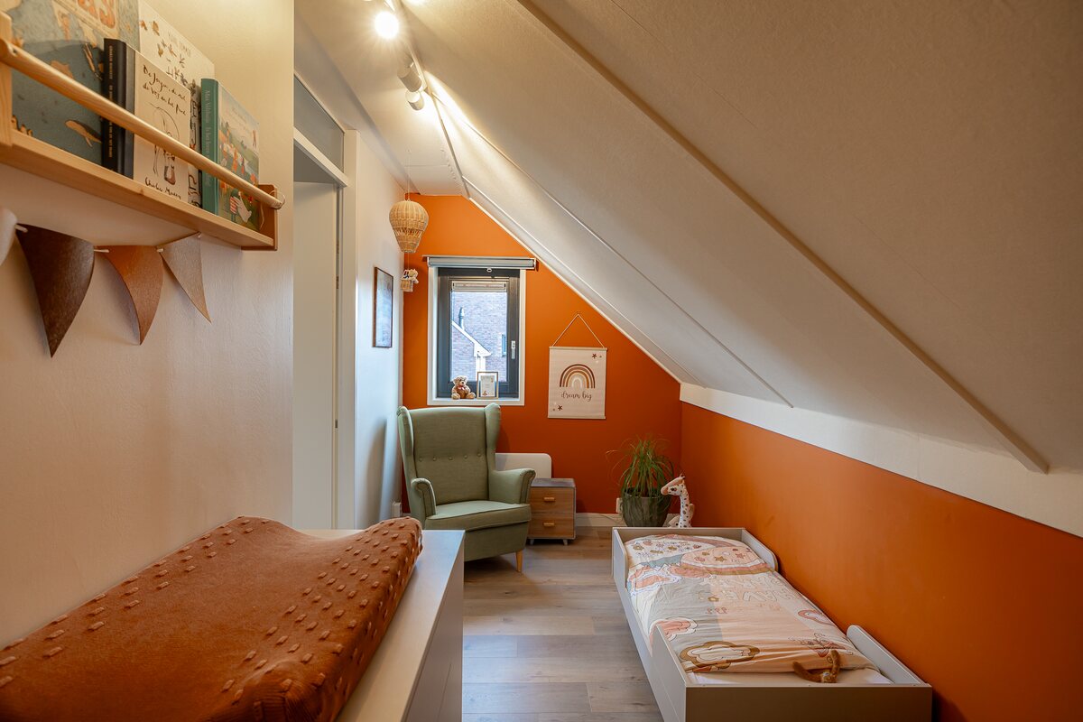 Begane grond: entree, hal (ca. 6 m2) met meterkast. Flinke living (ca. 52 m2) met aan de voorzijde de open luxekeuken voorzien van moderne inbouwapparatuur en aan de tuinzijde het zitgedeelte met openslaande deuren naar detuin. Via een tussenhal toegang tot de eerste slaapkamer (12 m2), separaat toilet en de eerste badkamer (6 m2) metdubbel wastafelmeubel en royale douche. Tevens afzonderlijke ruimte voor de wasmachine en droger.Eerste verdieping: overloop, drie slaapkamers (ca. 15, 10 en 9 m2) en een tweede moderne badkamer (ca. 5 m2) metdouche, dubbele wastafelmeubel en tweede toilet.Tweede verdieping: via vlizotrap bereikbaar, ruime zolder (bruto oppervlakte ca. 28 m2).