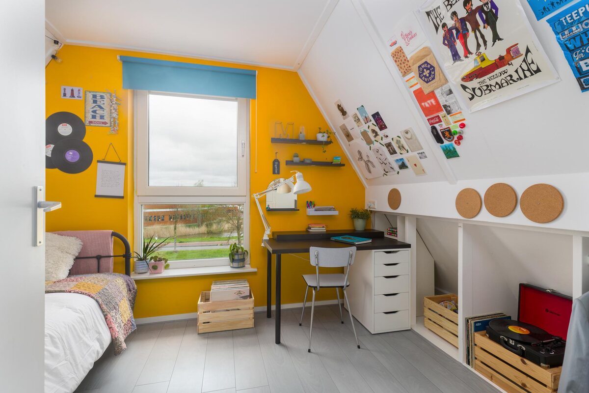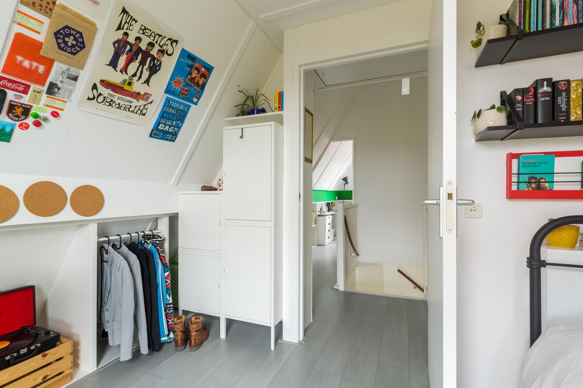 Twee zolderkamers (met een nokhoogte van circa 4 meter en bergruimte achter de knieschotten) van beide ca. 9 m2, waarvan een met wasmachine aansluiting.