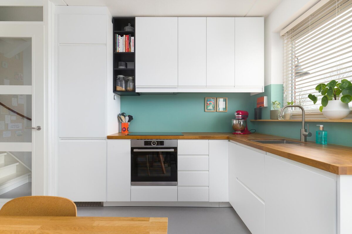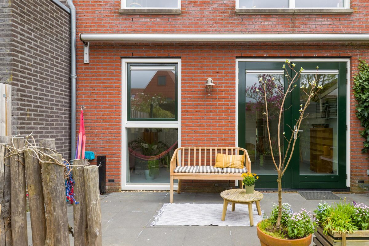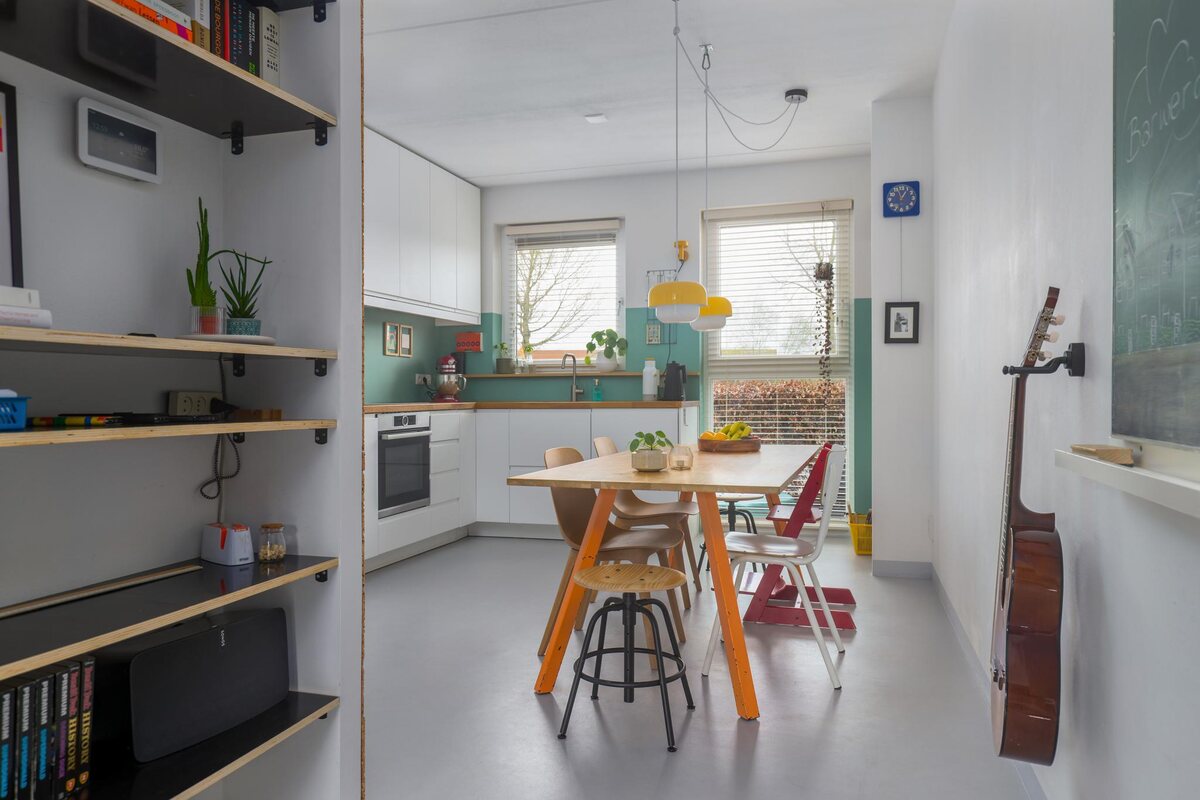 Entree/hal: met modern toilet, trapopgang en doorloop naar de woonkeuken en woonkamer.Half open woonkeuken (ca. 15 m2 uit 2020) in hoekopstelling, voorzien van een inductiekookplaat met afzuigkap, grote ingebouwde koelkast, grote oven, vaatwasser en carrouselkast. Marmoleum vloer en handige trapkastGezellige tuingerichte woonkamer (ca. 22 m²) eveneens voorzien van marmoleum vloer en openslaande deuren naar de heerlijke zonnige tuin op het westen.
