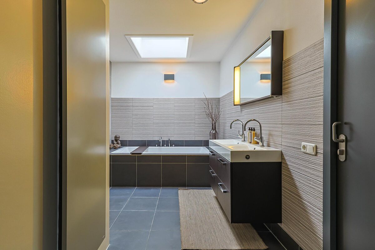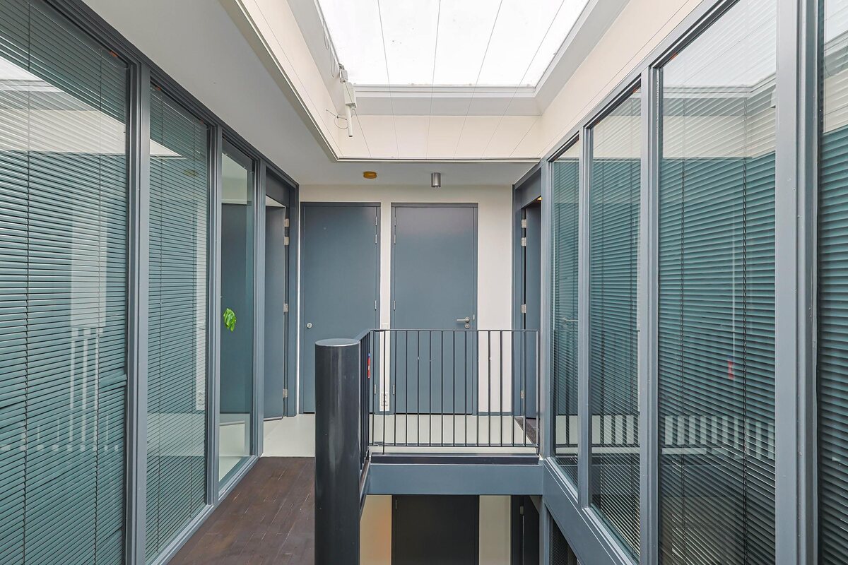 Het geheel is optimaal geïsoleerd, uitstekend onderhouden en biedt riante ruimtes met hoge plafonds en veel woongemak. Bij het ontwerp is rekening gehouden met natuurlijk lichtinval. Door de grote ramen, hoge plafonds en een fantastisch groot elektrisch te openen dakraam van 2x2 meter heeft men gegarandeerd prachtig lichtinval.