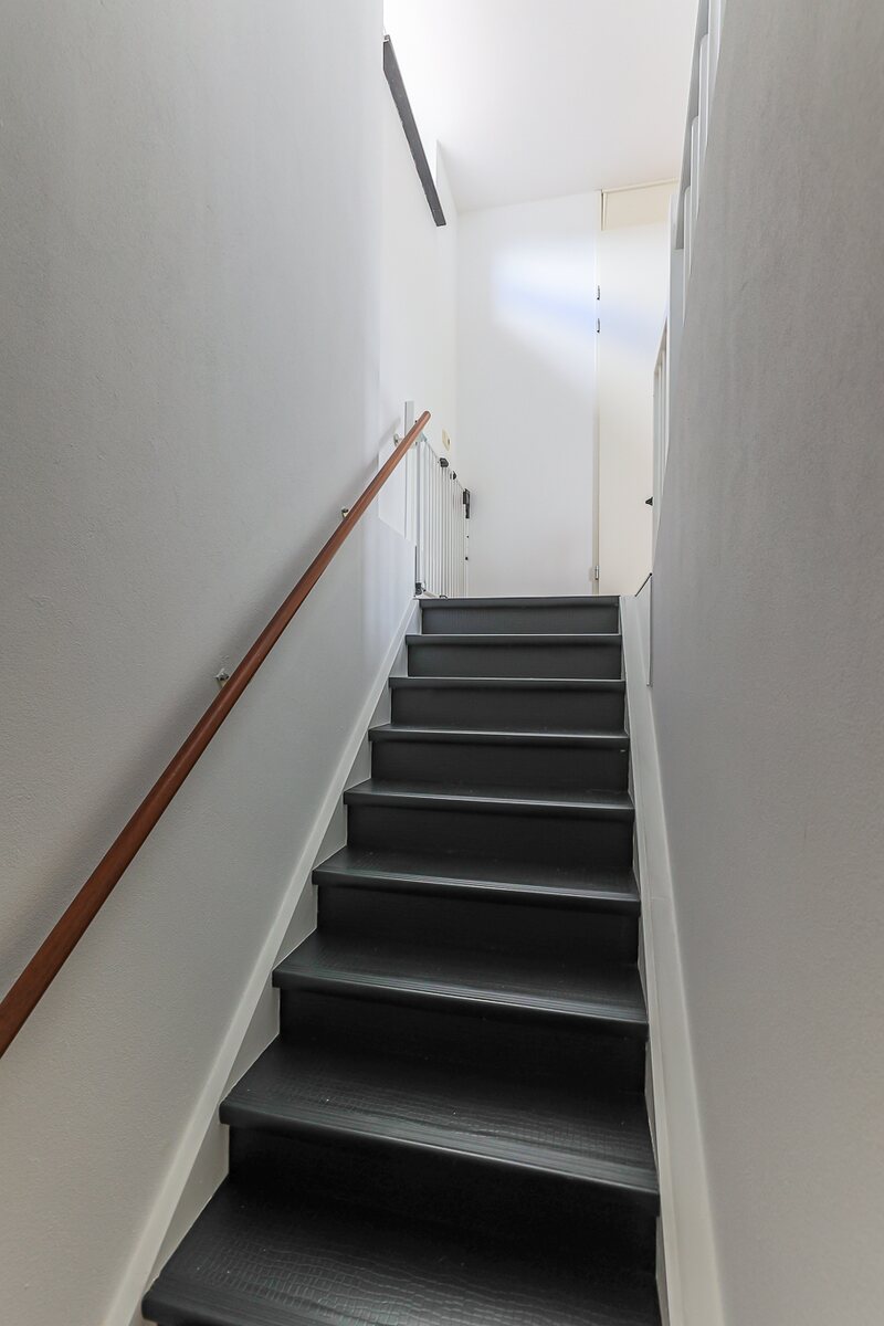 overloop, moderne complete badkamer met ligbad - separate douche - duo wastafel met wastafelmeubel - design radiator, apart 2e toilet, ruime slaapkamer ca. 14m2, slaap-/werkkamer ca. 12m2 met vaste kast.