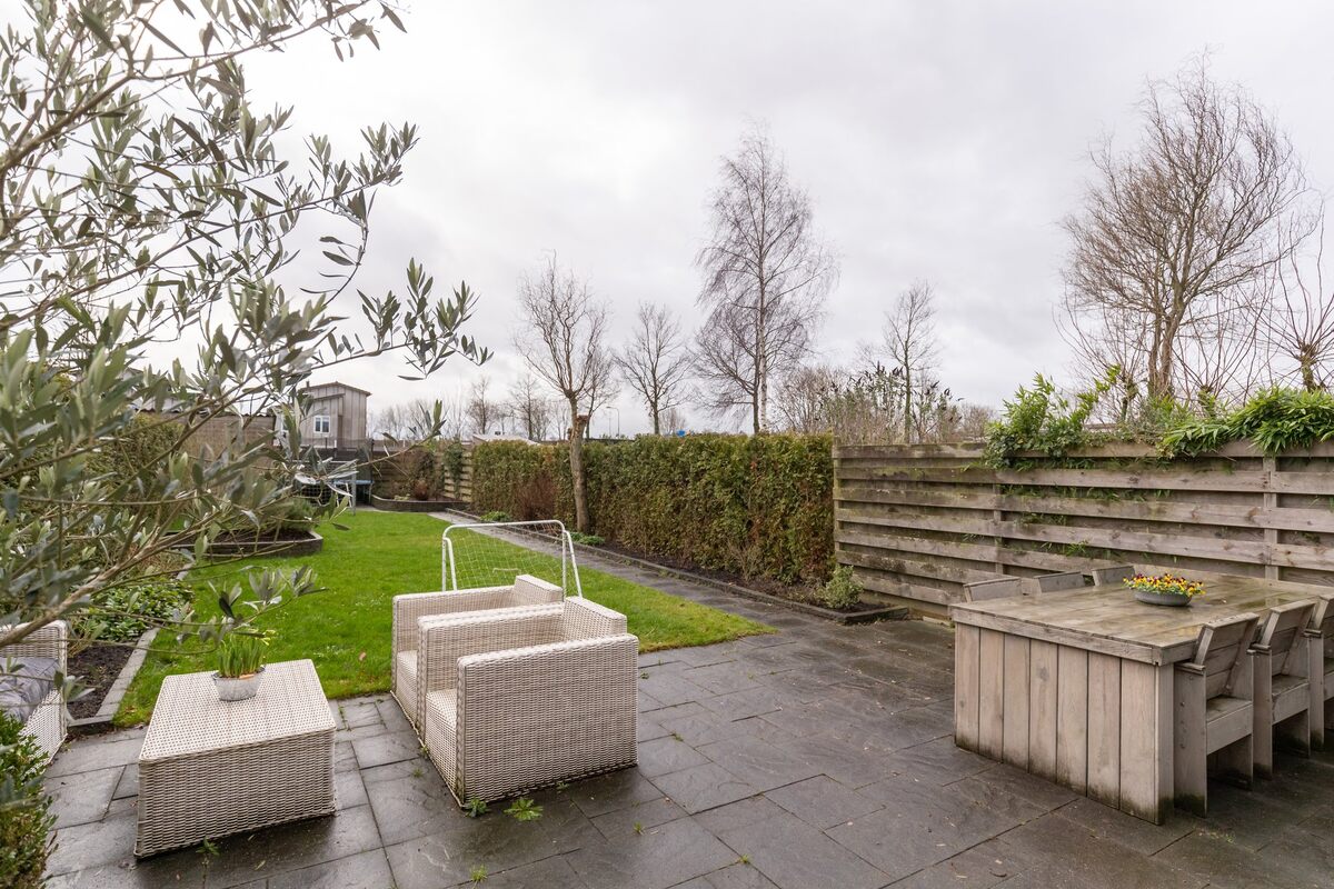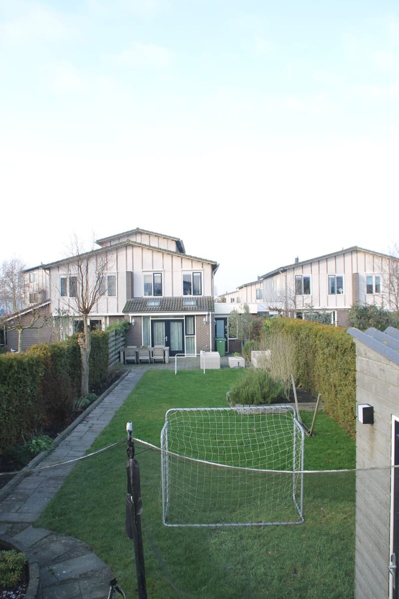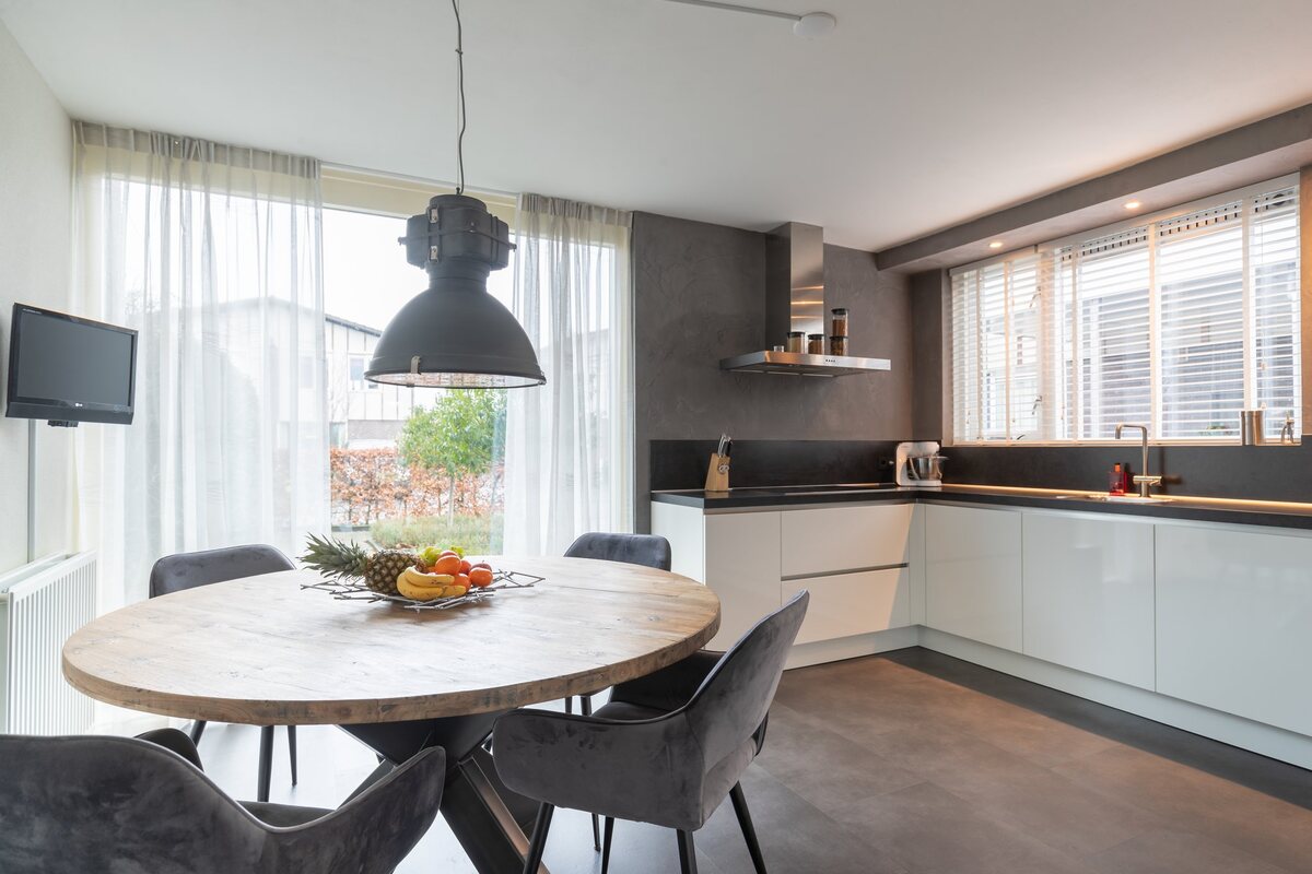 Indeling: Royale hal (ca. 13 m2) met toilet, meterkast en toegang tot de woonkamer en bijkeuken.Uitgebouwde woonkamer (41 m2) met achterkamer v.v. twee dakramen en openslaande deuren naar de tuin, verder een mooie gietvloer (PVC), open trap naar de verdieping en doorloop naar de keuken aan de voorzijde.Luxe woonkeuken (ca. 17 m2, 2016) in hoekopstelling voorzien van alle gemakken: vaatwasser, koelvriescombi, magnetron, oven, inductiekookplaat en afzuigkap. De wanden zijn fraai afgewerkt met betonstuc.Achter de extra grote hal ligt de praktische bijkeuken (ca. 12 m2) met kastenwand, pantry en loopdeur naar de tuin.Verdieping: overloop met vaste kast v.v. wasmachine aansluiting.Drie slaapkamers van 17, 11 en 8 m2, de eerste twee met laminaatvloer.Nette en ruime badkamer (ca. 8 m2) met groot bubbelbad, tweede toilet, douche en wastafelmeubel.Tweede verdieping: overloop met kastenwand.Slaapkamer 4: ca. 9 m2.