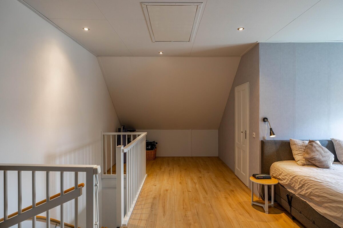 Begane grond: entree/hal met meterkast, trapopgang en modern toilet (2021). De lichte en verlengde U-vormige woonkamer (63 m2!) is v.v. dubbele openslaande tuindeuren. De open keuken (2011) is v.v. een U-vormig keukenblok v.v. inbouwapparatuur. De garage is toegankelijk via de keuken en is omgetoverd tot een grote bijkeuken van 16 m2. Eerste verdieping: overloop, drie slaapkamers resp. 16, 14 en 9 m2. De badkamer uit 2019 heeft een chique uitstraling, heeft daglicht en is 6 m2 groot.Tweede verdieping: zeer royale zolderruimte met grote vierde slaapkamer (31 m2) en met handig washok (6 m2).Derde verdieping: vliering.