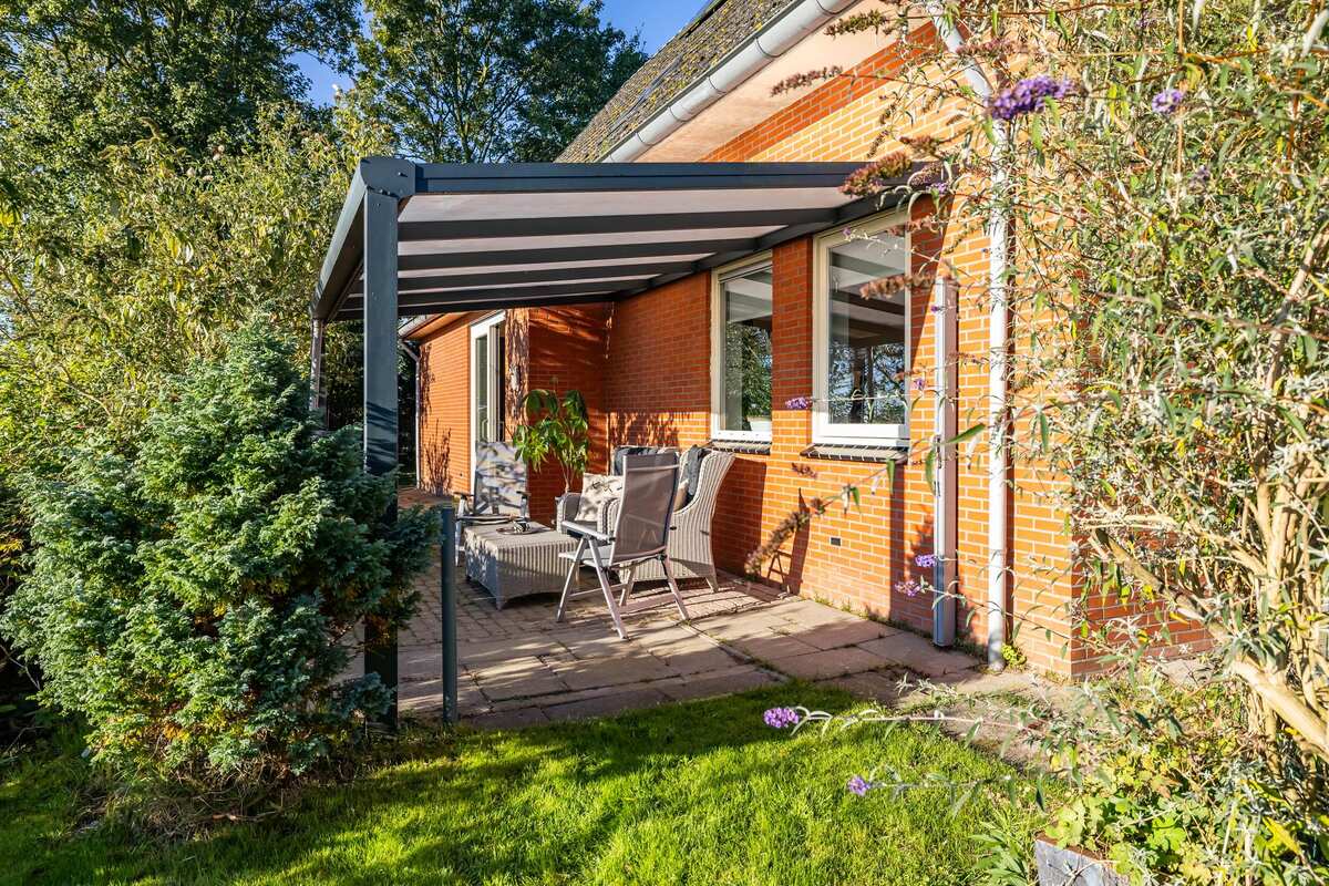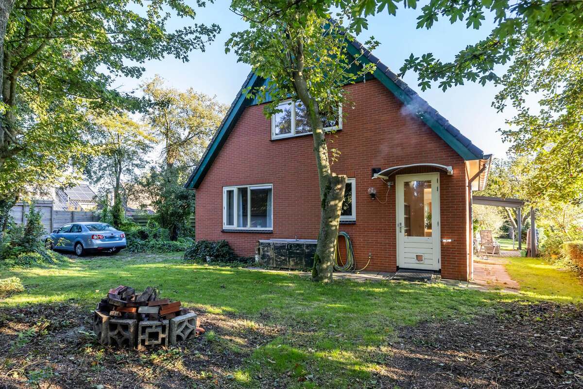 Rondom gelegen en fraaie tuin met gazon, borders, bomen en terrassen. De tuin wordt deels omzoomd door sloten en weiland en aan de achterzijde grenst het aan een speeltuin. De achtertuin is maar liefst ca. 20 meter breed. Er staat een ruime houten kapgarage (ca. 25 m2).De diepe voortuin is uitermate charmant: fruitbomen, een vijvertje en prachtig uitzicht.Door de vele bomen geeft de tuin een optimaal gevoel van privacy en daarnaast een heerlijk vrij vakantiegevoel!