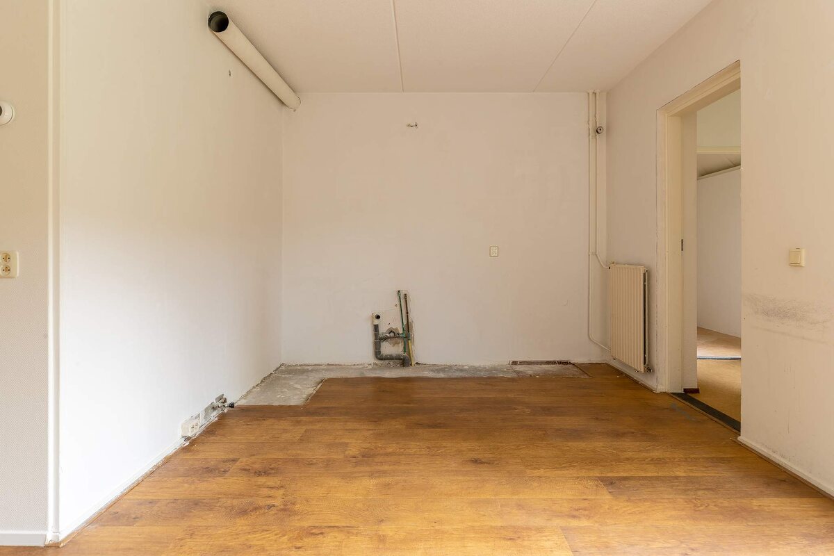 Hal/entree (ca. 4 m2) met eenvoudig toilet, trapopgang met trapkast en doorloop naar de woonkamer/keuken.L-vormige woonkamer (ca. 24 m2) aan de voorzijde met aansluitend de open keuken (ca. 16 m2) aan de achterzijde. Vanuit de achterkamer is de tuin bereikbaar.Woonkeuken met doorloop naar de bijkeuken (ca. 4,5 m2) met wasmachineaansluiting, deur naar de tuin en binnendoor naar de berging (ca. 6 m2) en werkkamer (ca. 10 m2).Verdieping: overloop.Vier slaapkamers, twee van ca. 9 m2 en twee van ca 8 m2. Het is relatief eenvoudig om van twee een kamer te maken.Nette badkamer van 4,5 m2 met vaste wastafel, douche en tweede toilet.Tweede verdieping: overloop met opstelplaats CV ketel (HR combi eigendom 2020/2021).Twee slaapkamers van ca. 10 m2 en 7 m2.