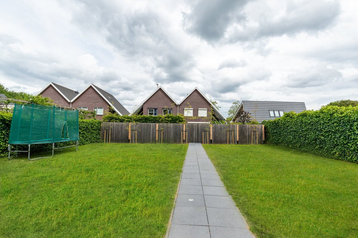 Voortuin met oprit en diepe achtertuin (ruim 20 meter) op het oosten. Door zijn diepte heerlijk zonnig. Verzorgd en groen en met fijn terras.