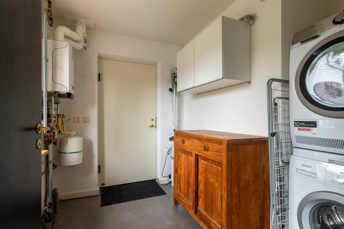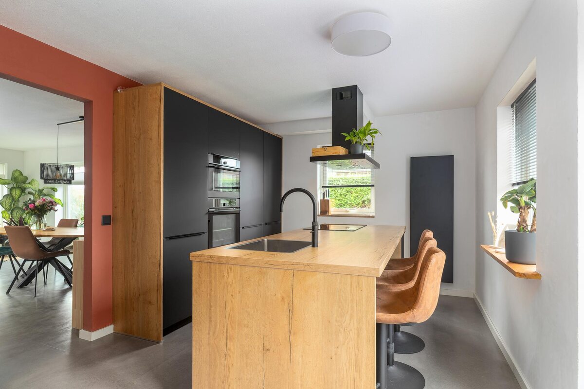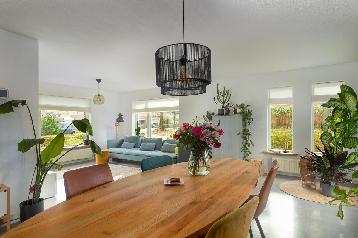 Begane grond: entree/hal met toilet en trapopgang naar de eerste verdieping. De heerlijke lichte woonkamer is ca. 37 m² groot en heeft openslaande deuren naar de tuin aan de zijkant van de woning. De half open keuken is ca. 14 m² groot en vernieuwd in 2020. De keuken beschikt over een kookeiland met een inductiekookplaat, een afzuigkap, een vaatwasser en een Quooker-kraan. De wandopstelling is nog voorzien van een koelvries-combinatie, een combioven en een stoomoven. Vanuit de keuken is er via openslaande deuren toegang tot de achtertuin. De bijkeuken biedt plaats voor een wasmachine en een droger. Tevens bevindt zich hier de cv ketel. Via de bijkeuken is er toegang tot de garage van 22 m² groot.