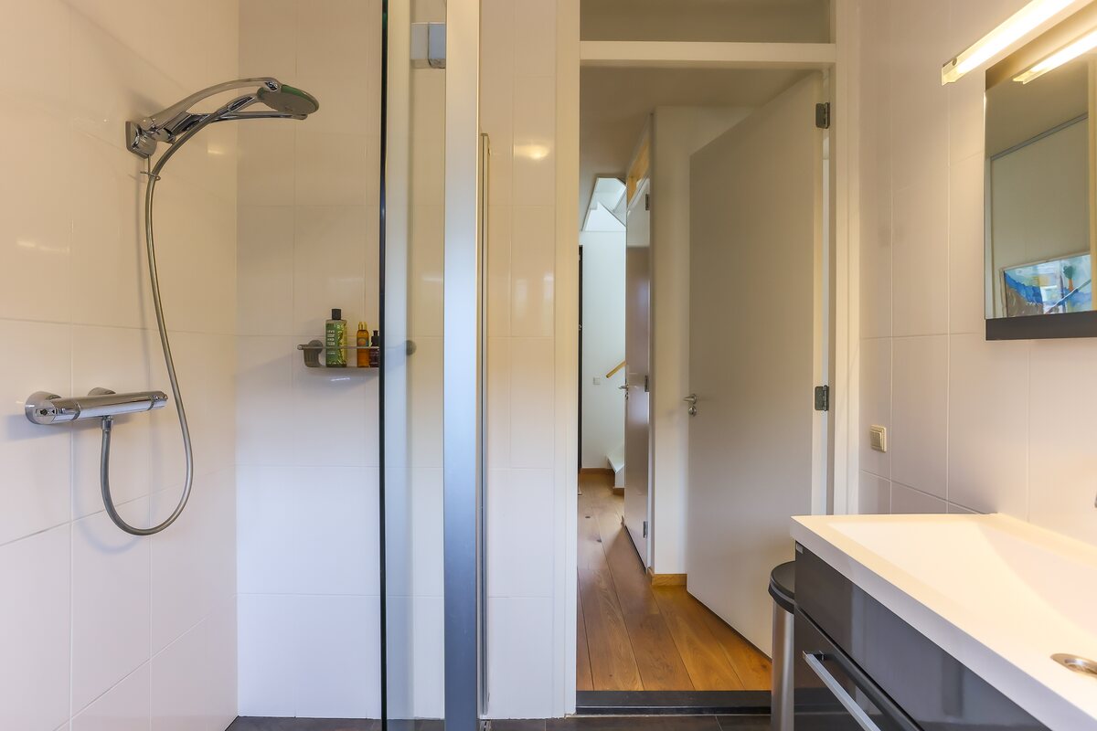 overloop, twee slaapkamers van 9 en 10 m2, tweede badkamer (4 m2) met douche, wastafel en tweede toilet.