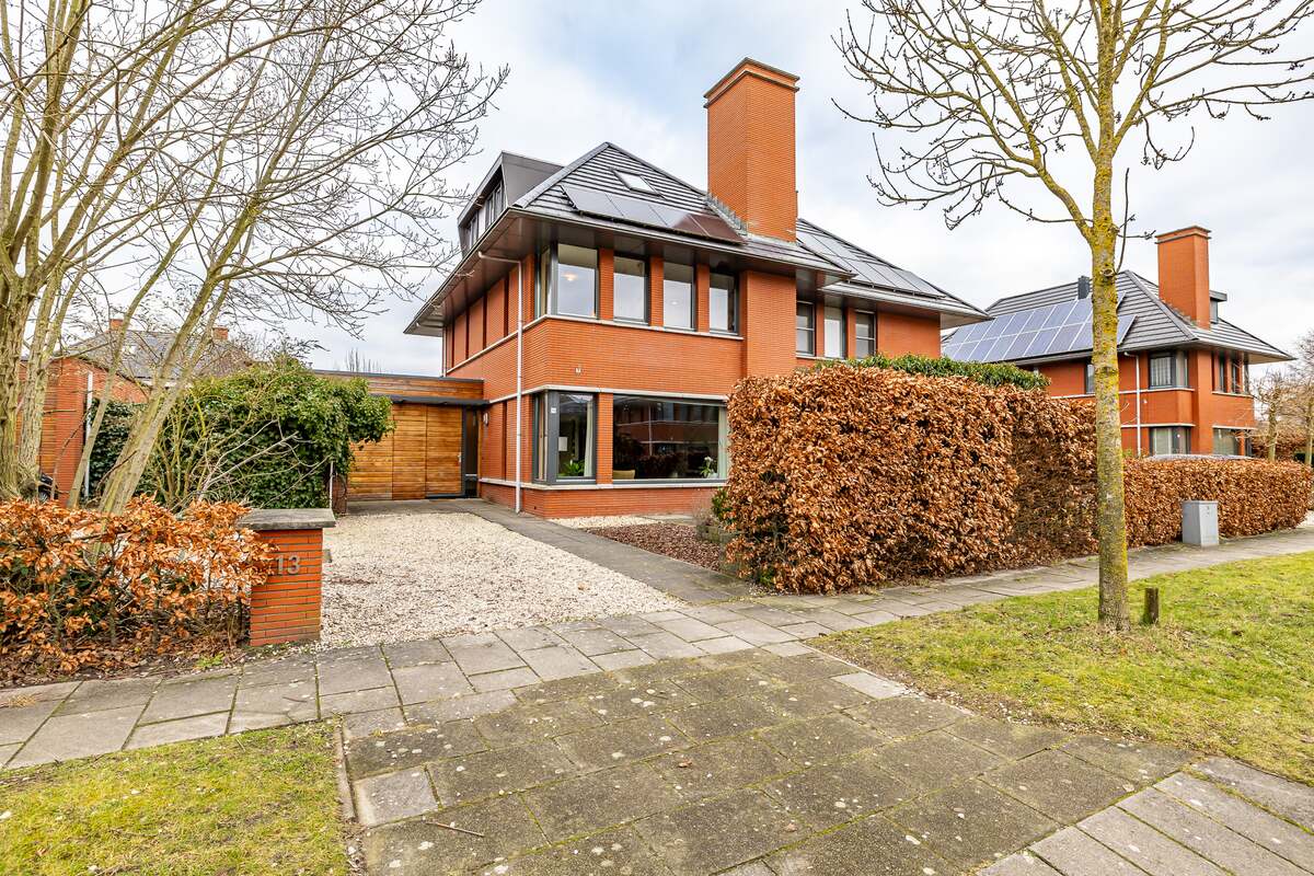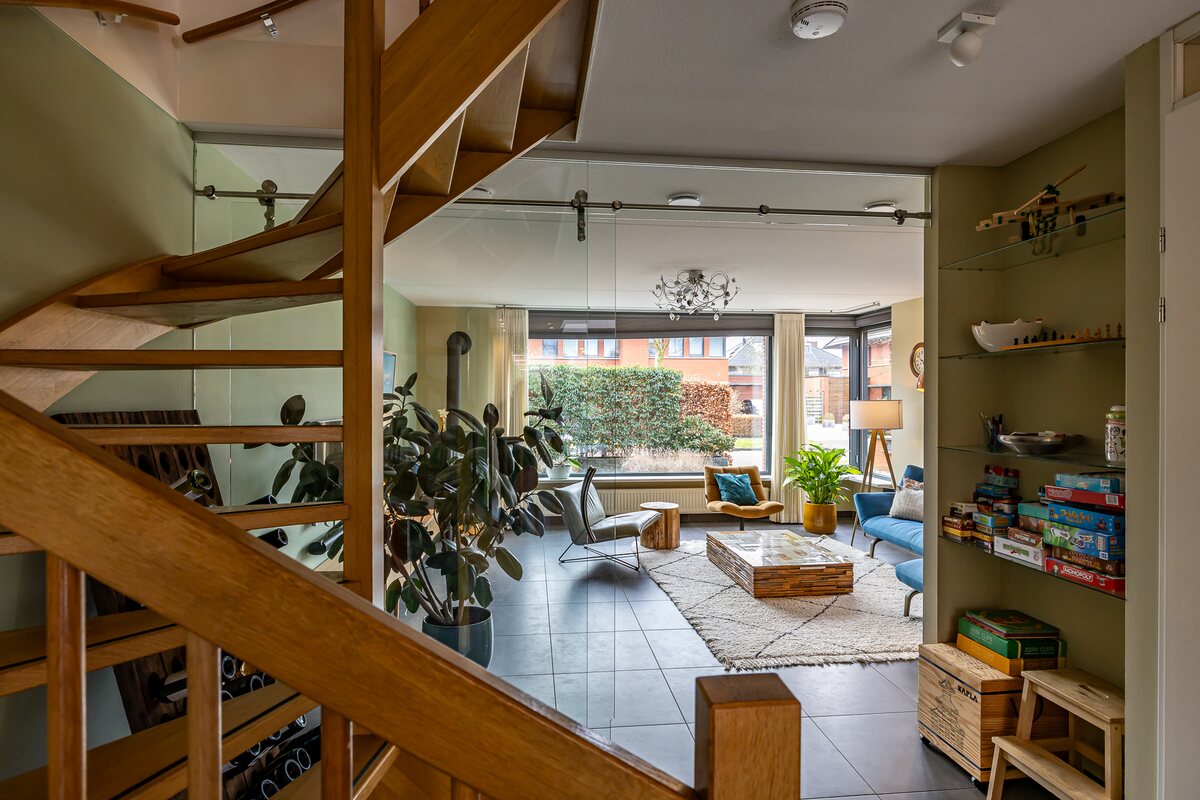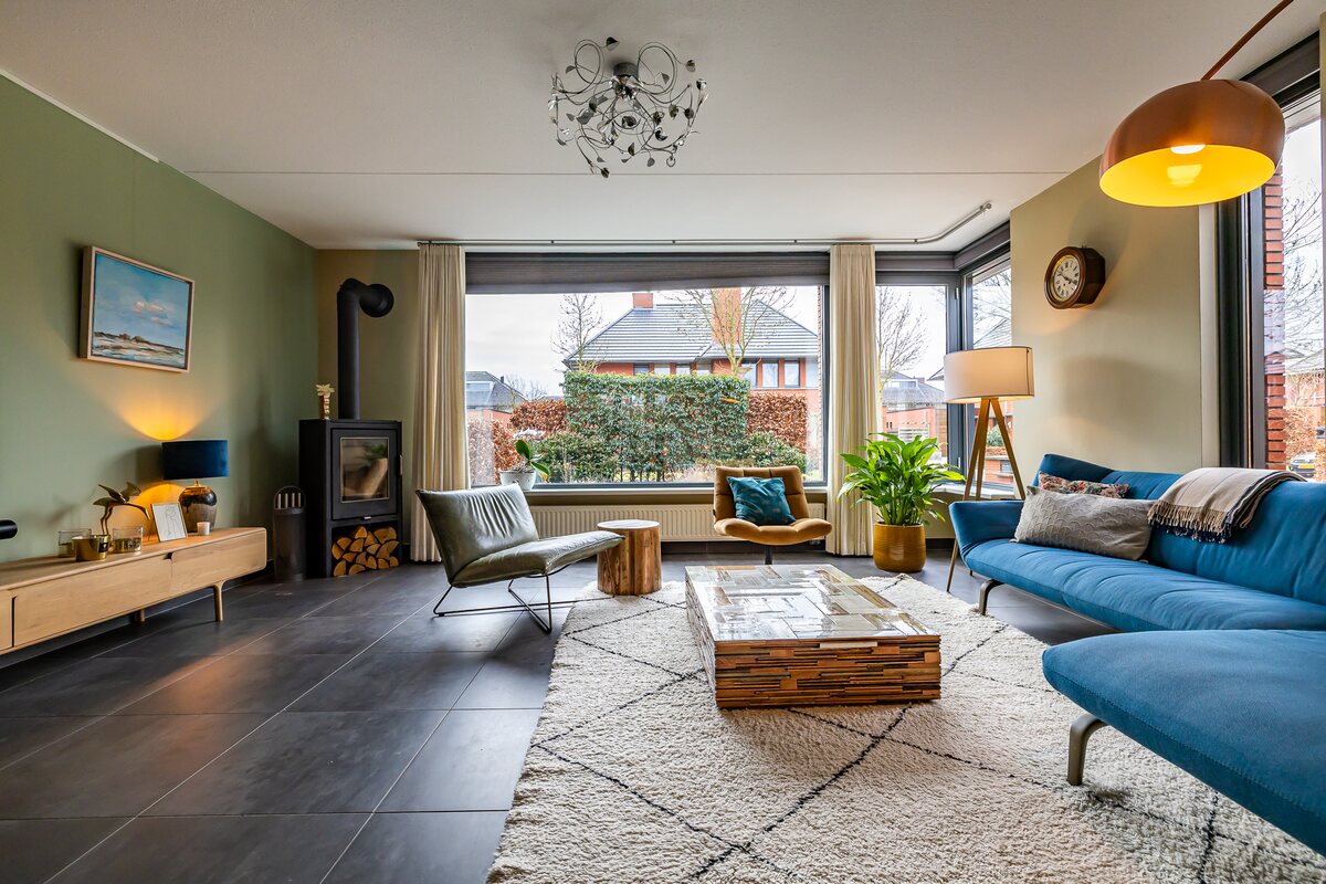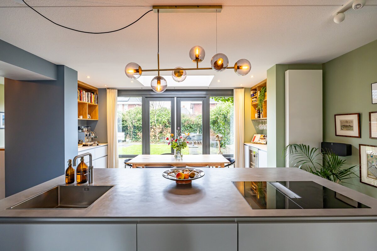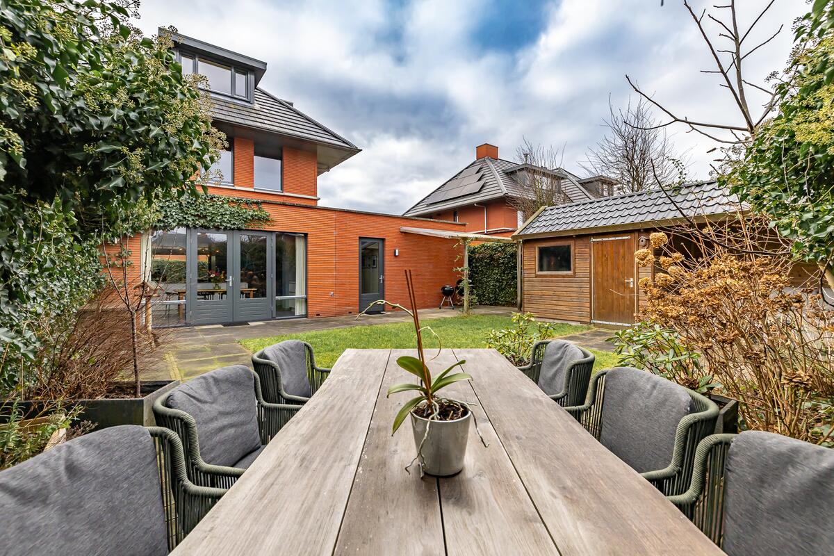 Hal/entree met verzorgd toilet, meterkast, toegang tot de woonkamer en doorloop naar de fraaie garderobe. Deze ruimte ligt heel praktische tussen de voorhal, de berging, de speelkamer en de keuken.Luxueuze, smaakvolle en uitgebouwde woonkeuken (ca. 35 m2, 2019) met groot kook- en spoeleiland en wandmeubel met luxe inbouwapparatuur (o.a. Bora inductiekookplaat met geïntegreerde afzuiging en Gaggenau bakoven en combi-stoomoven en een Quooker). In bijpassende stijl is de pantry ingericht met o.a. wijnklimaatkast. De keuken is deels voorzien van vloerverwarming en geniet veel lichtinval door de grote glaspui en openslaande deuren naar de tuin en de lichtstraat in het plafond. De keuken en de woonkamer zijn middels een chique glapui onder de trap gescheiden. Woonkamer (ca. 26 m2) ligt aan de voorzijde van de woning, heeft zicht op de voortuin en is net als hal, de garderobe en keuken voorzien van een mooie plavuizenvloer. In de hoek staat een gezellige houtkachel.De werk-speelkamer (ca. 12 m2) is volledig geisoleerd en bevindt zich in het achterste deel van de voormalig garage. In het voorste deel bevindt zich de (fietsen)berging.Verdieping: Overloop met separaat toilet.Drie ruime en praktische slaapkamers van ca. 16, 12 en 11 m2. Nette badkamer (ca. 5 m2) met ligbad, inloopdouche en wastafelmeubel.
