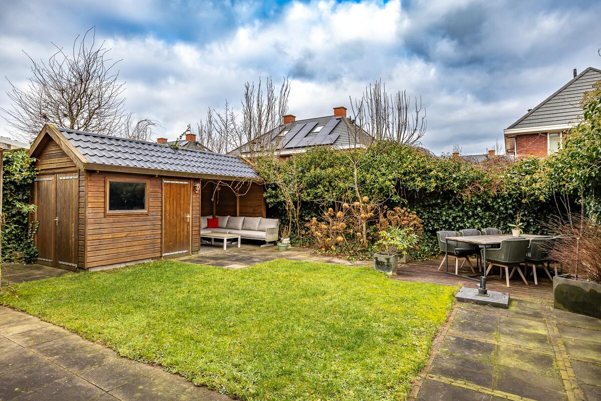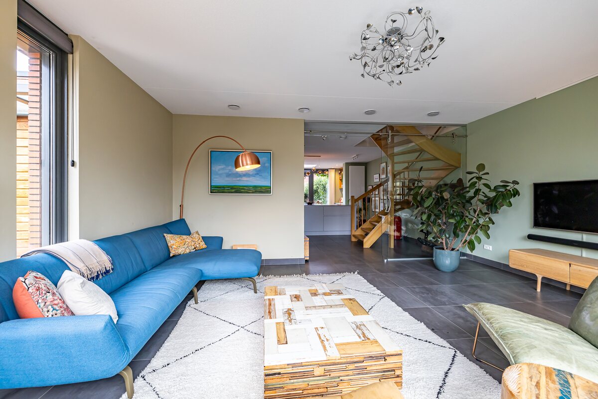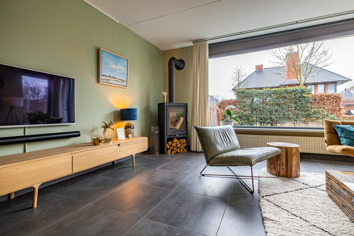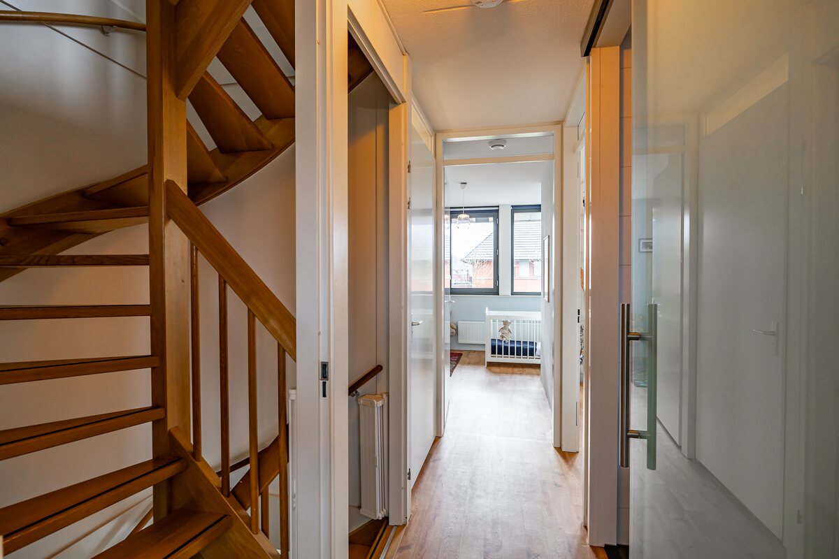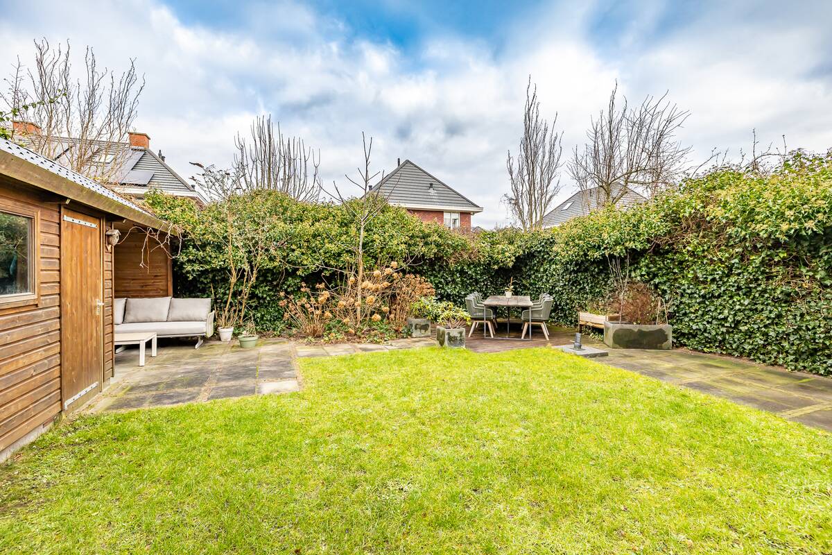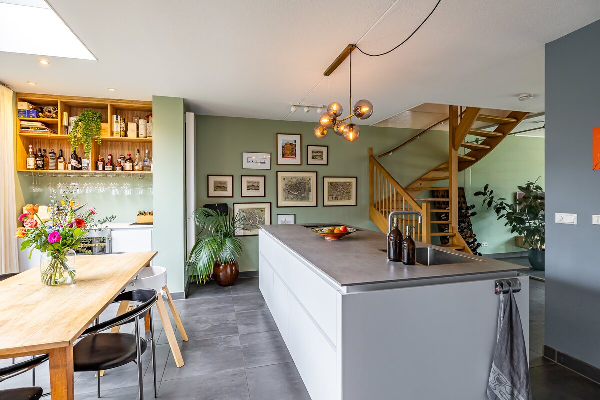 Hal/entree met verzorgd toilet, meterkast, toegang tot de woonkamer en doorloop naar de fraaie garderobe. Deze ruimte ligt heel praktische tussen de voorhal, de berging, de speelkamer en de keuken.Luxueuze, smaakvolle en uitgebouwde woonkeuken (ca. 35 m2, 2019) met groot kook- en spoeleiland en wandmeubel met luxe inbouwapparatuur (o.a. Bora inductiekookplaat met geïntegreerde afzuiging en Gaggenau bakoven en combi-stoomoven en een Quooker). In bijpassende stijl is de pantry ingericht met o.a. wijnklimaatkast. De keuken is deels voorzien van vloerverwarming en geniet veel lichtinval door de grote glaspui en openslaande deuren naar de tuin en de lichtstraat in het plafond. De keuken en de woonkamer zijn middels een chique glapui onder de trap gescheiden. Woonkamer (ca. 26 m2) ligt aan de voorzijde van de woning, heeft zicht op de voortuin en is net als hal, de garderobe en keuken voorzien van een mooie plavuizenvloer. In de hoek staat een gezellige houtkachel.De werk-speelkamer (ca. 12 m2) is volledig geisoleerd en bevindt zich in het achterste deel van de voormalig garage. In het voorste deel bevindt zich de (fietsen)berging.Verdieping: Overloop met separaat toilet.Drie ruime en praktische slaapkamers van ca. 16, 12 en 11 m2. Nette badkamer (ca. 5 m2) met ligbad, inloopdouche en wastafelmeubel.