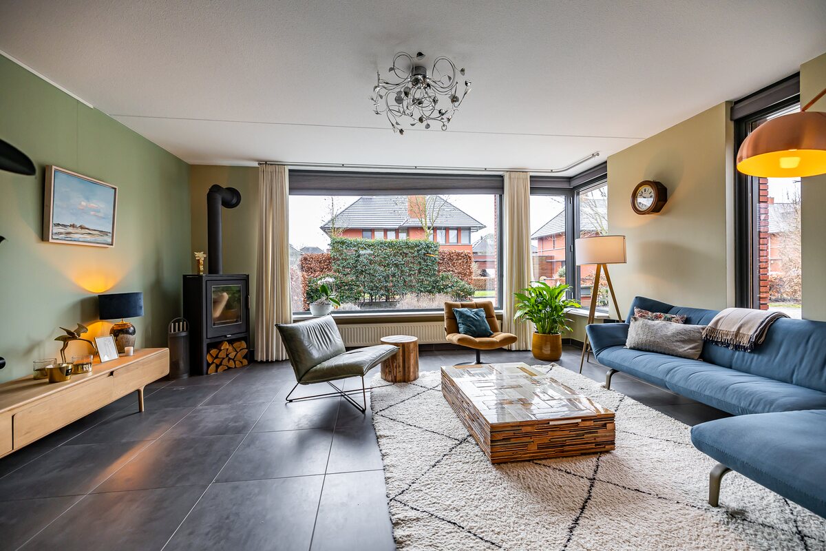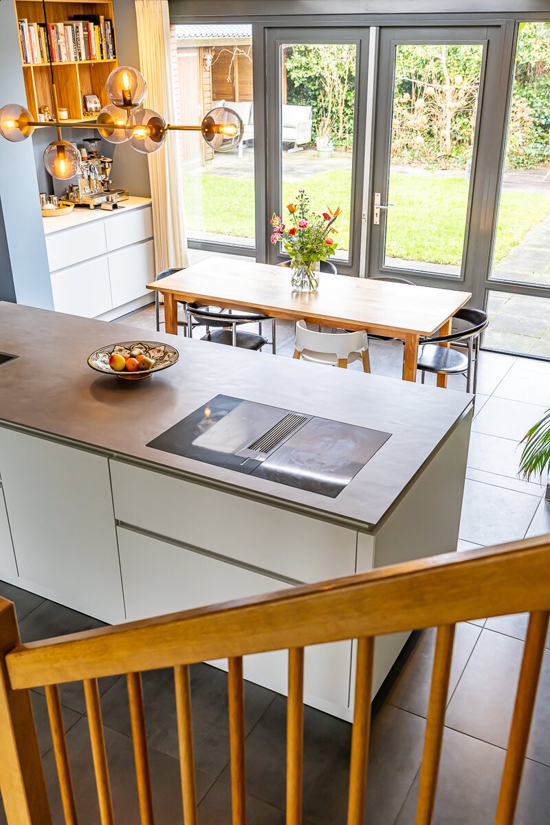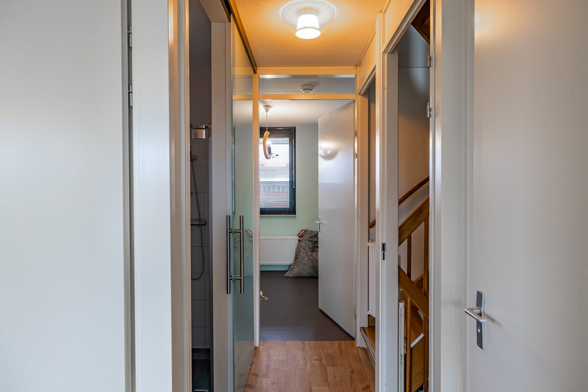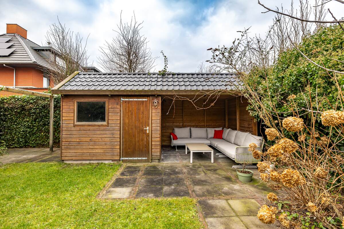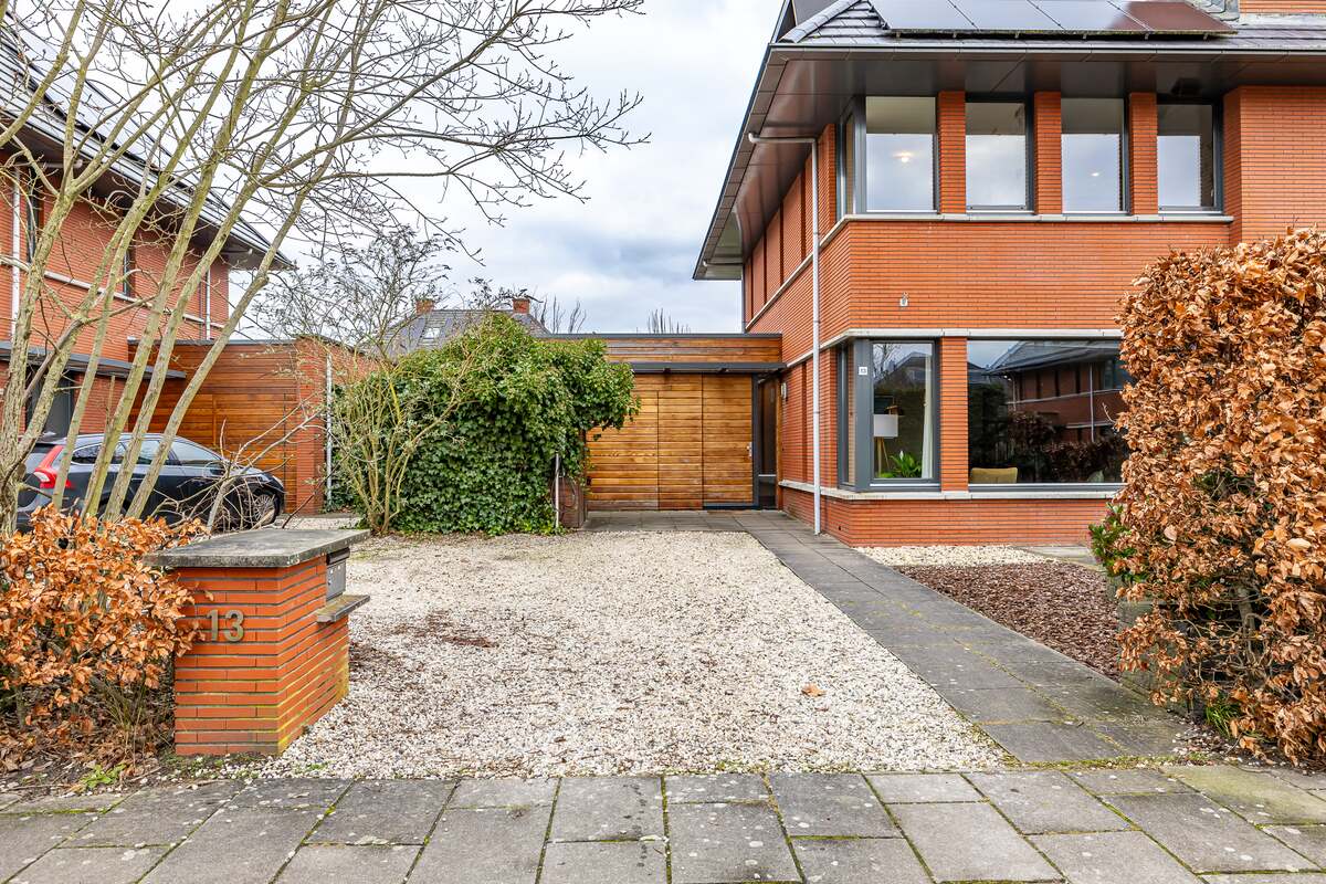 Hal/entree met verzorgd toilet, meterkast, toegang tot de woonkamer en doorloop naar de fraaie garderobe. Deze ruimte ligt heel praktische tussen de voorhal, de berging, de speelkamer en de keuken.Luxueuze, smaakvolle en uitgebouwde woonkeuken (ca. 35 m2, 2019) met groot kook- en spoeleiland en wandmeubel met luxe inbouwapparatuur (o.a. Bora inductiekookplaat met geïntegreerde afzuiging en Gaggenau bakoven en combi-stoomoven en een Quooker). In bijpassende stijl is de pantry ingericht met o.a. wijnklimaatkast. De keuken is deels voorzien van vloerverwarming en geniet veel lichtinval door de grote glaspui en openslaande deuren naar de tuin en de lichtstraat in het plafond. De keuken en de woonkamer zijn middels een chique glapui onder de trap gescheiden. Woonkamer (ca. 26 m2) ligt aan de voorzijde van de woning, heeft zicht op de voortuin en is net als hal, de garderobe en keuken voorzien van een mooie plavuizenvloer. In de hoek staat een gezellige houtkachel.De werk-speelkamer (ca. 12 m2) is volledig geisoleerd en bevindt zich in het achterste deel van de voormalig garage. In het voorste deel bevindt zich de (fietsen)berging.Verdieping: Overloop met separaat toilet.Drie ruime en praktische slaapkamers van ca. 16, 12 en 11 m2. Nette badkamer (ca. 5 m2) met ligbad, inloopdouche en wastafelmeubel.