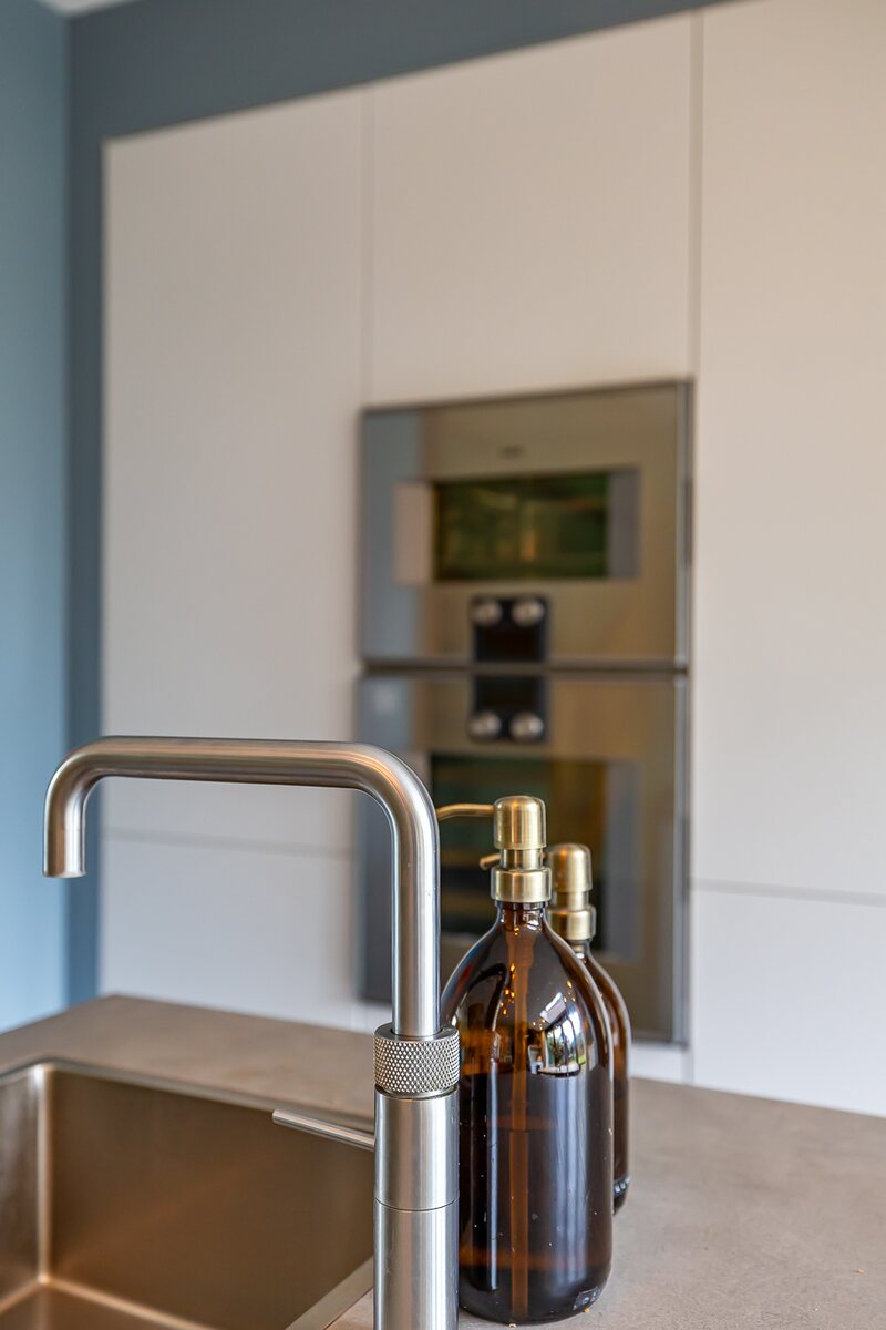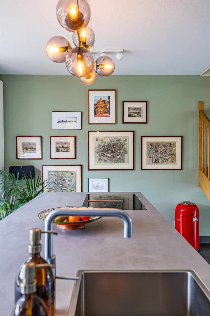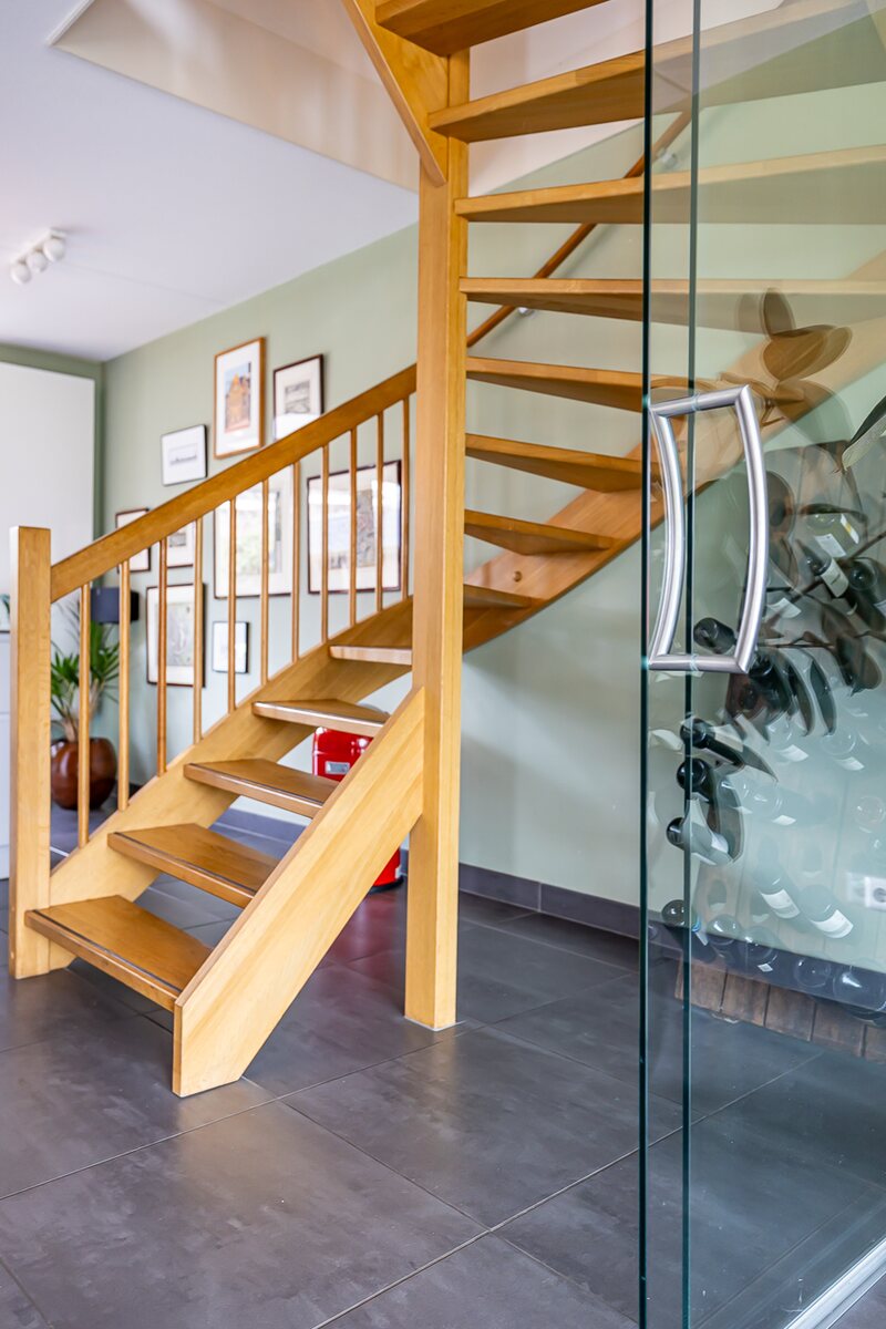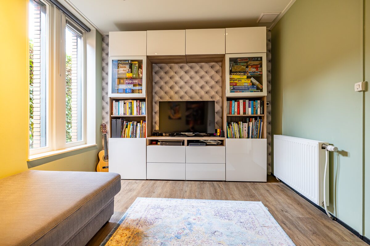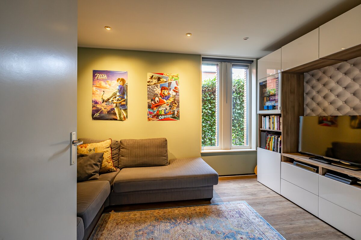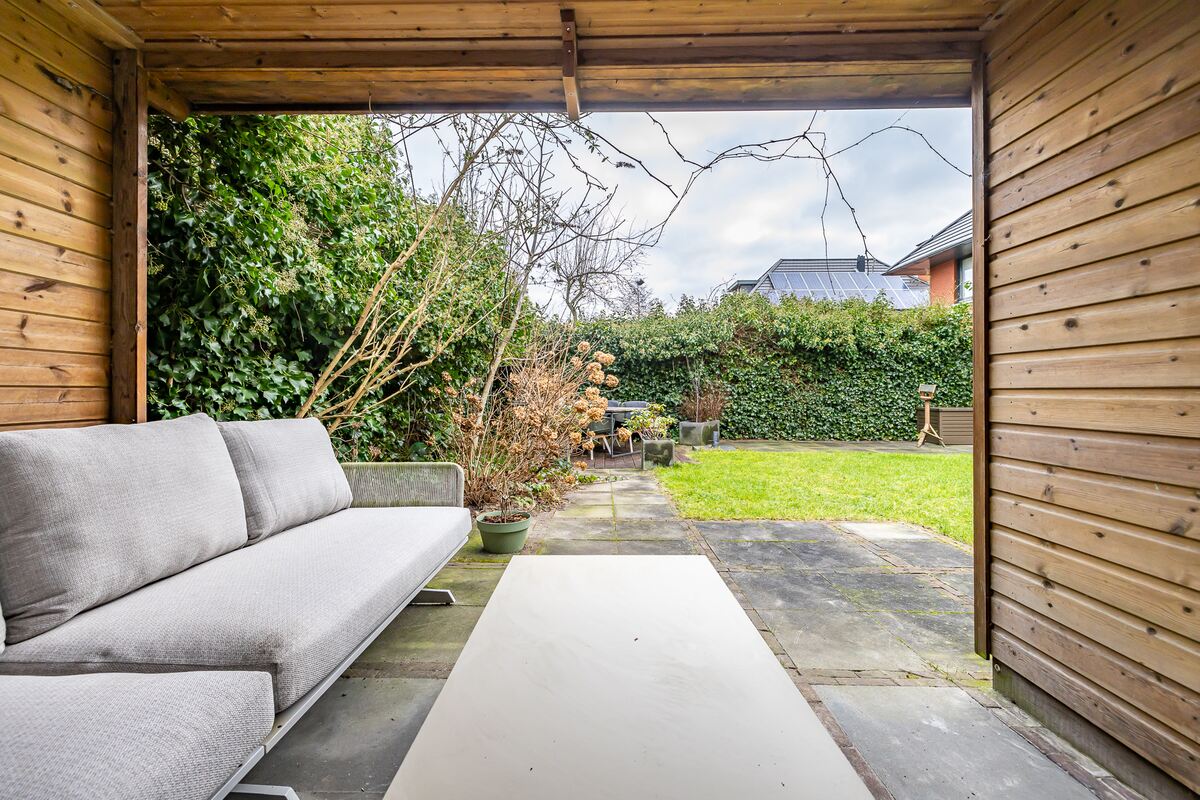 Hal/entree met verzorgd toilet, meterkast, toegang tot de woonkamer en doorloop naar de fraaie garderobe. Deze ruimte ligt heel praktische tussen de voorhal, de berging, de speelkamer en de keuken.Luxueuze, smaakvolle en uitgebouwde woonkeuken (ca. 35 m2, 2019) met groot kook- en spoeleiland en wandmeubel met luxe inbouwapparatuur (o.a. Bora inductiekookplaat met geïntegreerde afzuiging en Gaggenau bakoven en combi-stoomoven en een Quooker). In bijpassende stijl is de pantry ingericht met o.a. wijnklimaatkast. De keuken is deels voorzien van vloerverwarming en geniet veel lichtinval door de grote glaspui en openslaande deuren naar de tuin en de lichtstraat in het plafond. De keuken en de woonkamer zijn middels een chique glapui onder de trap gescheiden. Woonkamer (ca. 26 m2) ligt aan de voorzijde van de woning, heeft zicht op de voortuin en is net als hal, de garderobe en keuken voorzien van een mooie plavuizenvloer. In de hoek staat een gezellige houtkachel.De werk-speelkamer (ca. 12 m2) is volledig geisoleerd en bevindt zich in het achterste deel van de voormalig garage. In het voorste deel bevindt zich de (fietsen)berging.Verdieping: Overloop met separaat toilet.Drie ruime en praktische slaapkamers van ca. 16, 12 en 11 m2. Nette badkamer (ca. 5 m2) met ligbad, inloopdouche en wastafelmeubel.