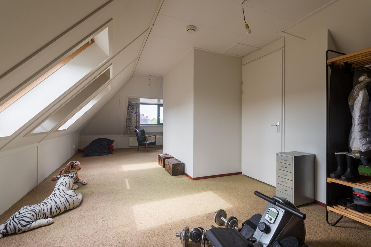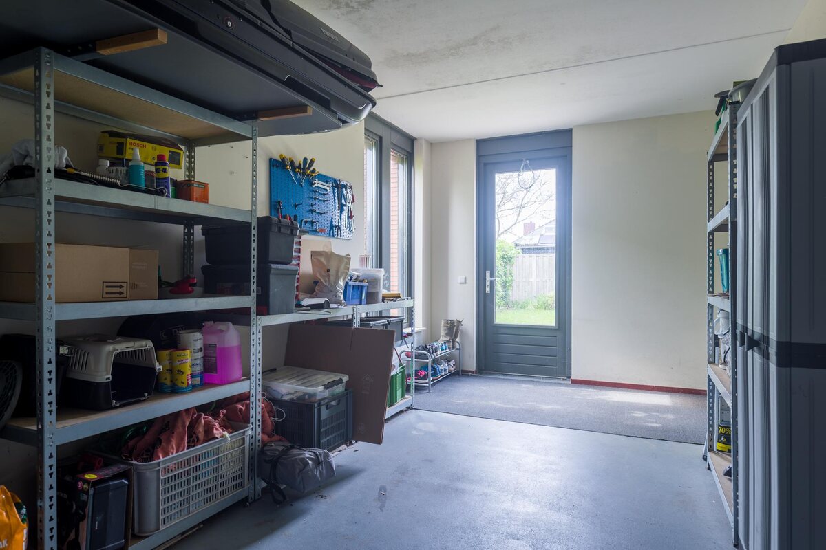 Hal/entree met verzorgd toilet, meterkast en toegang tot de woonkamer.Riante doorzonwoonkamer aan de voorzijde met uitgebouwde open woonkeuken aan de achterzijde (totaal resp. 35 + 32 = 67 m2!), laminaat op de vloer en in de achtergevel openslaande tuindeuren. Doorloop naar de bijkeuken. Vanuit de woonkamer enig zicht op de Onlanden. De keuken is voorzien van een wandmeubel en een spoeleiland (2021) en voorzien van alle gemakken: inductiekookplaat met rvsafzuigkap, oven, vaatwasser, koelvriescombinatie en veel bergruimte in onder- en bovenkasten.Bijkeuken (ca. 8 m2) met wasmachine aansluiting, loopdeur naar de tuin en binnendoor naar de garage.Garage (ca. 19 m2) met betonvloer, openslaande deuren naar de oprit en separate loopdeur naar de tuin.Verdieping: Overloop met separaat toilet.Drie ruime en praktische slaapkamers van ca. 11, 12 en 16 m2. Allen v.v. vloerbedekking.Badkamer (ca. 6 m2) met ligbad, wastafelmeubel en inloopdouche met dubbele douchekop.Tweede verdieping: overloopU-vormige zolderkamer van ca. 30 m2 met dakkapel en stookruimte (CV ketel 2018 en WTU).