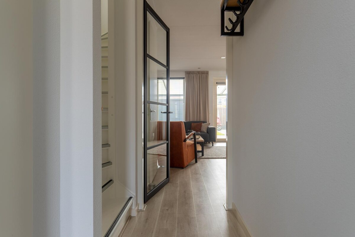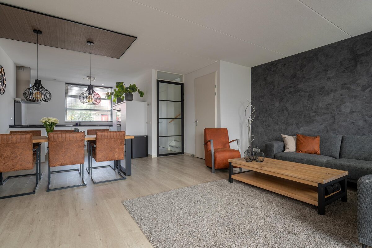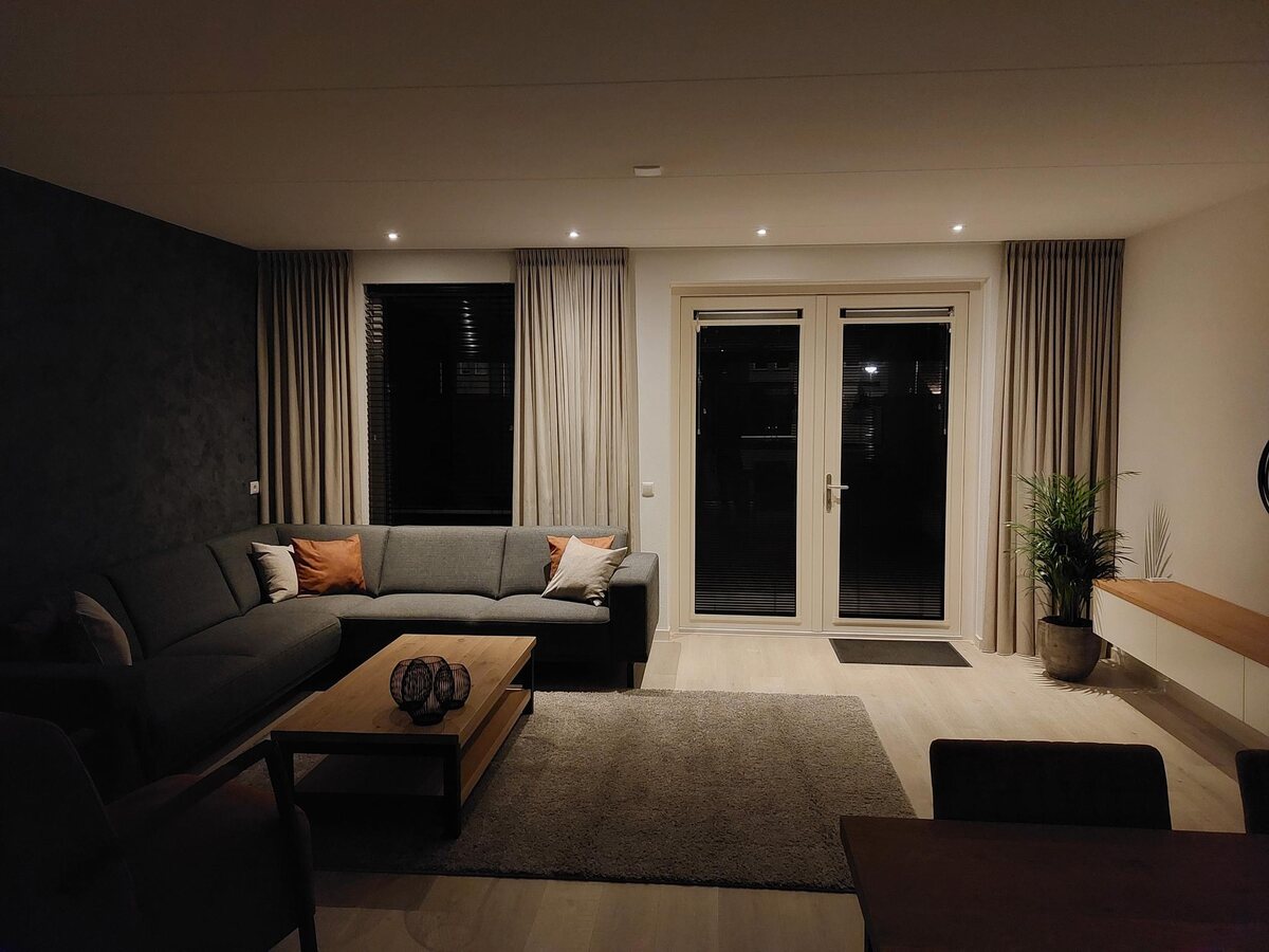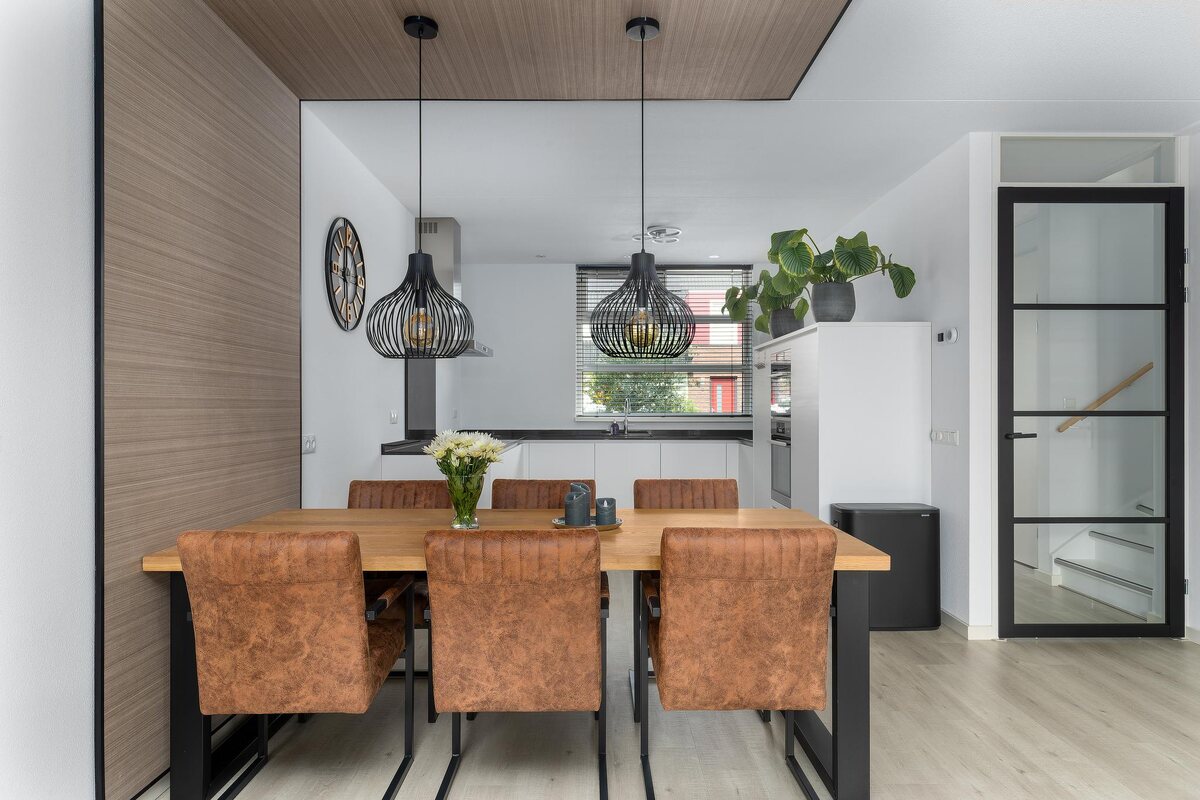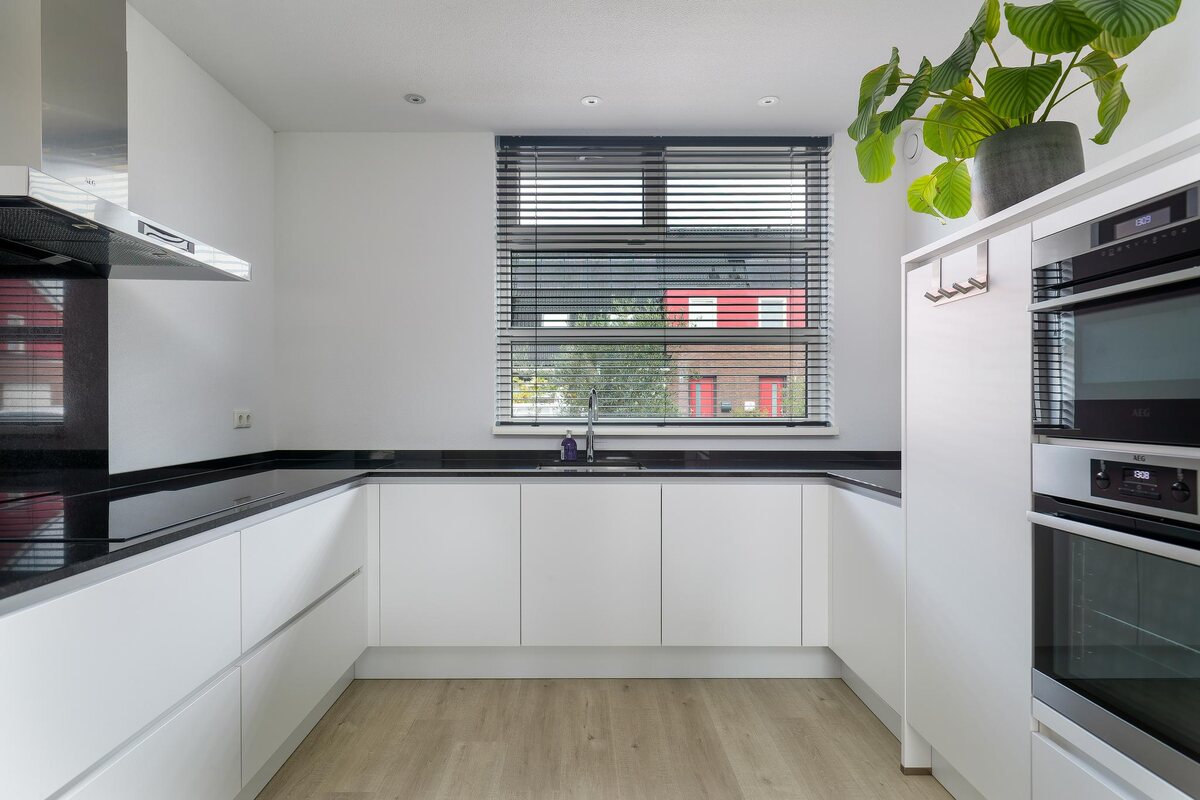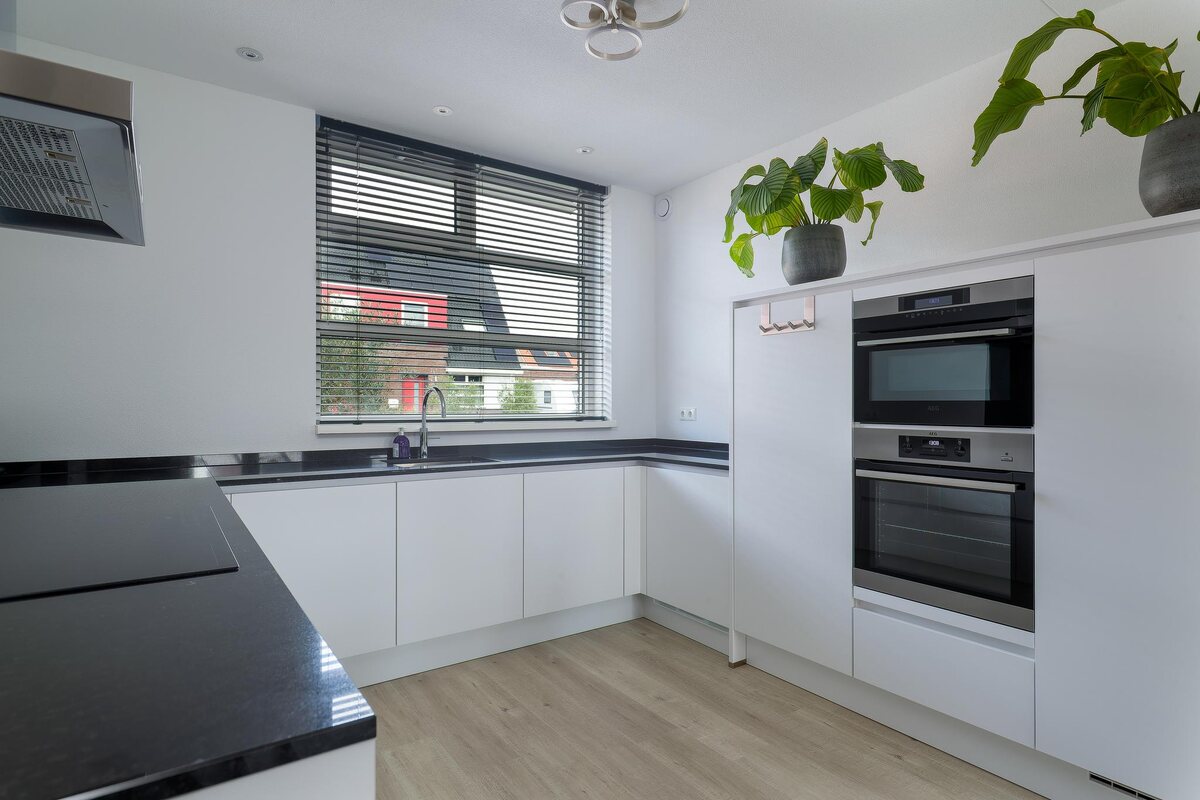 Begane grondEntree/hal met toegang tot een modern toilet, trapopgang, uitgebreide meterkast met waterontharder en doorloop naar de woonkamer middels een strak zwart gelakte maatdeur met gehard glas.De woonkamer (ca. 31 m2, vloerverwarming) is voorzien een uitbouw met openslaande terrasdeuren richting de tuin en inbouwspots in het plafond. Prachtig houten wand-/plafondelement waarvan een wand is afgewerkt met Stucco (betonlook).Strakke en luxe open keuken (12, m2, U-opstelling) eveneens met inbouwspots in het plafond en voorzien van alle gemakken (merk AEG): Quooker combikraan, ovencombi, magnetroncombi, koelkast, vriezer, inductiekookplaat, afzuigkap en een vaatwasser. De begane grond is voorzien van vloerverwarming en verder een Quicksteplaminaatvloer die volledig waterdicht is, deze ligt ook op de eerste en tweede verdieping.