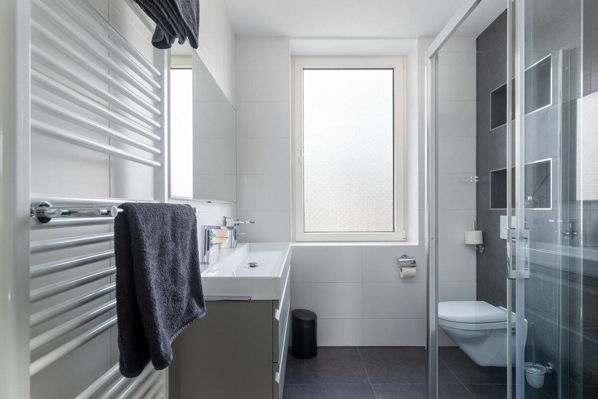 Eerste verdieping: Op de eerste verdieping bevinden zich drie slaapkamers van ca. 14, 10 en 7 m2. Waarvan de grootste slaapkamer eveneens is voorzien van Stucco (betonlook).Moderne en complete badkamer (ca. 5 m2) voorzien van grote inbouw regendouche, wastafelmeubel met grote spiegel (ledverlichting en anticondensfunctie), toilet, designradiator met handdoekbeugels, vloerverwarming en mechanische ventilatie.