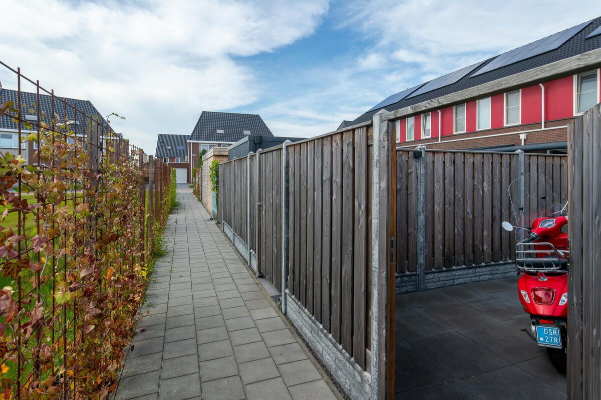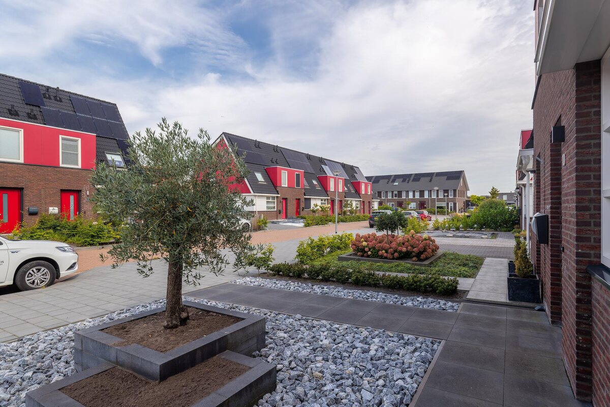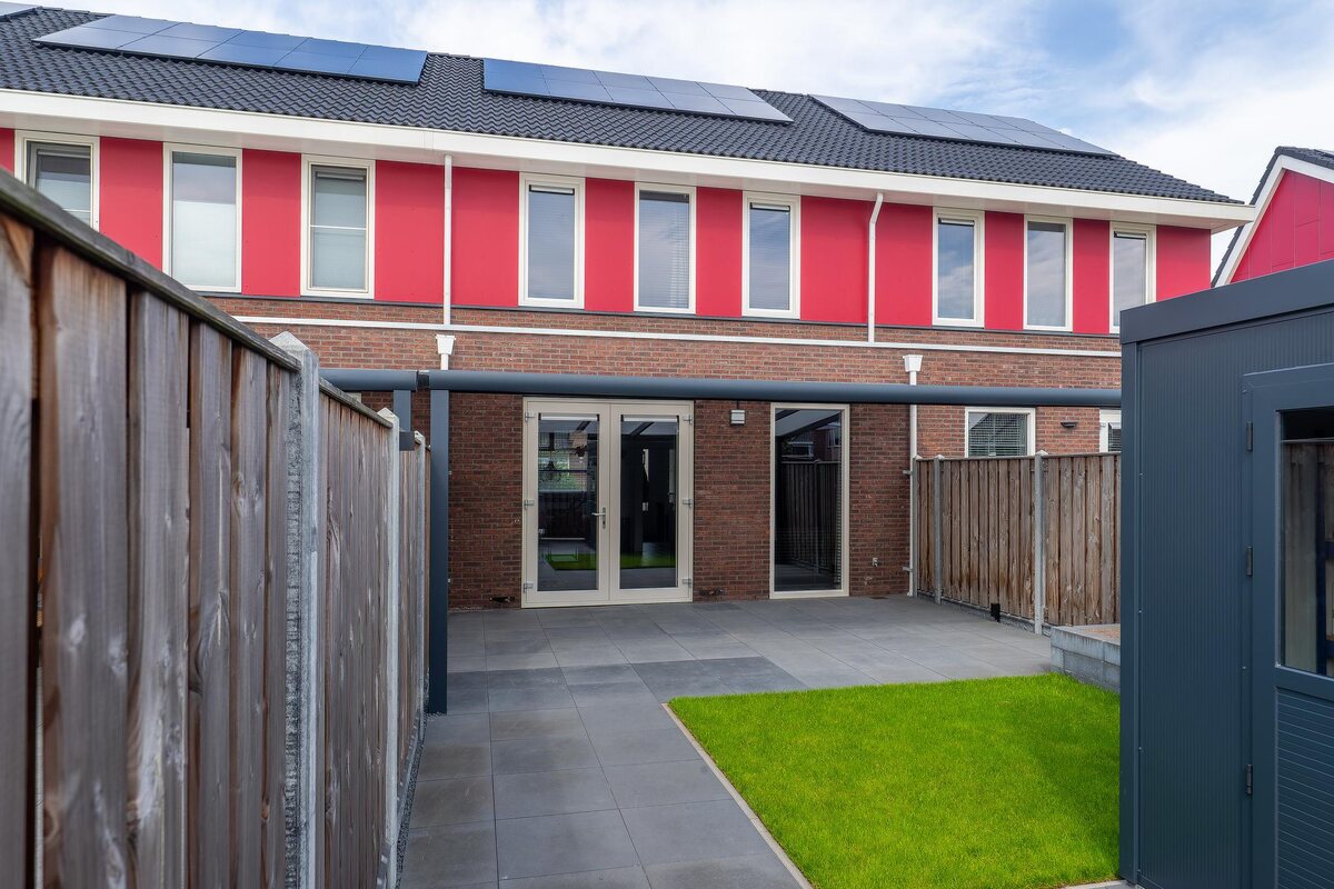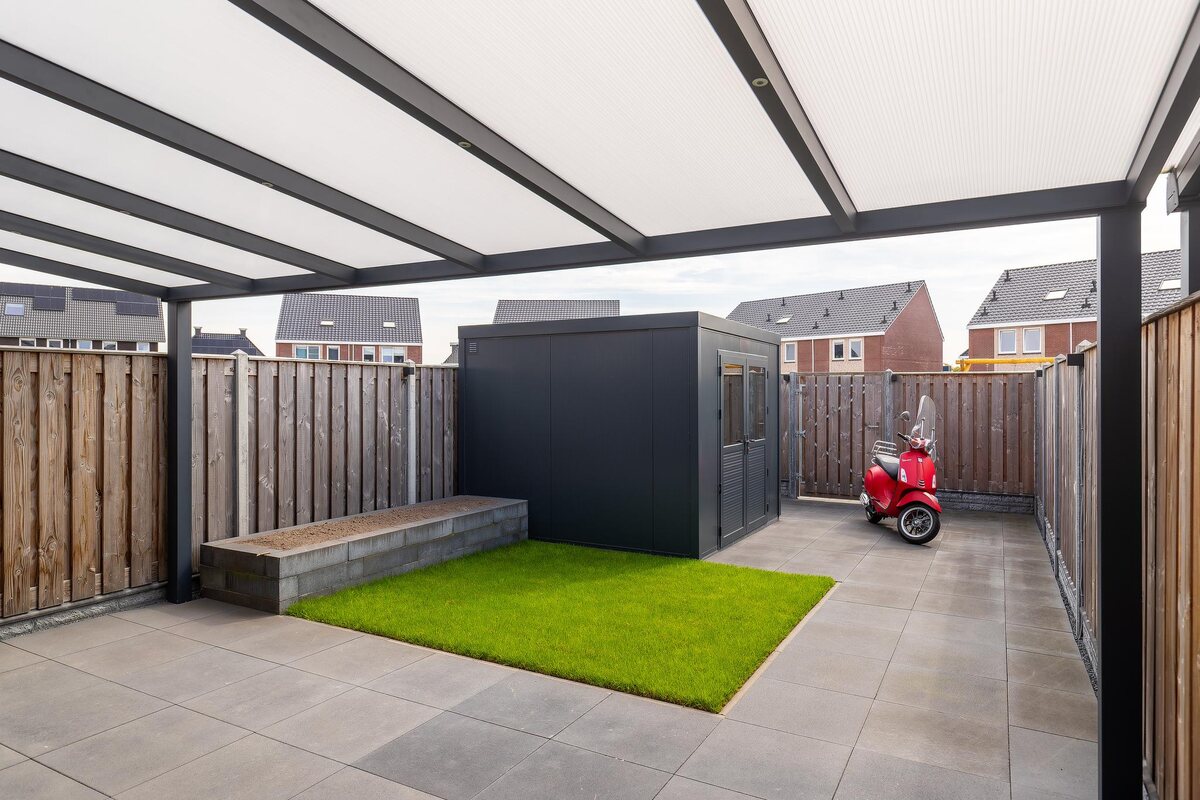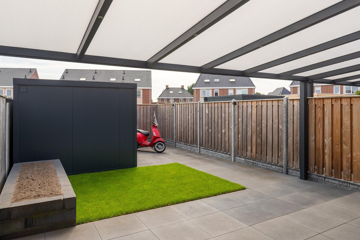 De eengezinswoning beschikt over een fraaie onderhoudsarme achtertuin (ca. 13,5 bij 6 meter) op het zuiden voorzien van sfeerverlichting. Op de erfafscheiding staat een robuuste hout/betonschutting. Aan de achtergevel is een luxe terrasoverkapping gerealiseerd met extra stroomaansluiting en mogelijkheid voor het plaatsten van extra screens. Daarnaast staat achter in de tuin een vrijstaande geïsoleerde aluminium berging met elektra en verlichting. Achterom met aangrenzend een groot speelveld.De ruime voortuin geeft extra privacy (6 bij 6 meter) en is onderhoudsarm aangelegd.