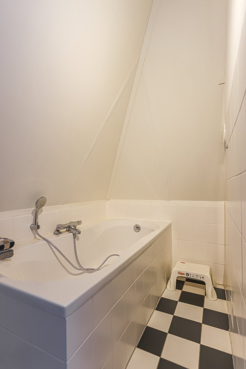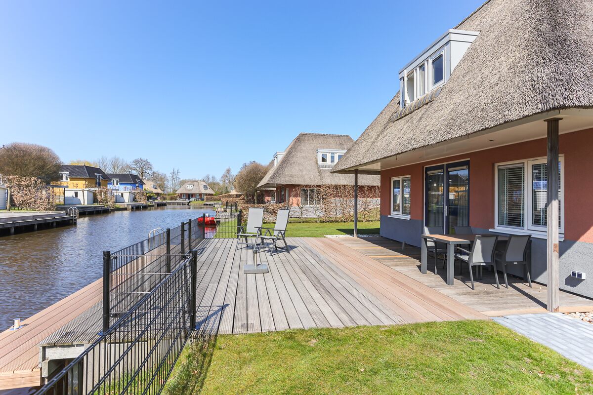 Begane grond: entree met trap. Op het waterniveau: hal, moderne badkamer met toilet, wastafel en douchecabine, ruime woonkamer met openslaande tuindeuren naar veranda en fraai terras aan waterzijde, open keuken (samen ca. 32m²) met moderne keukeninrichting v.v. diverse apparatuur, bijkeuken met witgoed. Eerste verdieping: overloop, 3, slaapkamers (2 grote en een kleinere kinderkamer) en een 2e badkamer met wastafel, toilet en ligbad met douche.