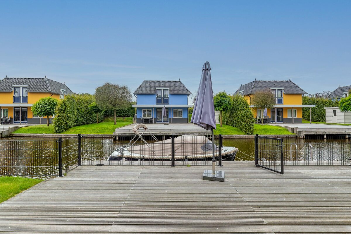 Begane grond: entree met trap. Op het waterniveau: hal, moderne badkamer met toilet, wastafel en douchecabine, ruime woonkamer met openslaande tuindeuren naar veranda en fraai terras aan waterzijde, open keuken (samen ca. 32m²) met moderne keukeninrichting v.v. diverse apparatuur, bijkeuken met witgoed. Eerste verdieping: overloop, 3, slaapkamers (2 grote en een kleinere kinderkamer) en een 2e badkamer met wastafel, toilet en ligbad met douche.