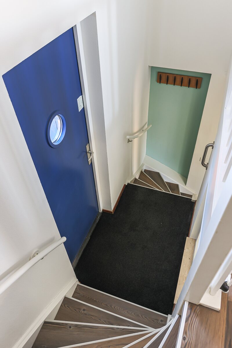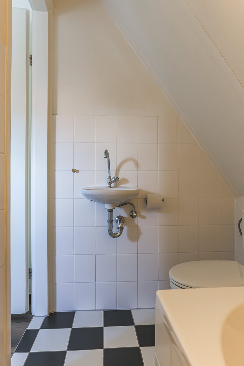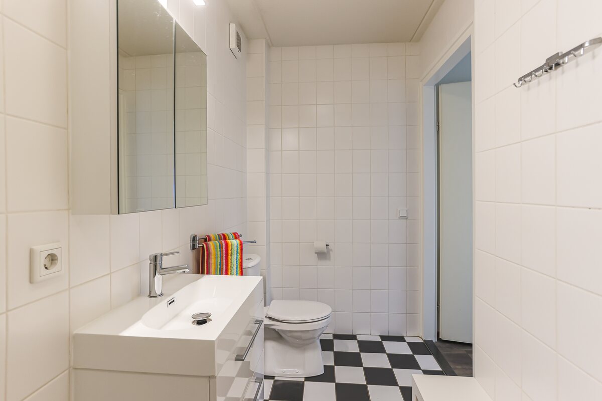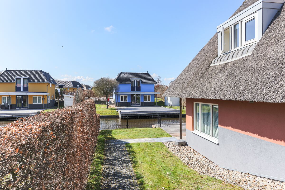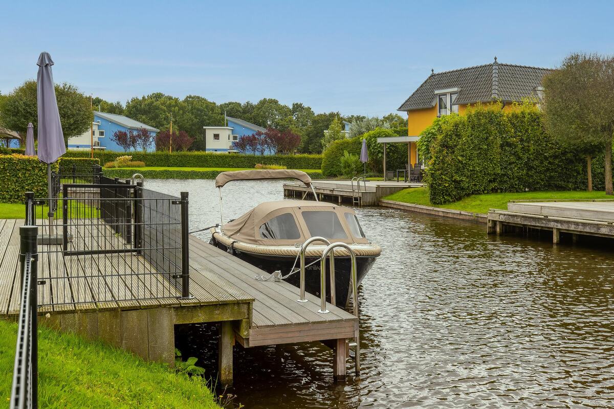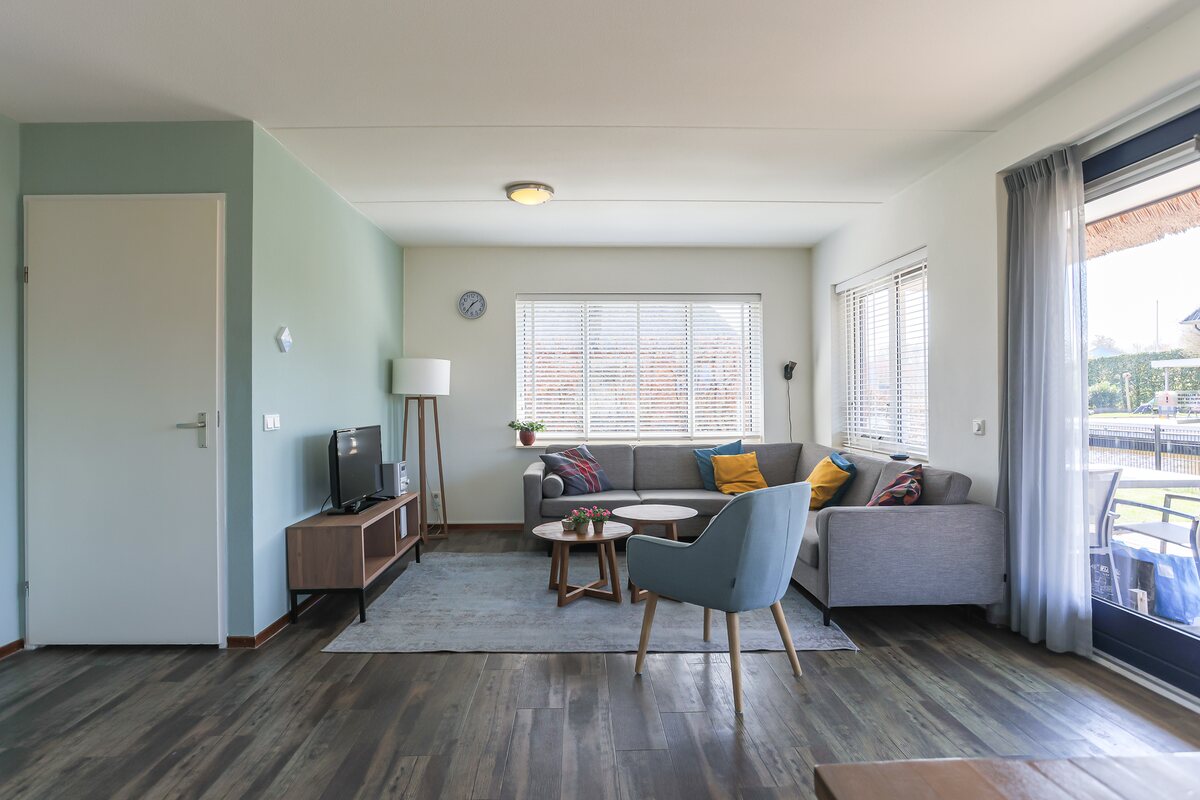 Begane grond: entree met trap. Op het waterniveau: hal, moderne badkamer met toilet, wastafel en douchecabine, ruime woonkamer met openslaande tuindeuren naar veranda en fraai terras aan waterzijde, open keuken (samen ca. 32m²) met moderne keukeninrichting v.v. diverse apparatuur, bijkeuken met witgoed. Eerste verdieping: overloop, 3, slaapkamers (2 grote en een kleinere kinderkamer) en een 2e badkamer met wastafel, toilet en ligbad met douche.