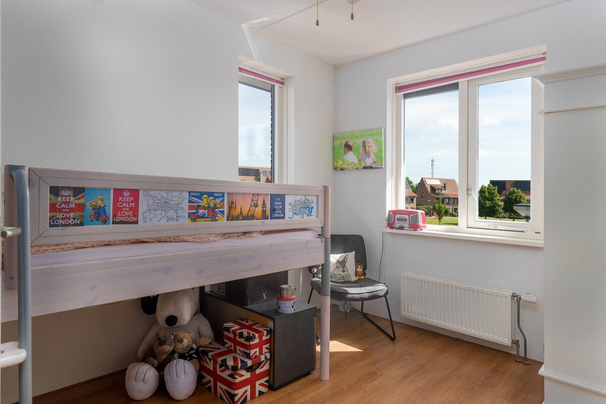 We hebben een laag energieverbruik en in de koudere maanden is het erg aangenaam om op te warmen bij de haard. Deze is afsluitbaar met glas, waardoor je gerust de kamer kunt verlaten terwijl de haard nog brandt. Dankzij het Evohome systeem, een thermostaat met zoneregeling en bedieningsmogelijkheid via een app, bespaar je op je verbruik, want met dit systeem is het mogelijk voor iedere kamer of zone (meerdere kamers) een eigen temperatuur en programma in te stellen. Eind vorig jaar hebben we 12 zonnepanelen met microchip laten plaatsen. De individuele omvormer per paneel vermindert brandgevaar en heeft een langere garantietermijn. Onze buren hebben de garage omgebouwd tot aanleunwoning, dus ook dat behoort tot de mogelijkheden. De Vosholen is een groene kindvriendelijke nieuwbouwwijk. We hebben fijne buren om ons heen, waar je weinig van verneemt, en in de straat wordt af en toe eenbuurt-BBQ georganiseerd.
