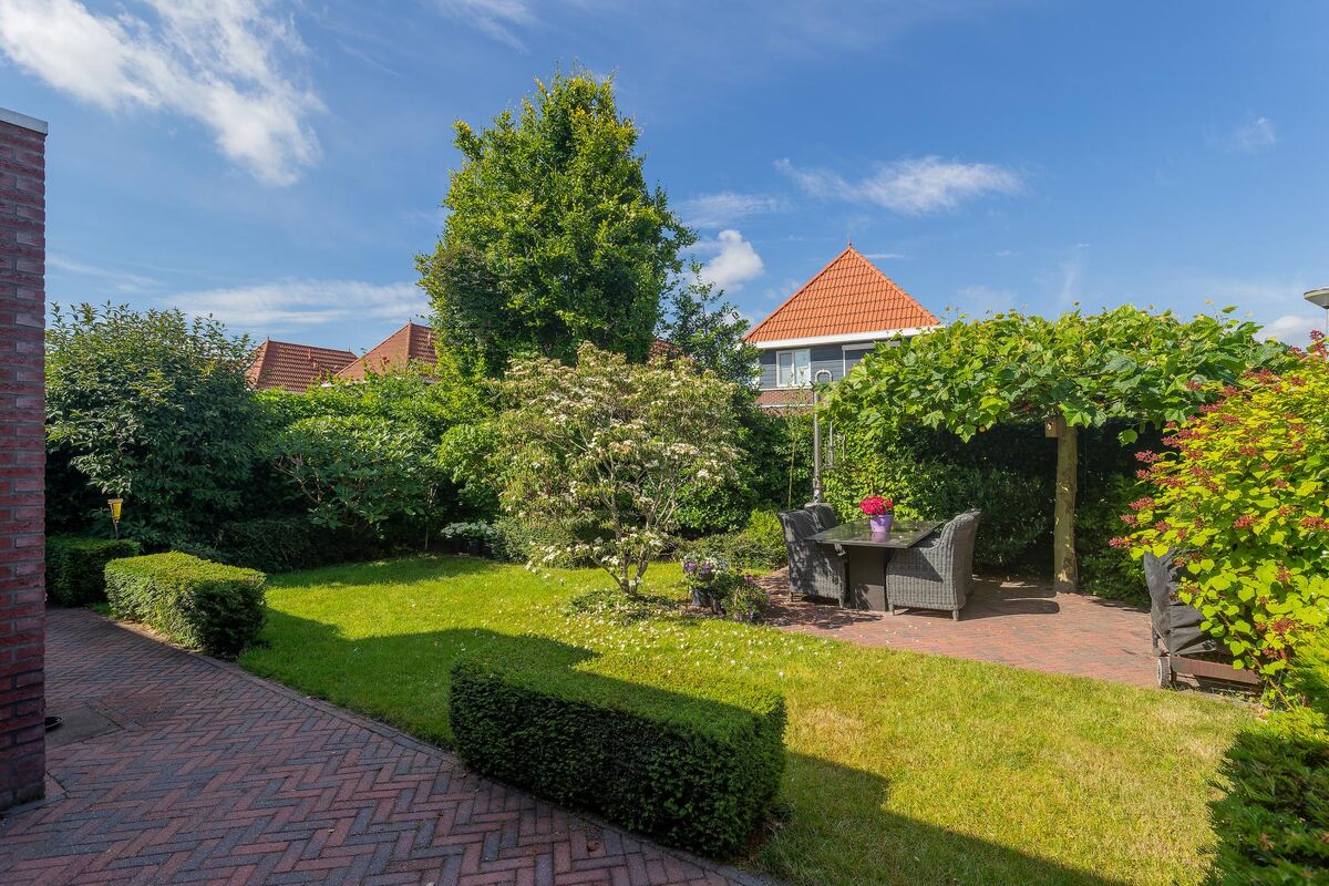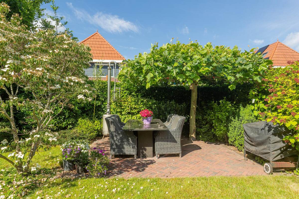 De tuin is bereikbaar middels een praktische achterom en de tuin is volledig afgesloten, grotendeels middels Heras hekwerk. De royale oprit is geschikt voor meerdere auto's. Ook is er ruimte om de caravan/boot achter een van de auto's te plaatsen. Zelf hebben wij 2 auto's naast elkaar staan en daar past nog een fiets/motor tussendoor, zonder dat je iets hoeft te verplaatsen.