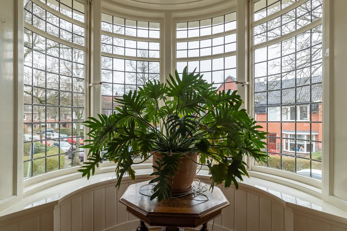 Het begint al wanneer je de straat komt inlopen met het zicht op de prachtige halfronde erker met glas- in- lood ramen. Ook de andere ramen en de gevel zijn met veel gevoel voor schoonheid ontworpen en gebouwd in een stijl die de voorloper is van de jaren dertig woningen. Voor de prachtige binnendeuren heb ik bijpassende deurkrukken gevonden omdat helaas de oorspronkelijk bakelieten exemplaren waren verdwenen.