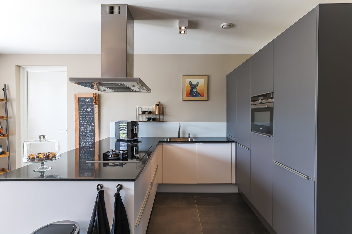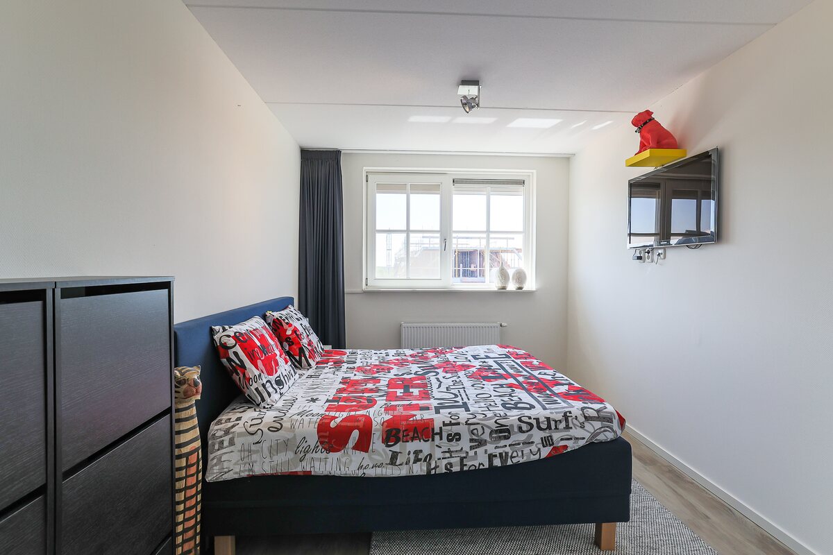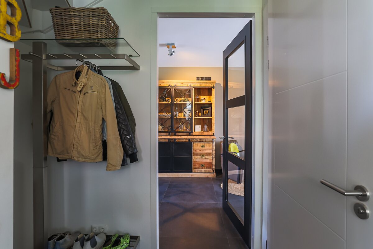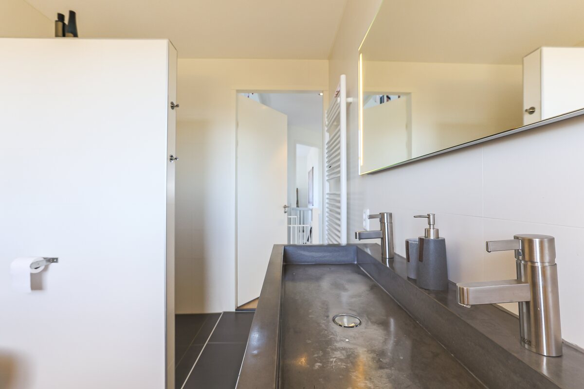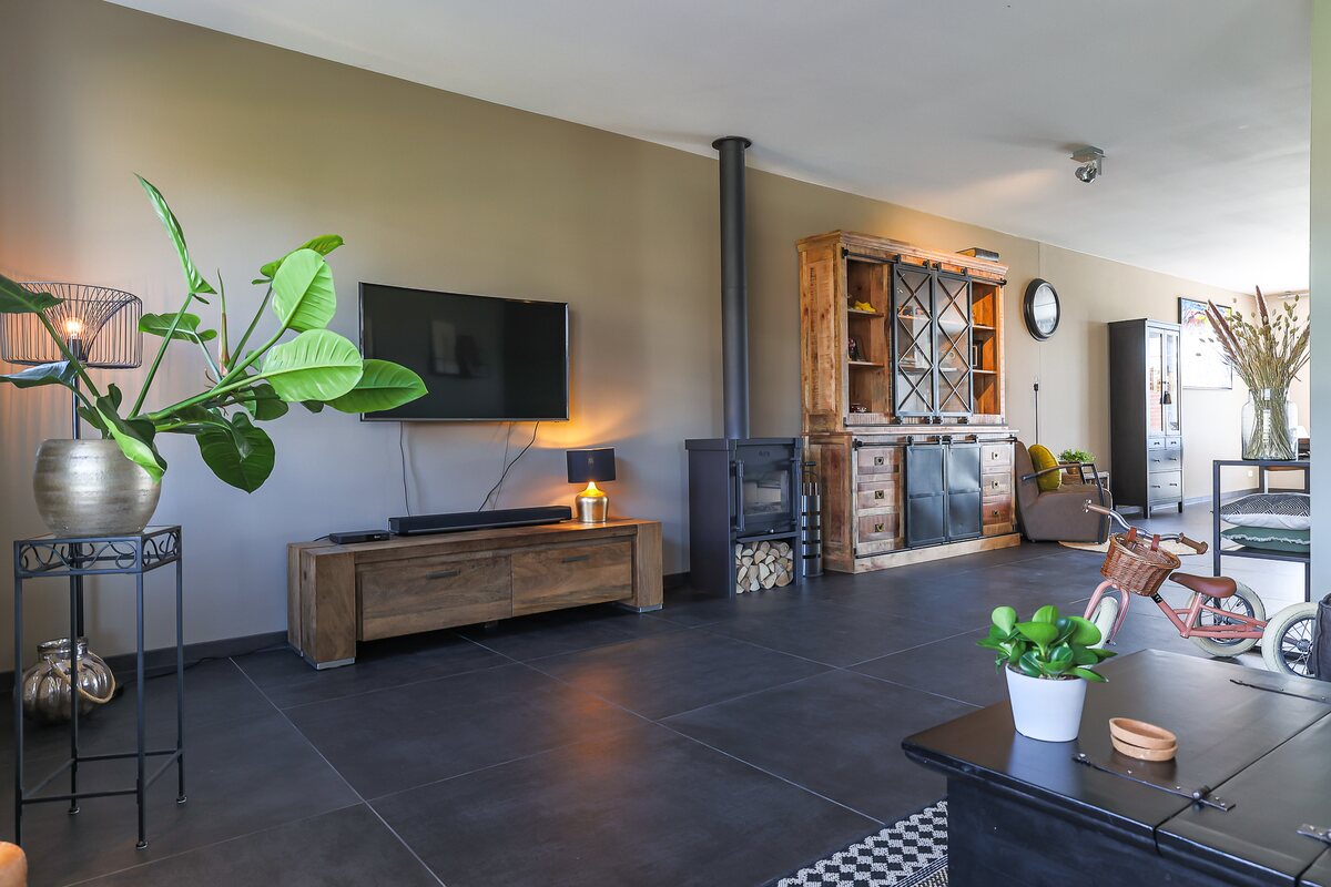 Begane grond: entree/hal met toilet, royale en fraaie U-vormige vloerverwarmde living (ca. 66 m2) met erker en houtkachel. Aan de achterzijde de tuingerichte luxe open woonkeuken in U-opstelling v.v. inbouwapparatuur en openslaande tuindeuren. Via de keuken toegang tot de garage (18 m2). Deze heeft een tuindeur aan de achterzijde en aan de voorzijde openslaande houten deuren naar de carport en oprit.Eerste verdieping: overloop, 3 slaapkamers (16, 11 en 11 m2) en een strakke badkamer met ligbad, dubbel wastafelmeubel, flinke douche en een tweede toilet.Tweede verdieping: flinke vierde kamer (34 m2!) met opstelplaats voor de wasmachine en cv-ketel.