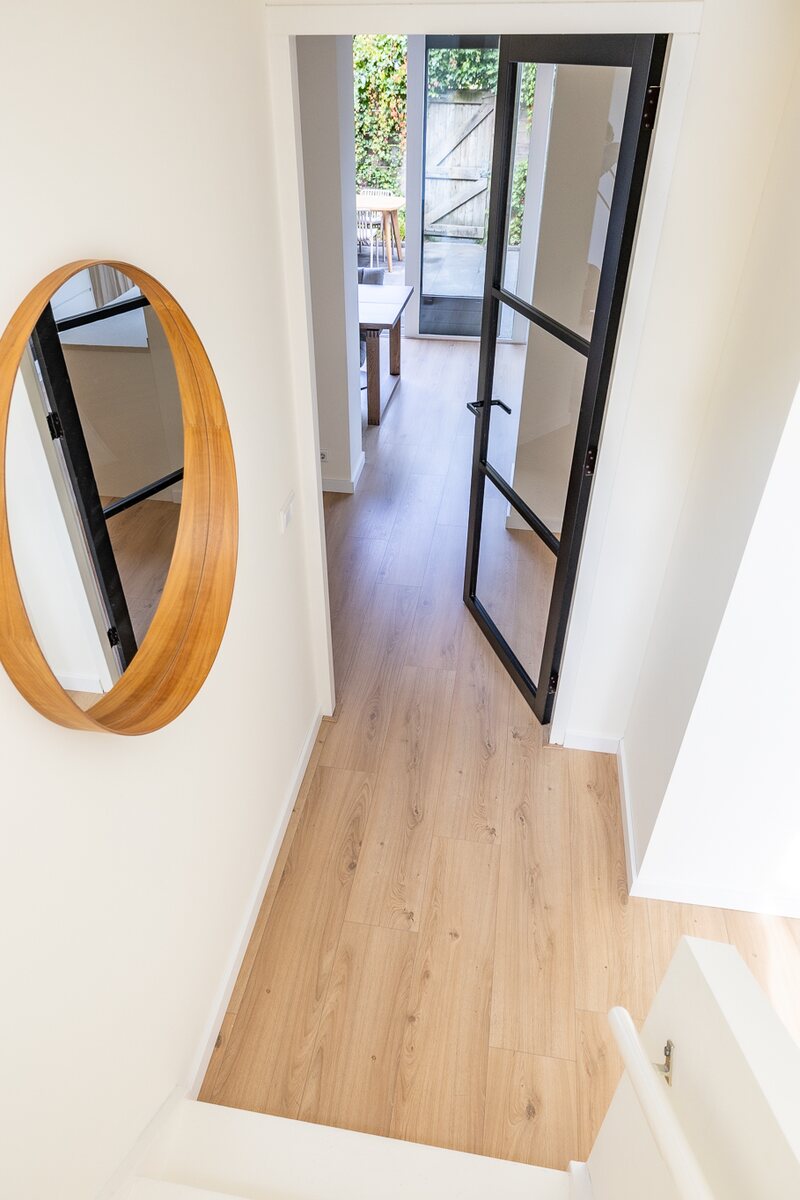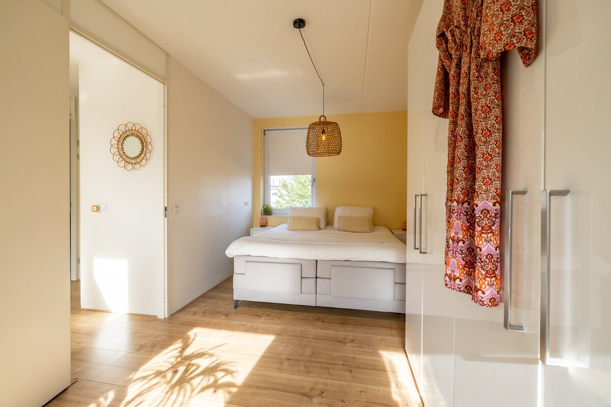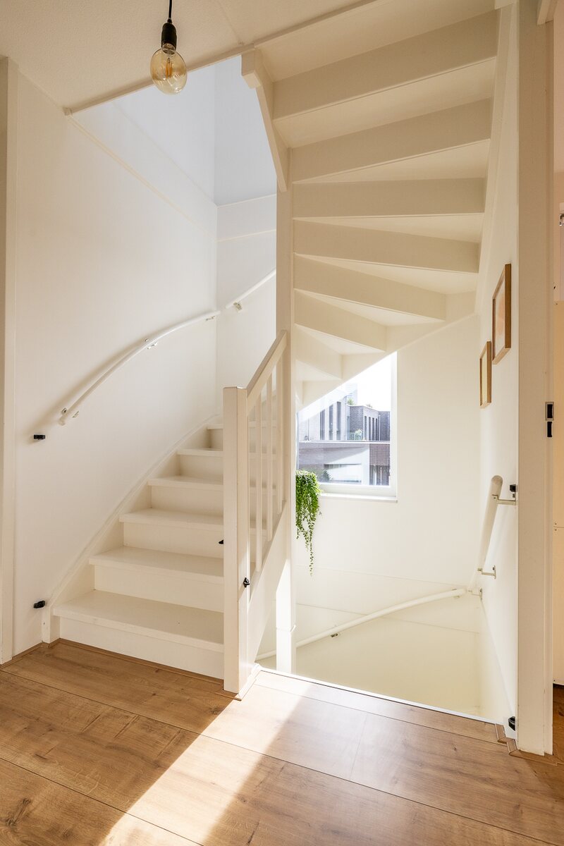 Begane grond: entree/hal en een toilet met fonteintje. Door de uitbouw is een prachtige living (57 m2) ontstaan met open keuken en openslaande tuindeuren.De luxe keuken (2020) is voorzien van een grote inbouwkast met daarin een weggewerkte koffiecorner. Daarnaast is de keuken voorzien van veel opbergruimte, alle benodigde inbouwapparatuur, Quooker en een bar.Eerste verdieping: overloop, drie slaapkamers van ca. 8, 8 en 15 m2. Moderne badkamer met inloopdouche, tweede toilet, wastafelmeubel met dubbele kraan en designradiator.Tweede verdieping: royale open verdieping van ca. 22 m2 met vaste kastenwand en openslaande deuren naar het ruime dakterras van ca. 15 m2. Het dakterras heeft de hele dag zon. In de berging vind je de wasmachineaansluiting, boiler, waterpunt en cv-opstelling.