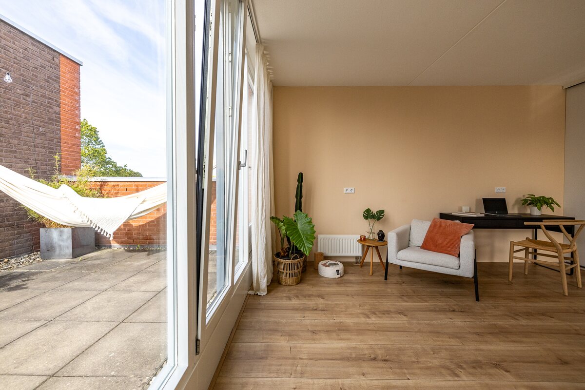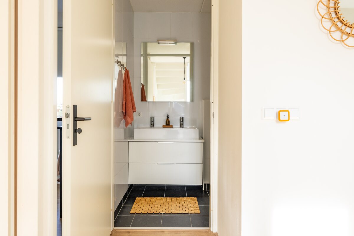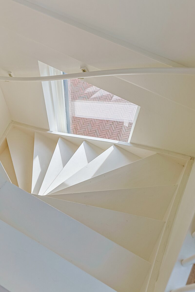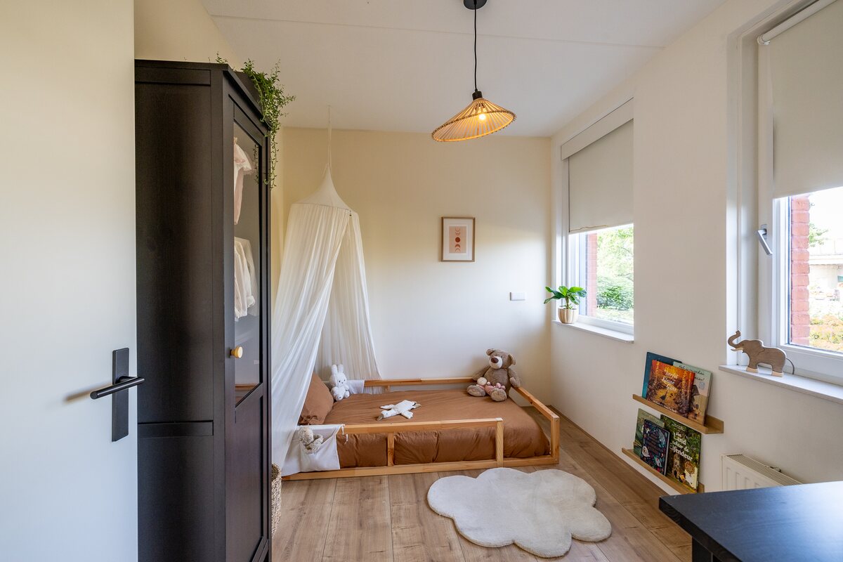 Begane grond: entree/hal en een toilet met fonteintje. Door de uitbouw is een prachtige living (57 m2) ontstaan met open keuken en openslaande tuindeuren.De luxe keuken (2020) is voorzien van een grote inbouwkast met daarin een weggewerkte koffiecorner. Daarnaast is de keuken voorzien van veel opbergruimte, alle benodigde inbouwapparatuur, Quooker en een bar.Eerste verdieping: overloop, drie slaapkamers van ca. 8, 8 en 15 m2. Moderne badkamer met inloopdouche, tweede toilet, wastafelmeubel met dubbele kraan en designradiator.Tweede verdieping: royale open verdieping van ca. 22 m2 met vaste kastenwand en openslaande deuren naar het ruime dakterras van ca. 15 m2. Het dakterras heeft de hele dag zon. In de berging vind je de wasmachineaansluiting, boiler, waterpunt en cv-opstelling.