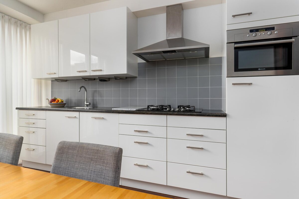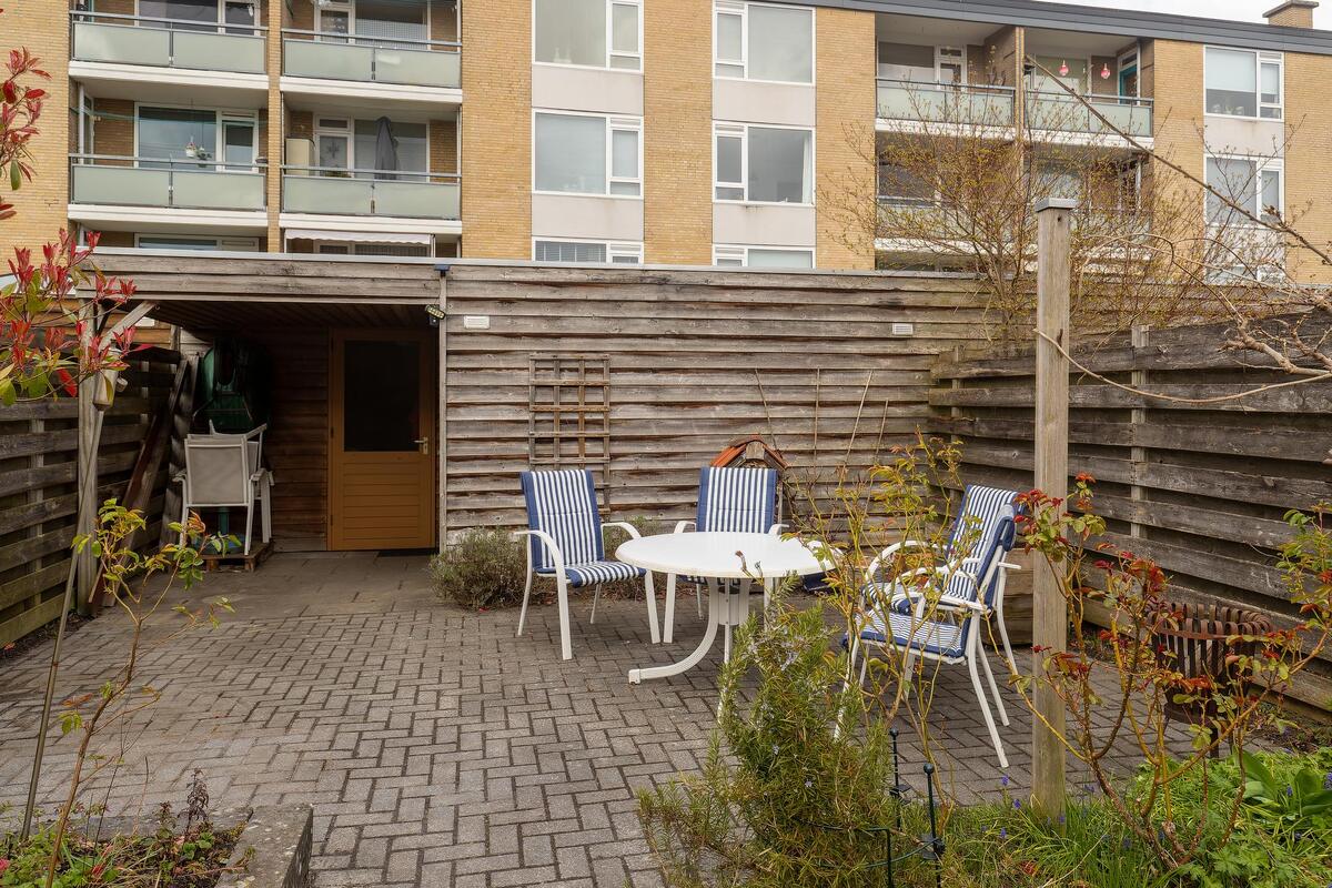 Achter de woning ligt een 24 meter (!) diepe en zonnige achtertuin die beschikt over een garage en een berging.De garage is met de auto te bereiken via de achtergelegen, en alleen voor aangrenzende bewoners toegankelijke, toegangsweg.Het betreft het grote type met extra ruimte in de keuken.Door de goede isolatie en de zonneboiler kan de woning volstaan met een laag energieverbruik.