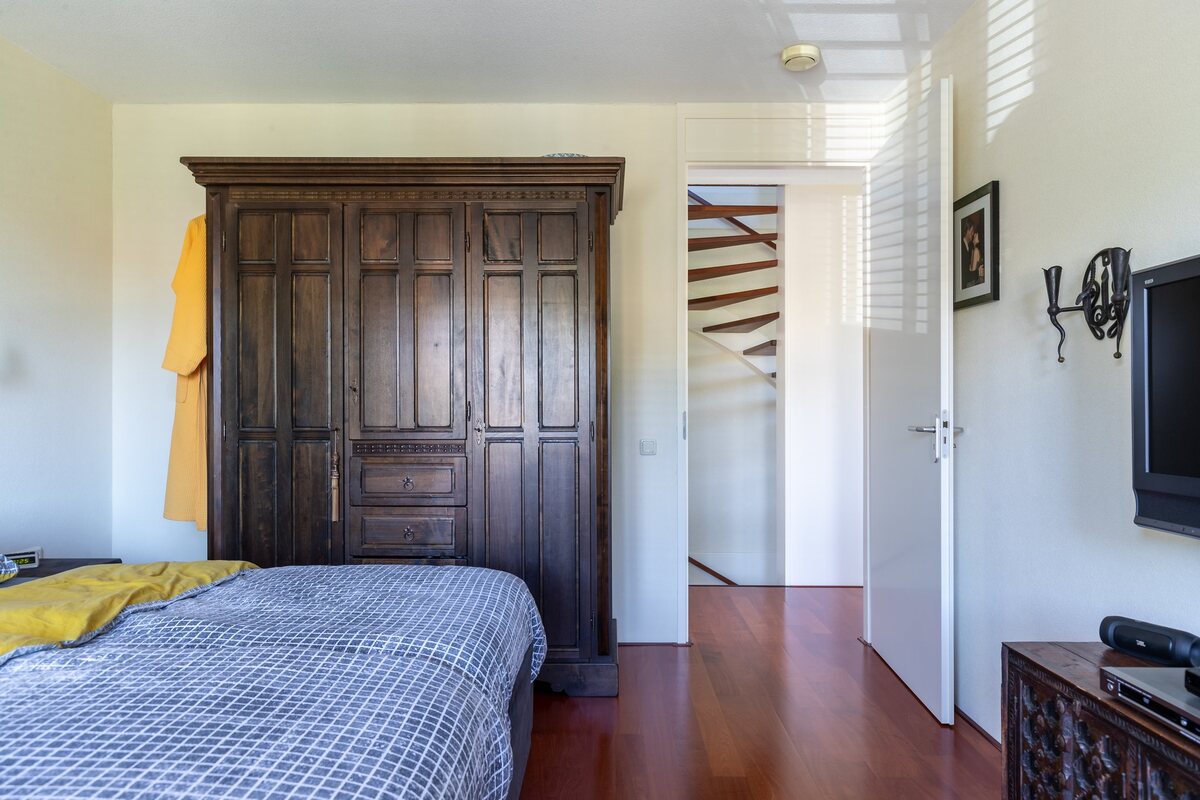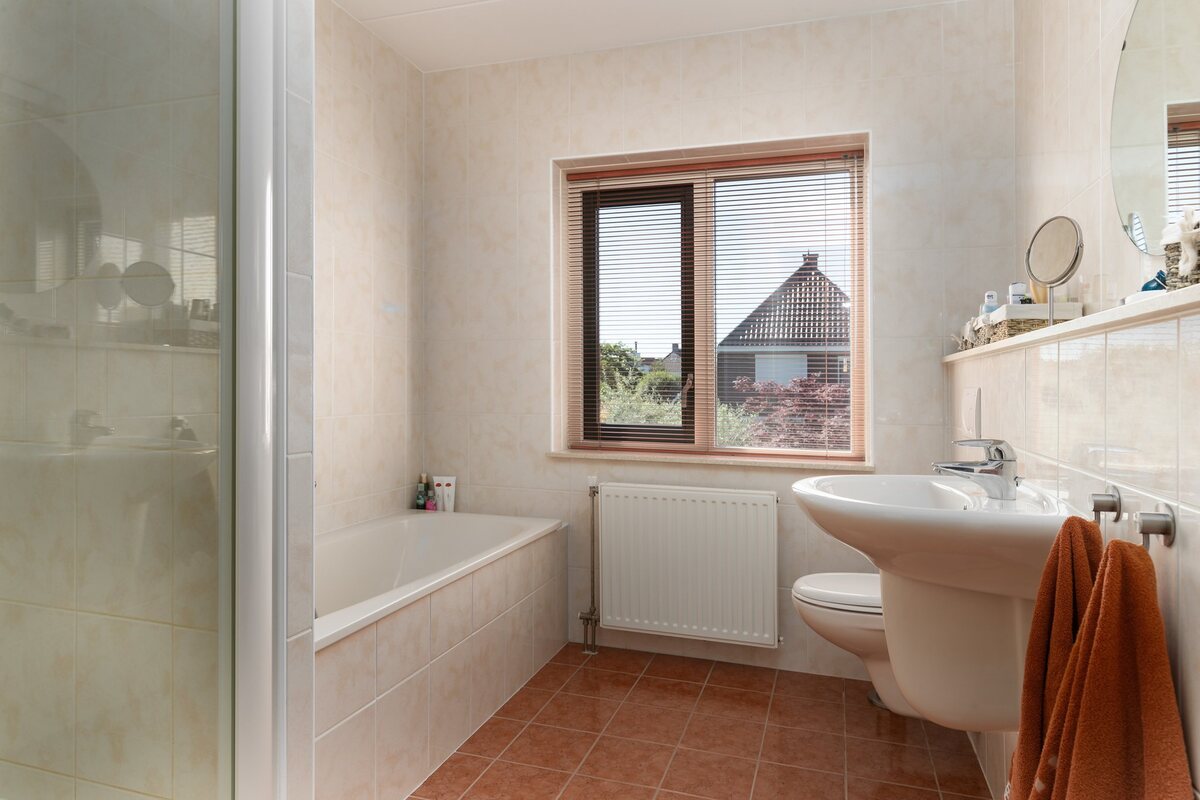 Drie riante slaapkamers, twee van 16,5 m2 en een van 11 m2, voorzien van parket/laminaat. Nette badkamer (2005, ca. 7 m2) voorzien van een ligbad, douche, toilet en vaste wastafel.