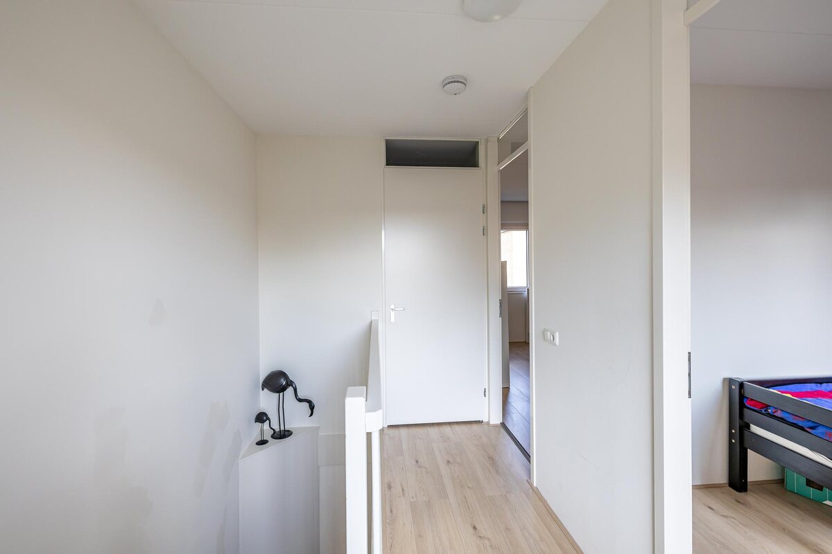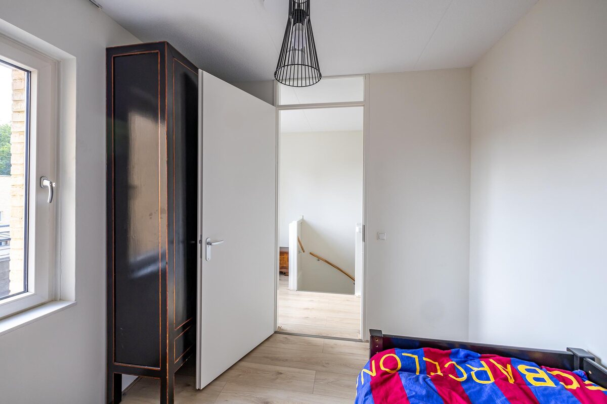 Begane grond: entree/hal, fraaie living (totaal circa 47 m2 en met fraaie pvc-vloer). De keuken is straatgericht, heeft een L-vorm en is uiteraard voorzien van inbouwapparatuur. Het zitgedeelte heeft door zijn openslaande tuindeuren prettig contact met de flinke stadstuin. Verder een praktische trapkast.Eerste verdieping: overloop, strakke badkamer (7 m2) met douche, wastafelmeubel en 2e toilet. Voorts 3 lichte slaapkamers (14, 13 en 7 m2).Tweede verdieping: overloop, nog eens 2 slaapkamers (14 en 9 m2) en een technische ruimte met wasmachineopstelling.
