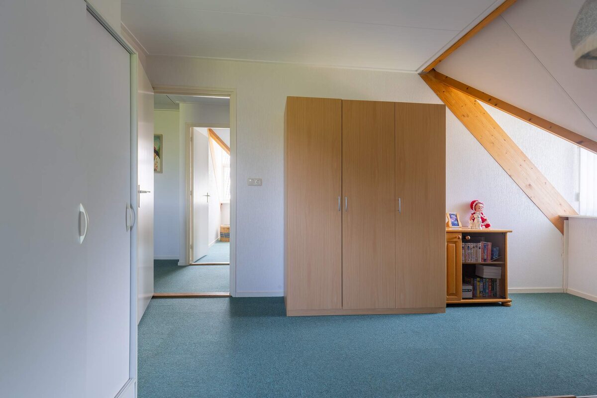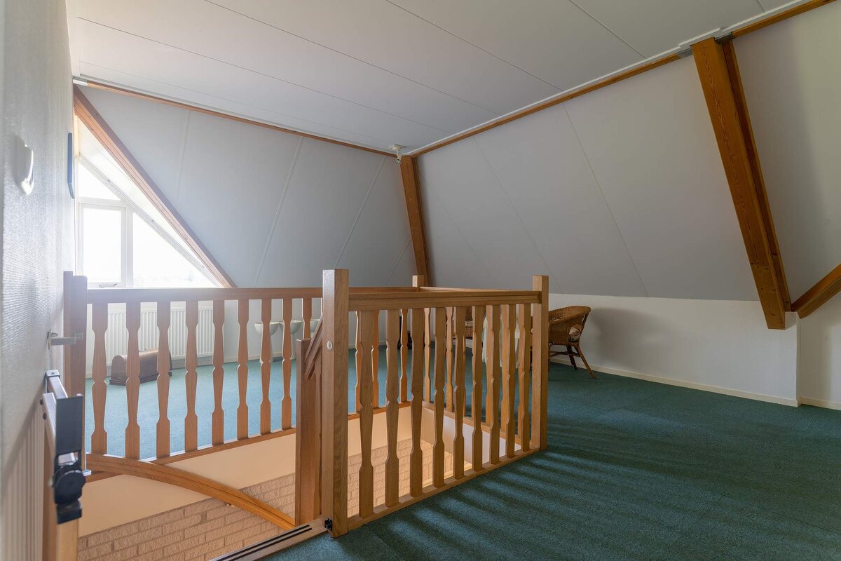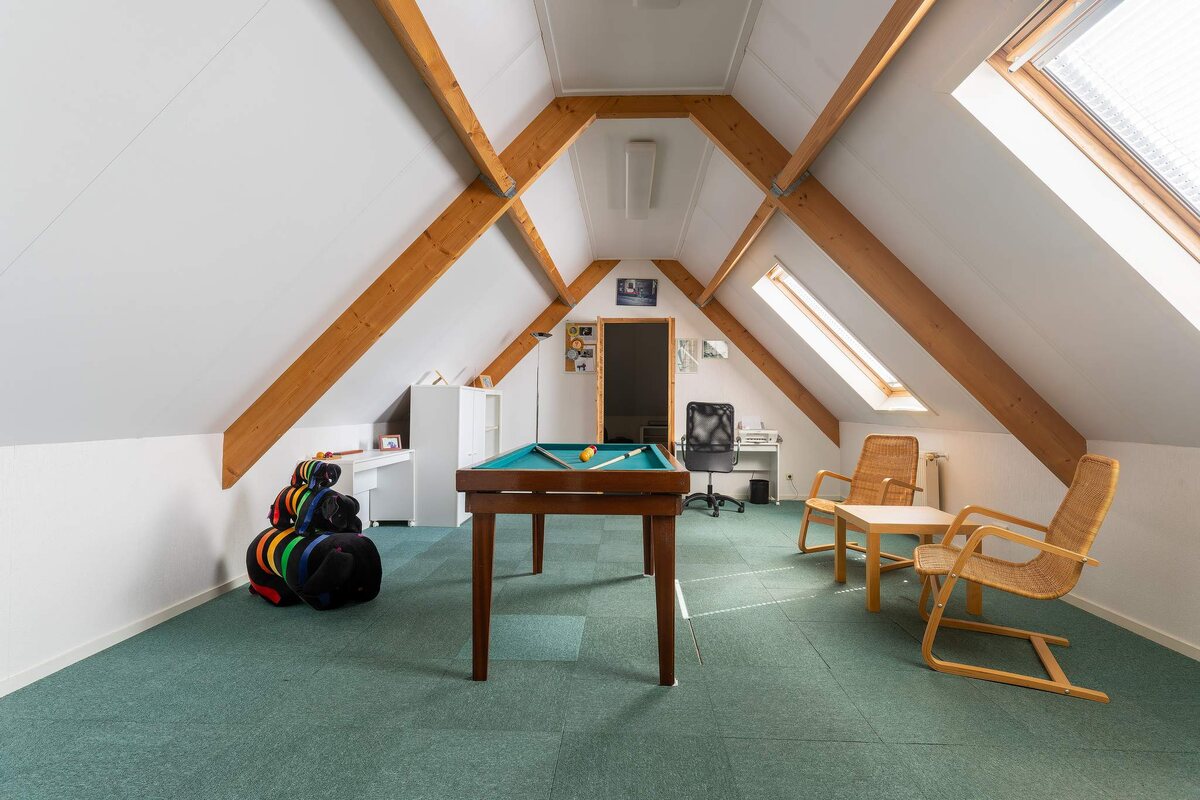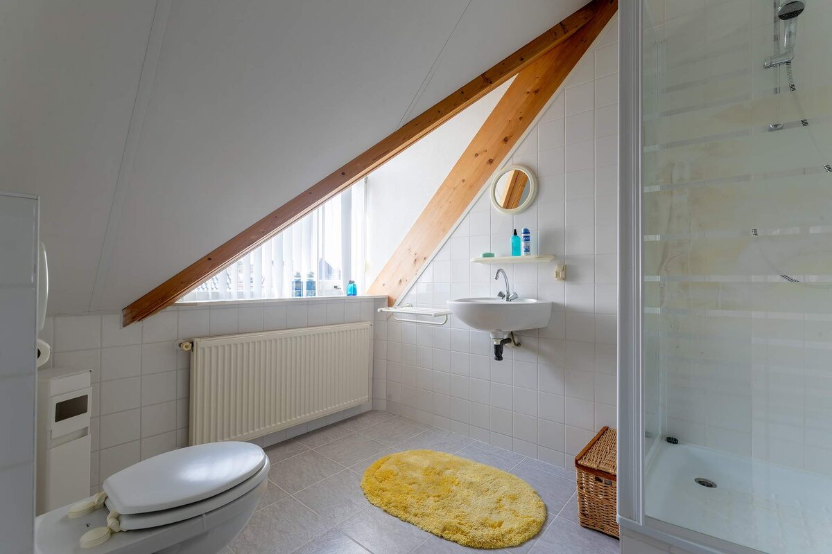 Eerste verdieping: de ruime overloop is 40 m² groot en biedt de mogelijkheid om een extra slaapkamer te realiseren. Aan de rechterzijde bevinden zich twee slaapkamers van respectievelijk 19 m² en 17 m² groot. De derde slaapkamer bevindt zich aan de linkerzijde en is ca. 22 m² groot en heeft een grote walk-in closet van ca 6 m². De tweede badkamer is voorzien van een toilet, wastafel en een douche. Via de overloop is het mogelijk om de vlizotrap naar beneden te halen om zo toegang te krijgen tot de zolder. Deze zolder is geschikt om op te lopen en biedt volop bergruimte.