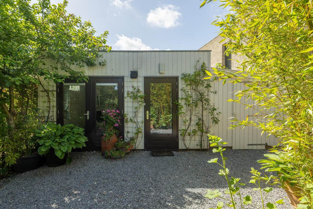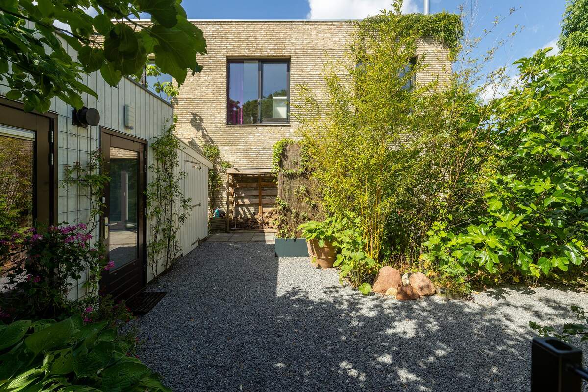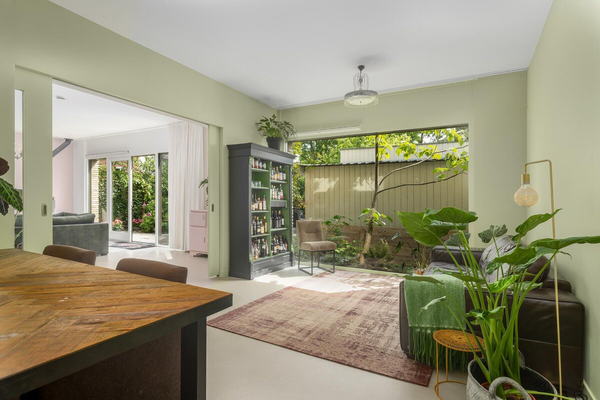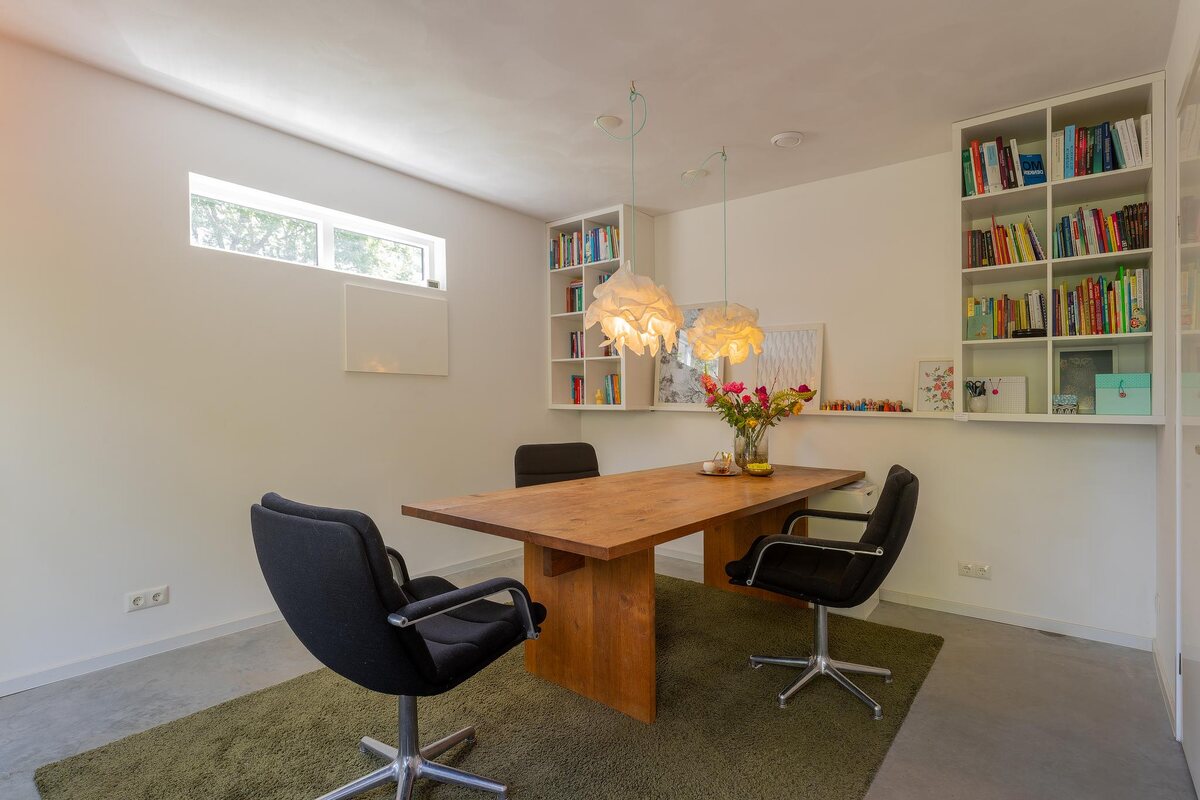 Prettig is dat je een parkeerplek hebt bij het huis en er is een mogelijkheid om daar twee plekken van te maken. Het huis is heerlijk vanwege alle ruimte en dat wordt versterkt door de hoge plafonds, veel licht, ruime kamers en het feit dat de voor- en achtertuin een geïntegreerd onderdeel is van de woonkamer, waardoor je elk seizoen van de tuin kan genieten. Je hebt het gevoel in een groene oase te wonen met veel privacy. In de achtertuin bevindt zich een praktijk met eigen ingang. Dit zou naast praktijk/kantoor ook een hele mooie plek kunnen zijn voor airbnb.