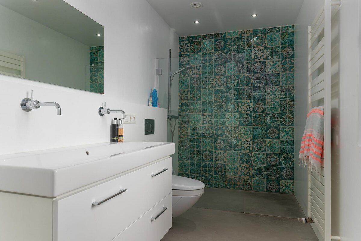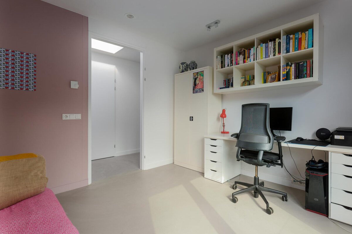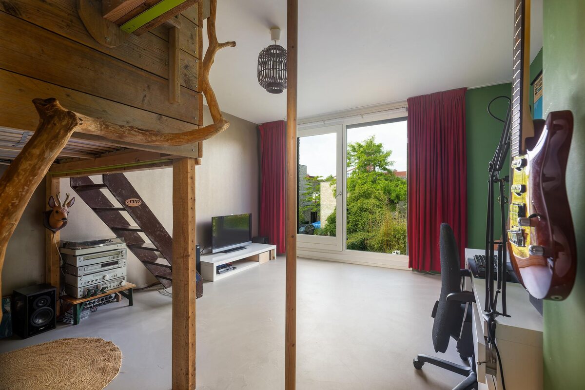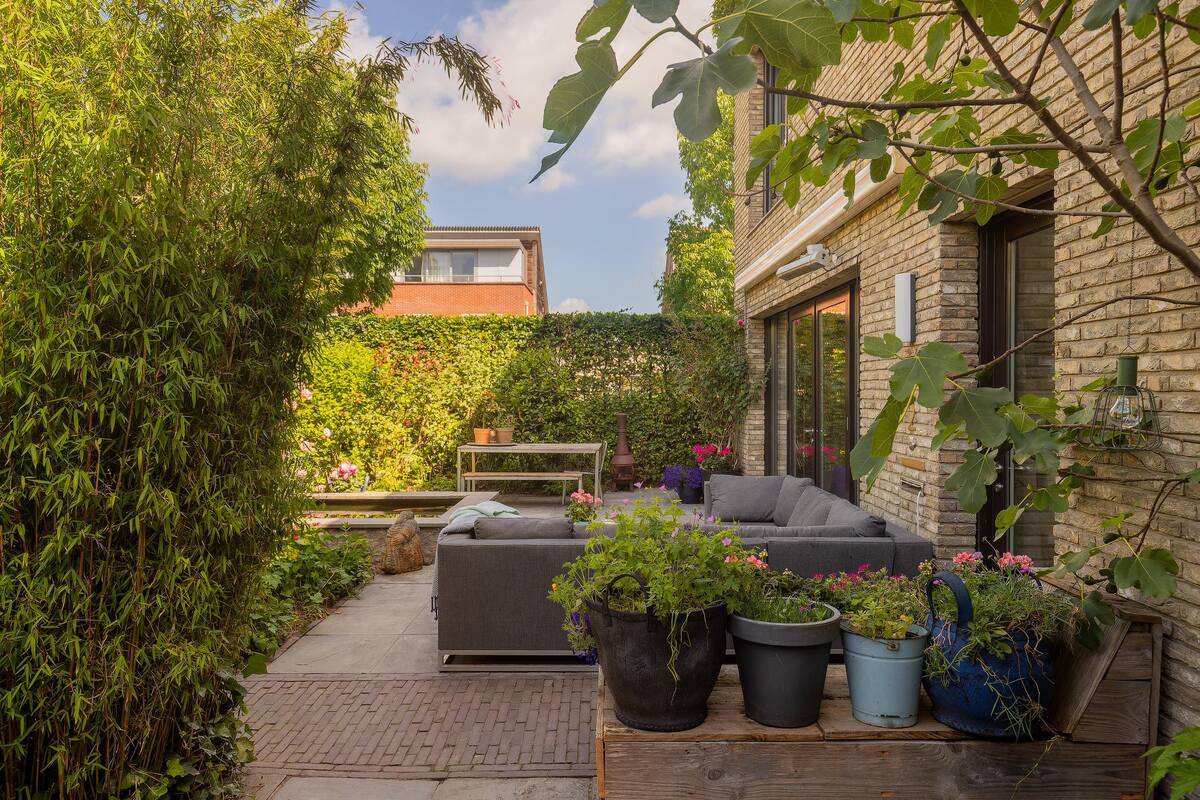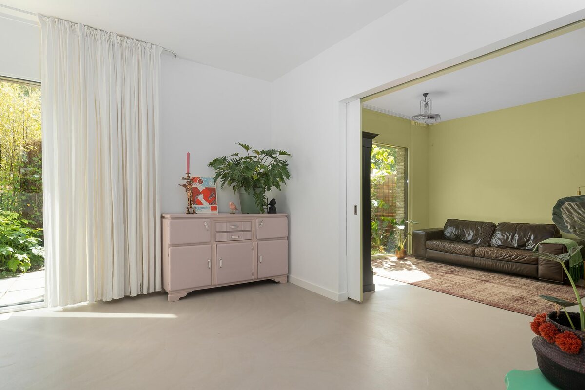 Prettig is dat je een parkeerplek hebt bij het huis en er is een mogelijkheid om daar twee plekken van te maken. Het huis is heerlijk vanwege alle ruimte en dat wordt versterkt door de hoge plafonds, veel licht, ruime kamers en het feit dat de voor- en achtertuin een geïntegreerd onderdeel is van de woonkamer, waardoor je elk seizoen van de tuin kan genieten. Je hebt het gevoel in een groene oase te wonen met veel privacy. In de achtertuin bevindt zich een praktijk met eigen ingang. Dit zou naast praktijk/kantoor ook een hele mooie plek kunnen zijn voor airbnb.