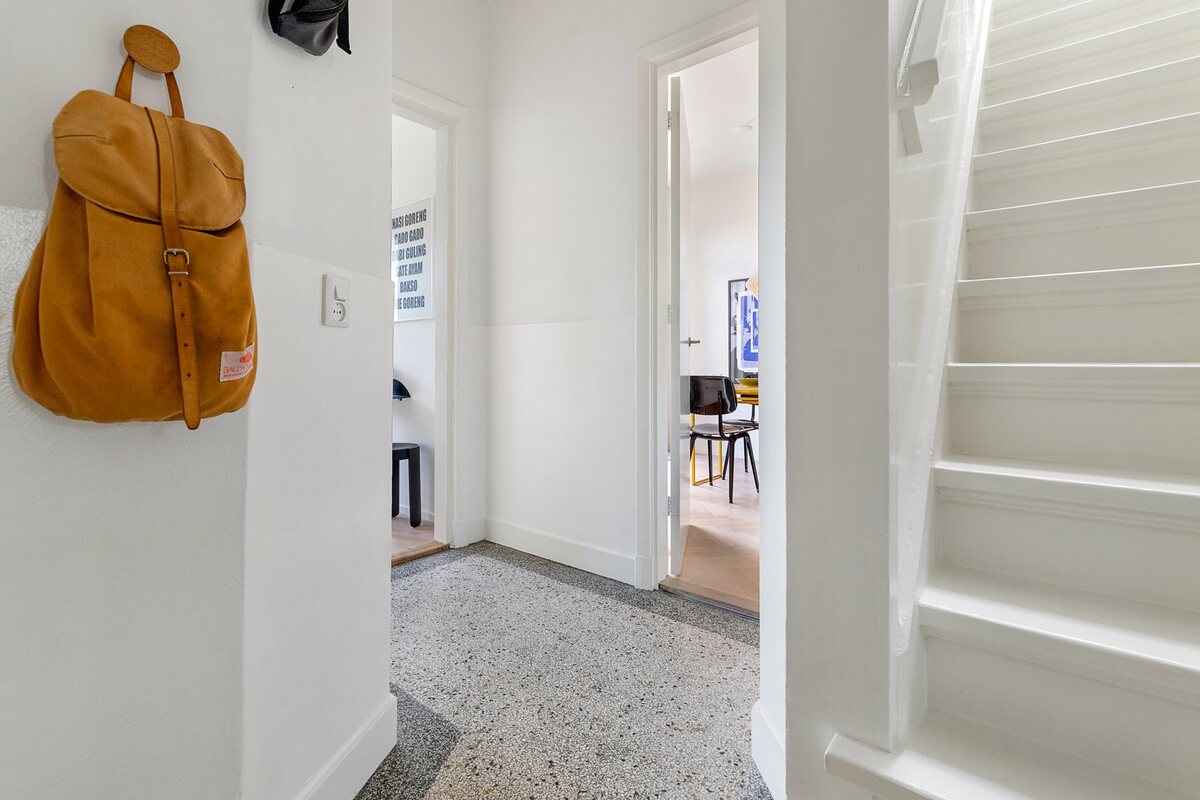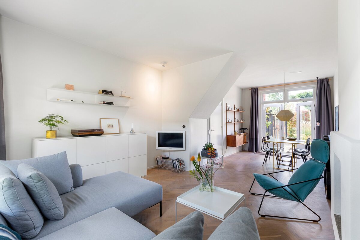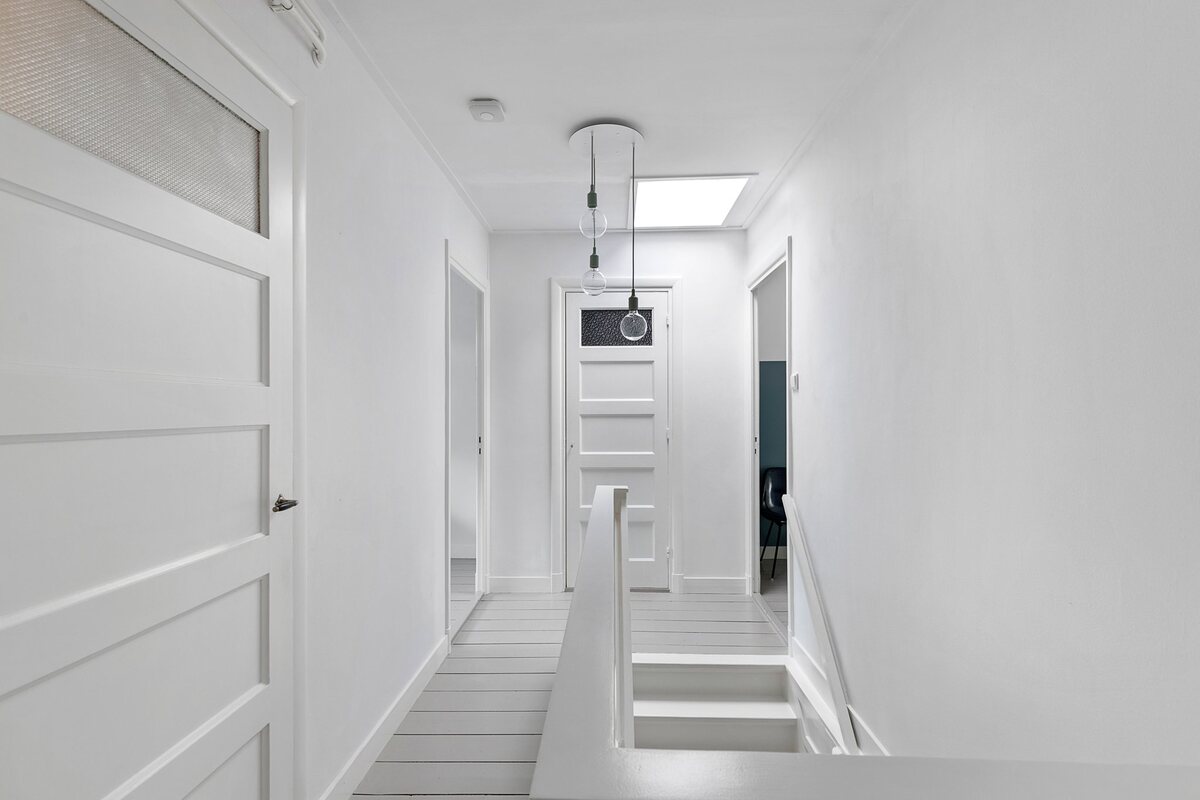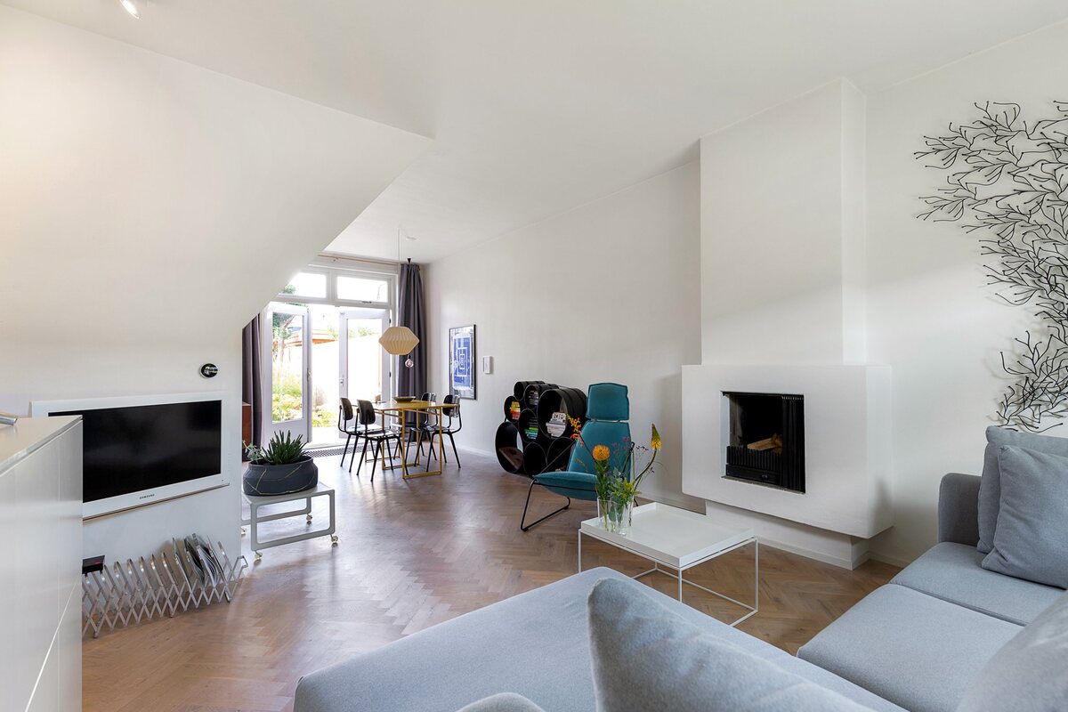 Begane grond: entree/tochtportaal, hal met granieten vloer, toilet met fonteintje, strakke en lichte woonkamer ca. 30 m2 met open haard en openslaande deuren naar de tuin. In de uitbouw is een hoekkeuken geplaatst (2016) voorzien van diverse inbouwapparatuur.Eerste verdieping: ruime overloop met twee vaste kasten, drie slaapkamers ca. 13, 7 en 8 m2, ruime en lichte badkamer (ca. 10 m2) waarin een ligbad, aparte douche, bidet, tweede toilet, dubbel wastafelmeubel en praktische aansluiting voor wasmachine en droger.