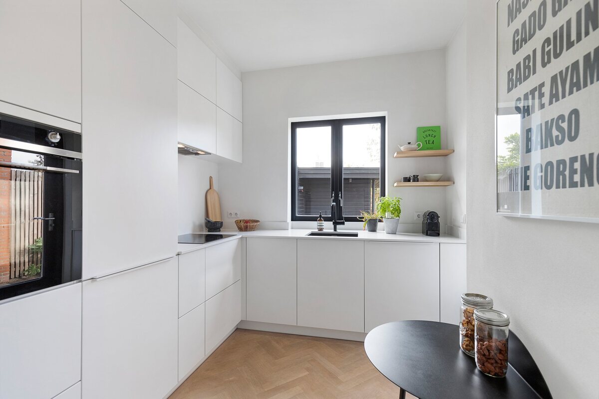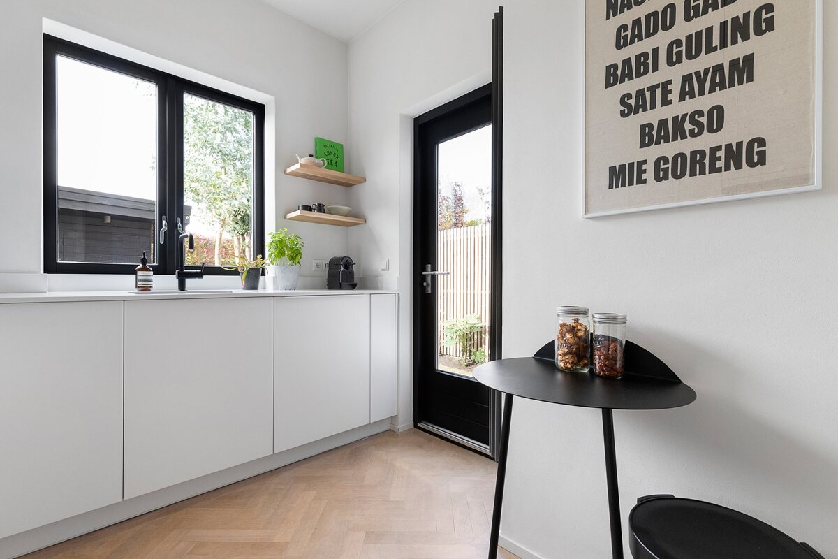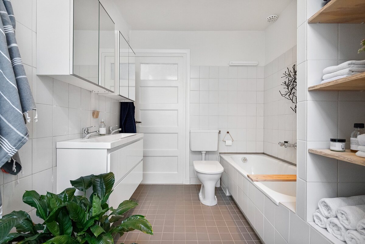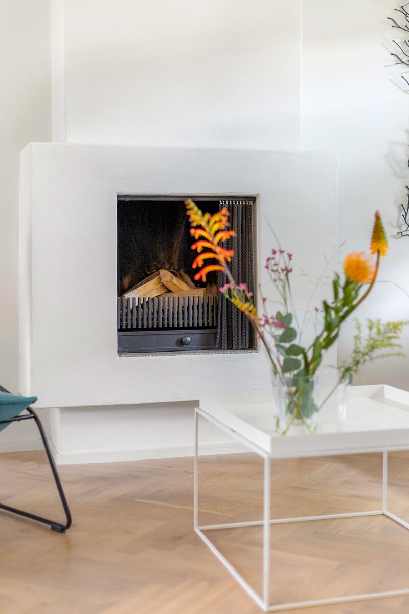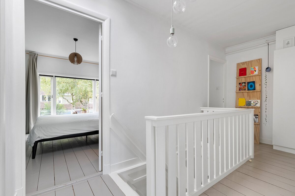 Begane grond: entree/tochtportaal, hal met granieten vloer, toilet met fonteintje, strakke en lichte woonkamer ca. 30 m2 met open haard en openslaande deuren naar de tuin. In de uitbouw is een hoekkeuken geplaatst (2016) voorzien van diverse inbouwapparatuur.Eerste verdieping: ruime overloop met twee vaste kasten, drie slaapkamers ca. 13, 7 en 8 m2, ruime en lichte badkamer (ca. 10 m2) waarin een ligbad, aparte douche, bidet, tweede toilet, dubbel wastafelmeubel en praktische aansluiting voor wasmachine en droger.