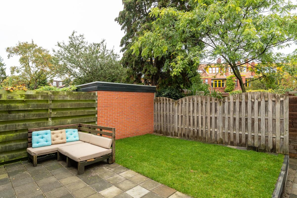 Beschutte voortuin (ca. 20 m2) en achtertuin van ruim 50 m2. De tuin is via een achterom bereikbaar. De berging (8 m2) is van het bouwjaar 2001.