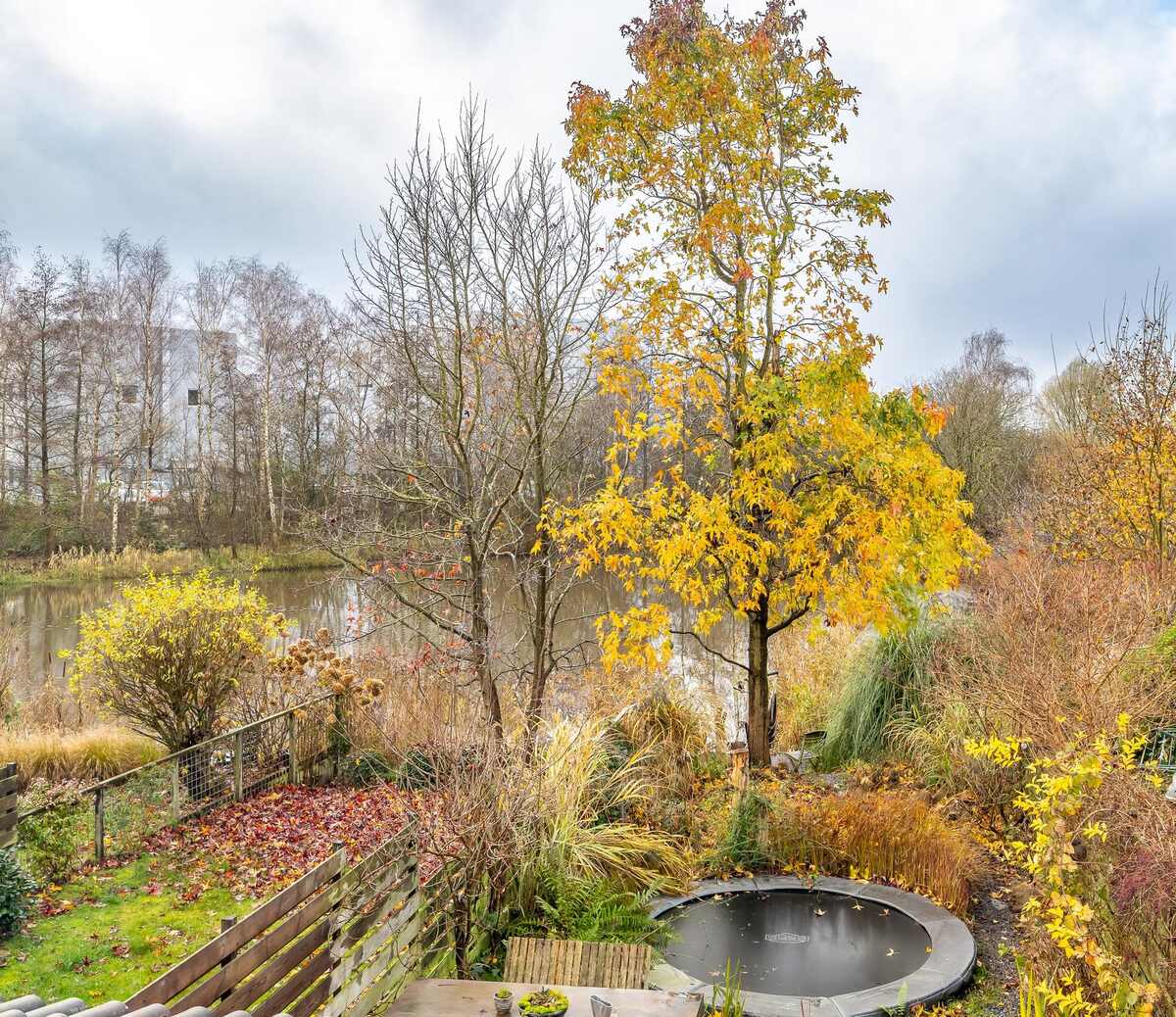 - grenzend aan een vijverpartij ('s winters schaatsen vanuit je eigen tuin);
