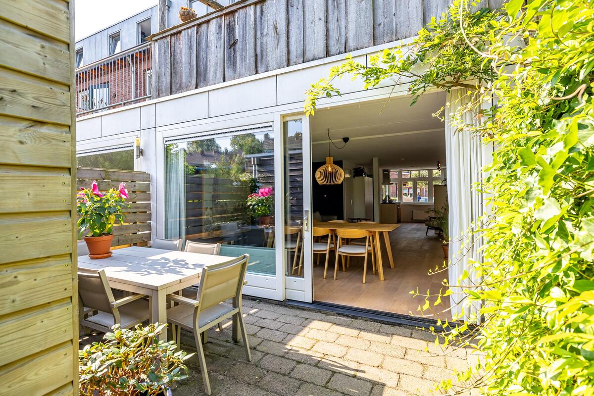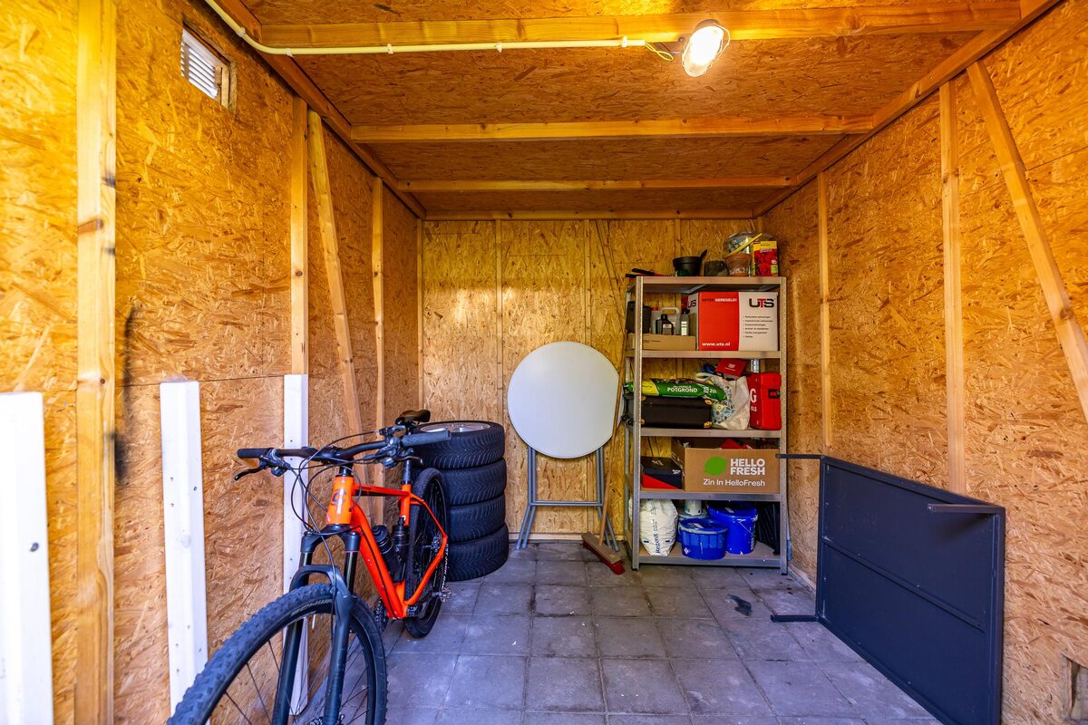 Naast het heerlijke dakterras heeft de woning zowel een achter- en voortuin. De achtertuin is tevens middels een achterom te bereiken en is voorzien van een vrijstaande houten berging voorzien van elektra.