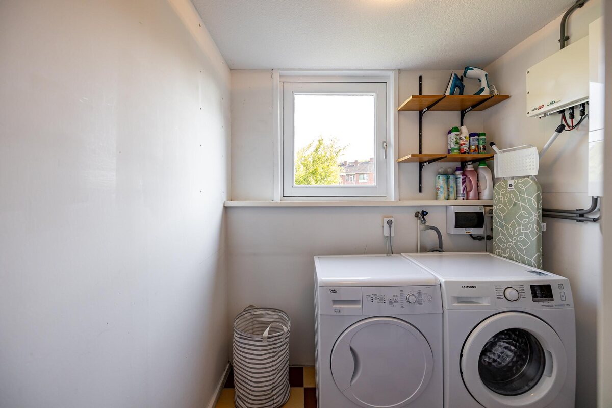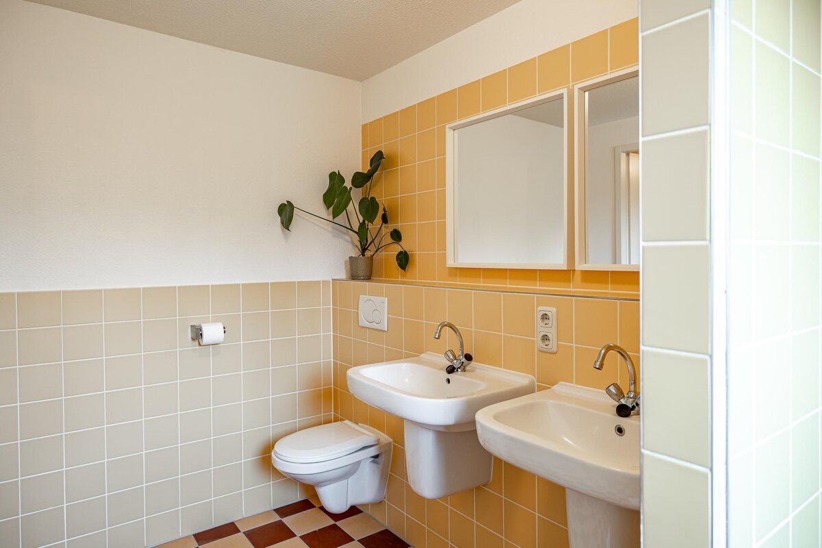 Via de overloop zijn de derde slaapkamer van ca. 14 m2 evenals de fraai uitgevoerde badkamer met ruime douchecabine, dubbele wastafel en een tweede toilet te bereiken. Verder op deze verdieping een praktische wasruimte met witgoedaansluitingen, CV-opstelling en volop bergruimte.